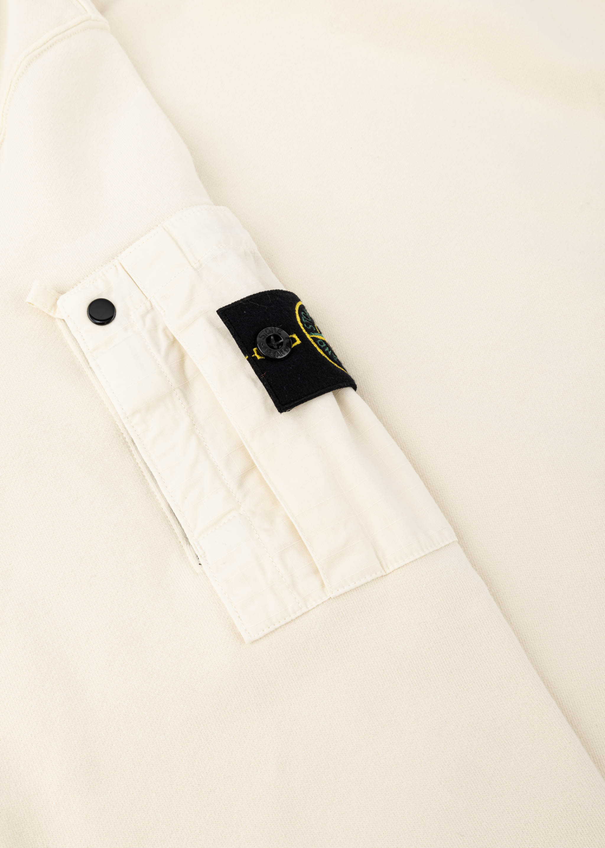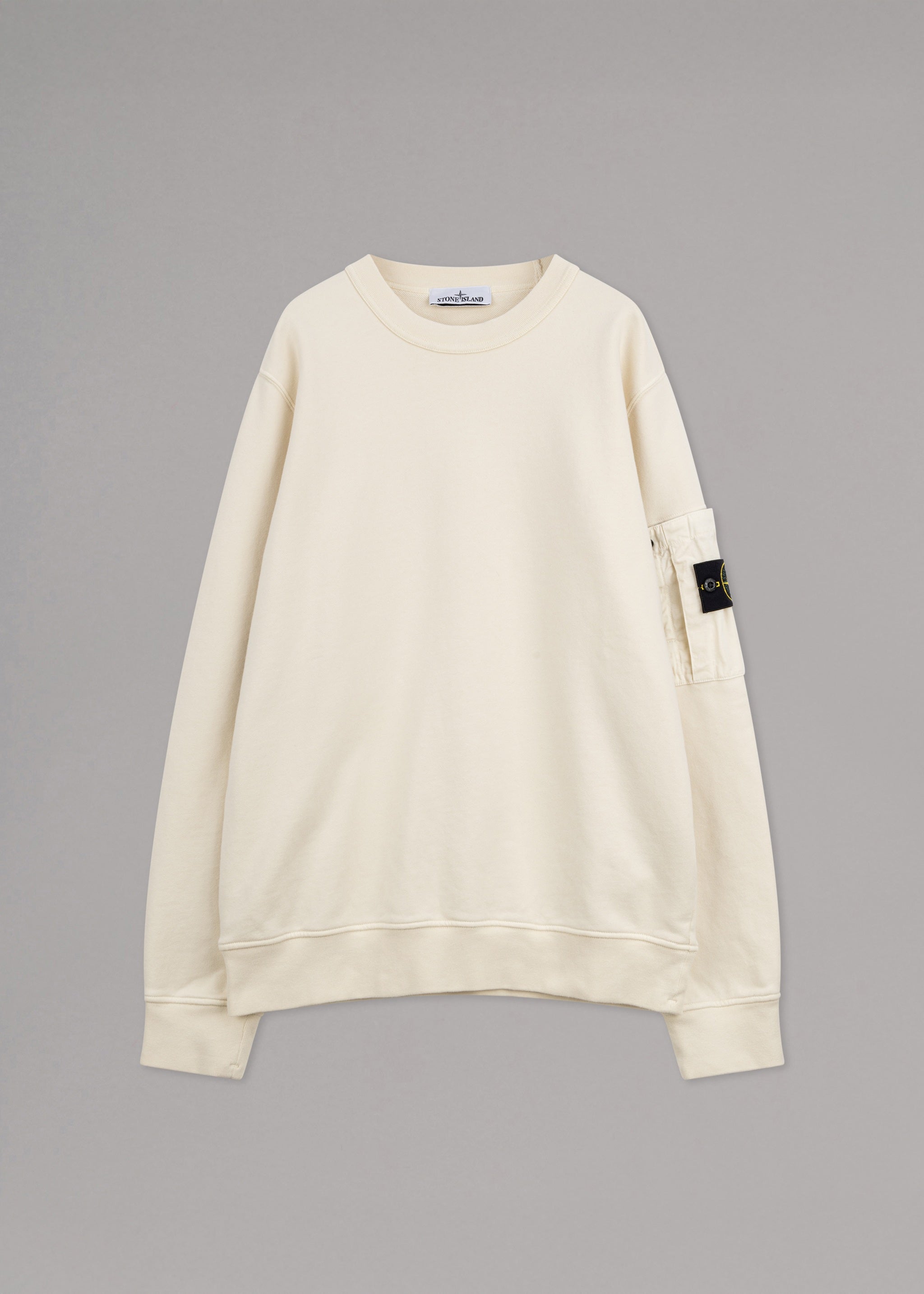 Sweater von Stone Island aus weicher Baumwolle, Rundhalsausschnitt, lange Ärmel, eine aufgesetzte Tasche am linken Ärmel mit Klettverschluss und abnehmbaren Logo-Badge, gerippte Abschlüsse, gerader Saum.