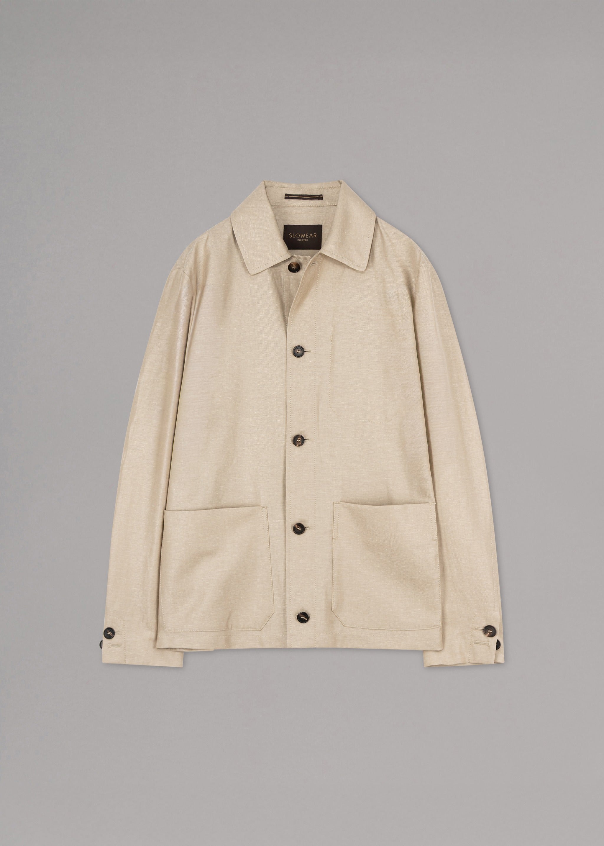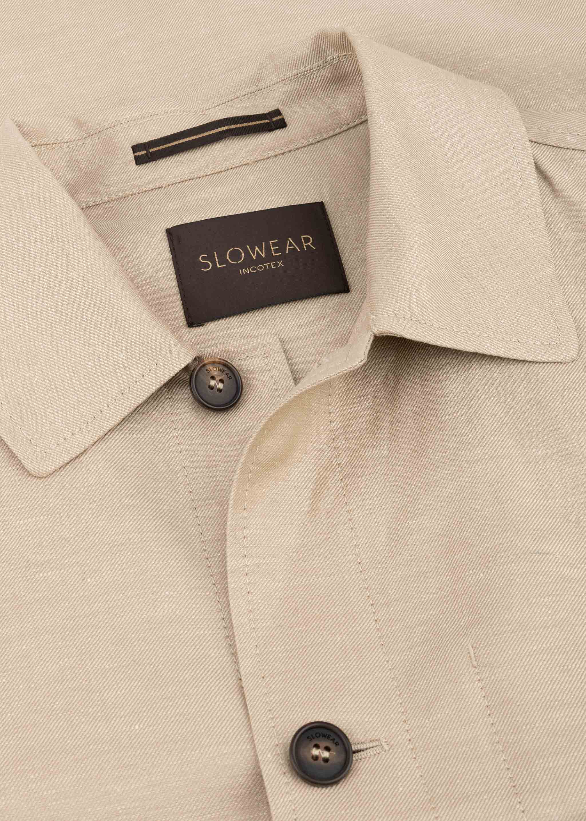 Blouson von Incotex aus einer hochwertigen Schurwoll-Leinen-Mischung, klassischer Kragen, lange Ärmel mit Knopfmanschetten, Rückenpasse, durchgehende Knopfleiste, eine Innentasche, zwei aufgesetzte Tasche, teilgefüttert, gerader Saum, leichtes Material, feiner Glanz.