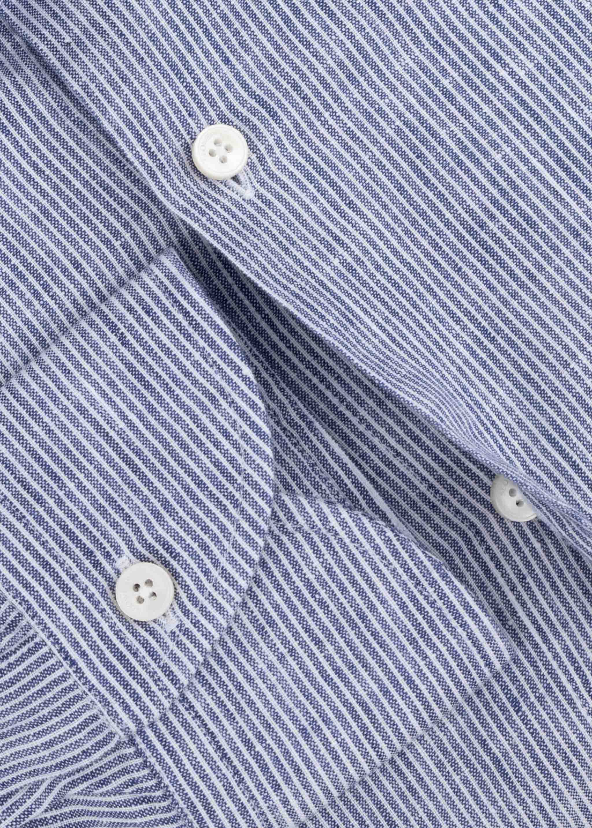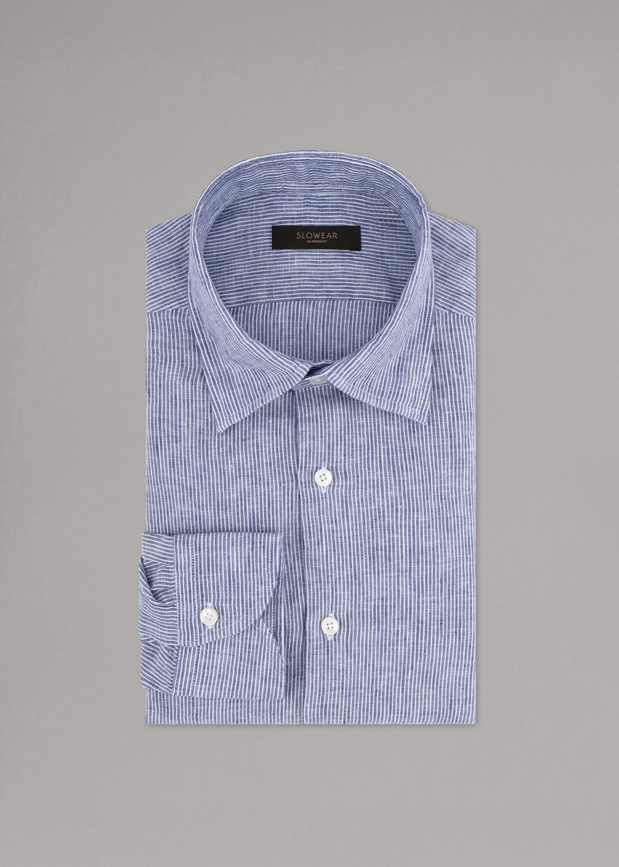 Hemd von Slowear/Glanshirt aus Leinen, Haifischkragen, durchgehende Knopfleiste, Ärmel mit Knopfmanschette, abgerundeter Saum.