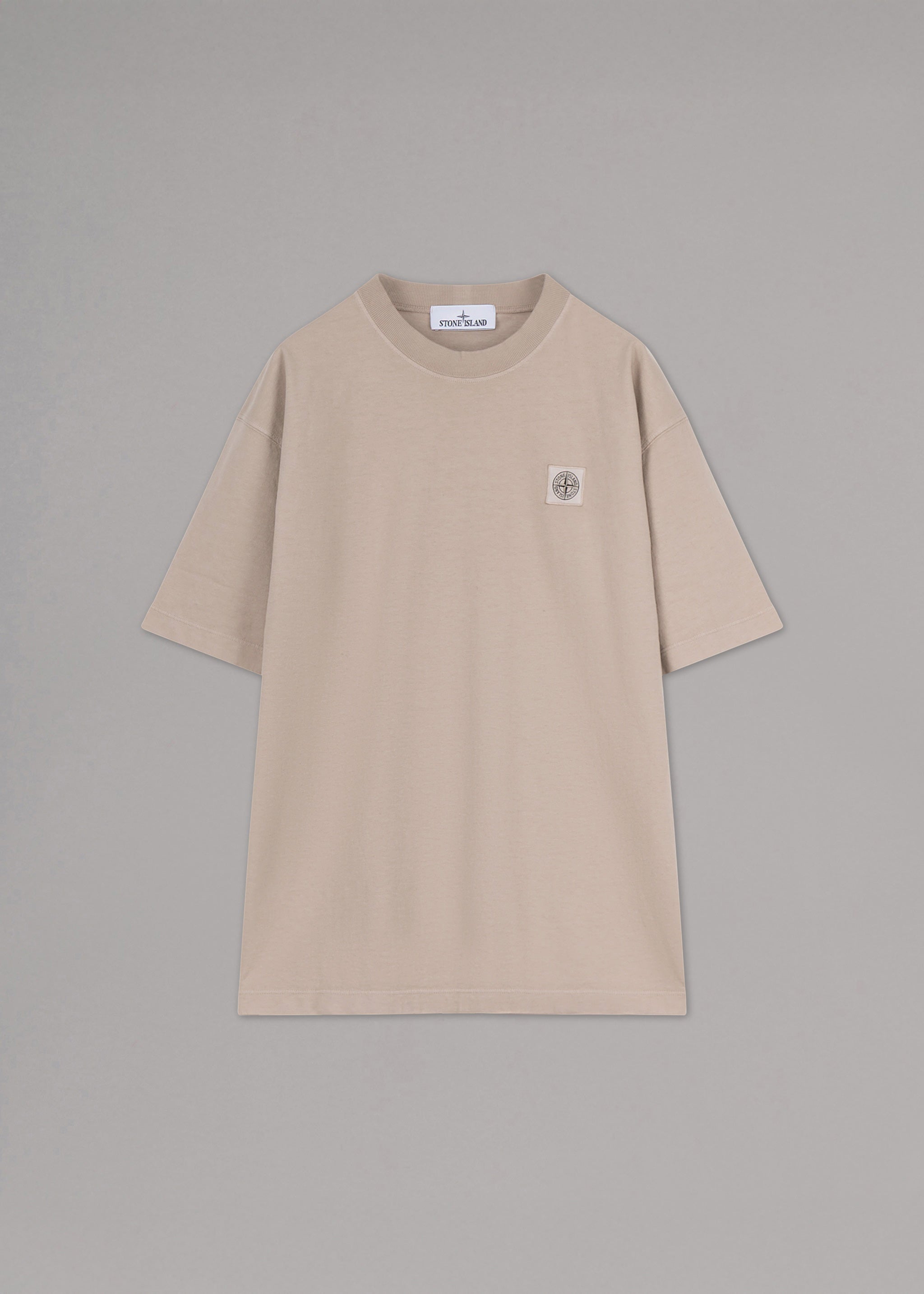 Stückgefärbtes T-Shirt von Stone Island aus Bio-Baumwolle, gerippter Rundhalsausschnitt, Compass-Logo-Patch, gerader Saum.