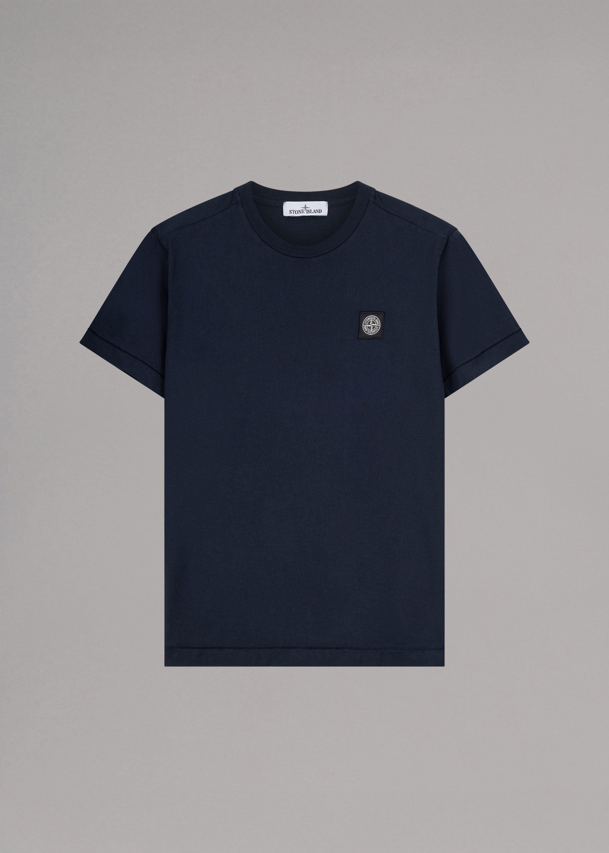 Stückgefärbtes T-Shirt von Stone Island aus weicher Baumwolle, gerippter Rundhalsausschnitt, Compass-Logo-Patch, gerader Saum.