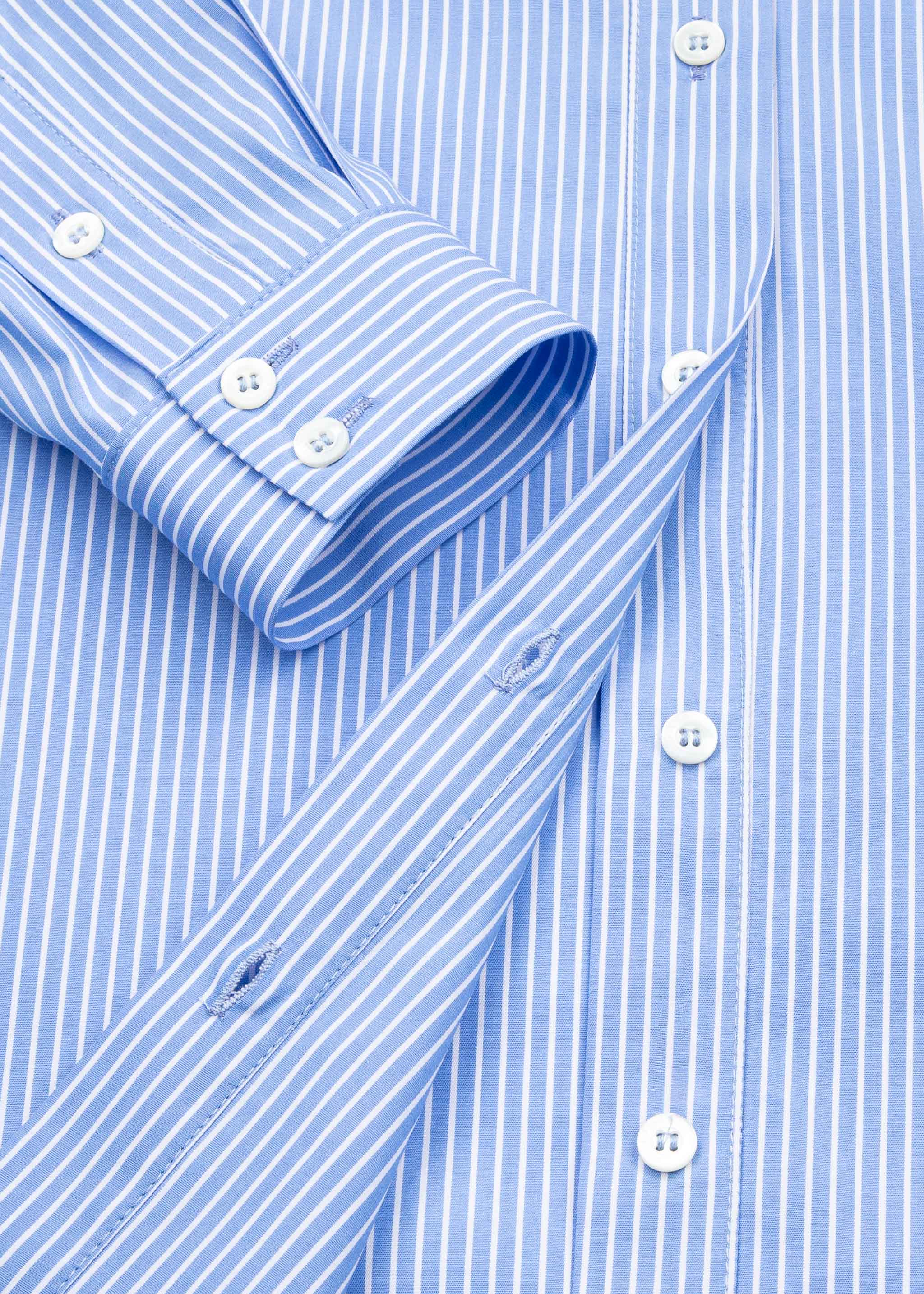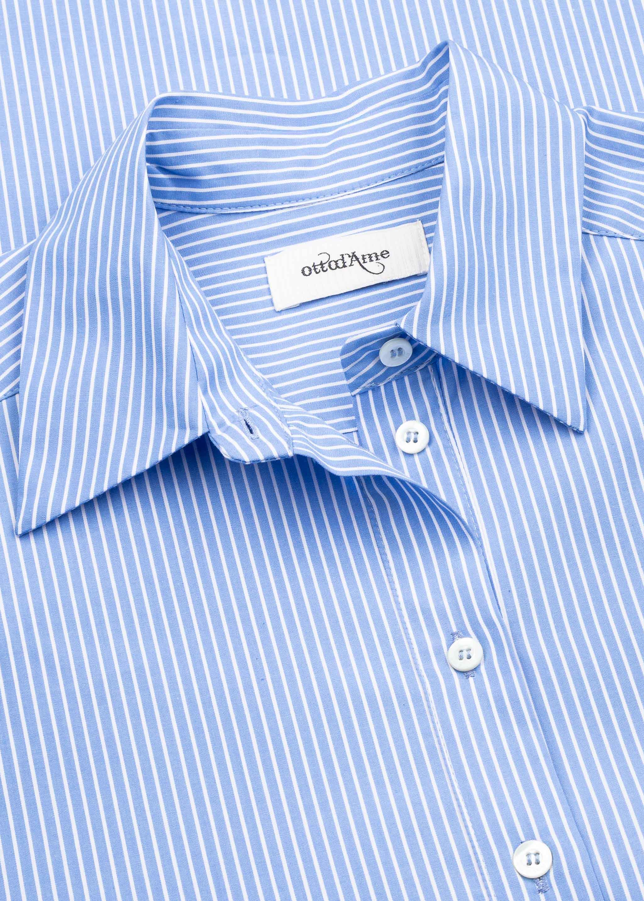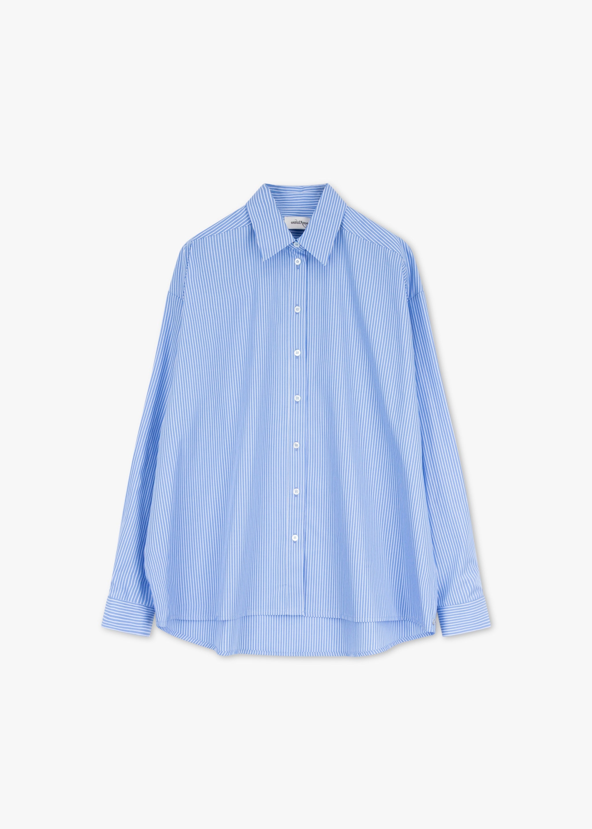 Lange Bluse von Otto d'ame aus weicher Baumwolle, klassischer Kragen, durchgehende Knopfleiste, überschnittene Schultern, Ärmel mit Knopfmanschette, Rückenpasse, Vokuhila-Saum.