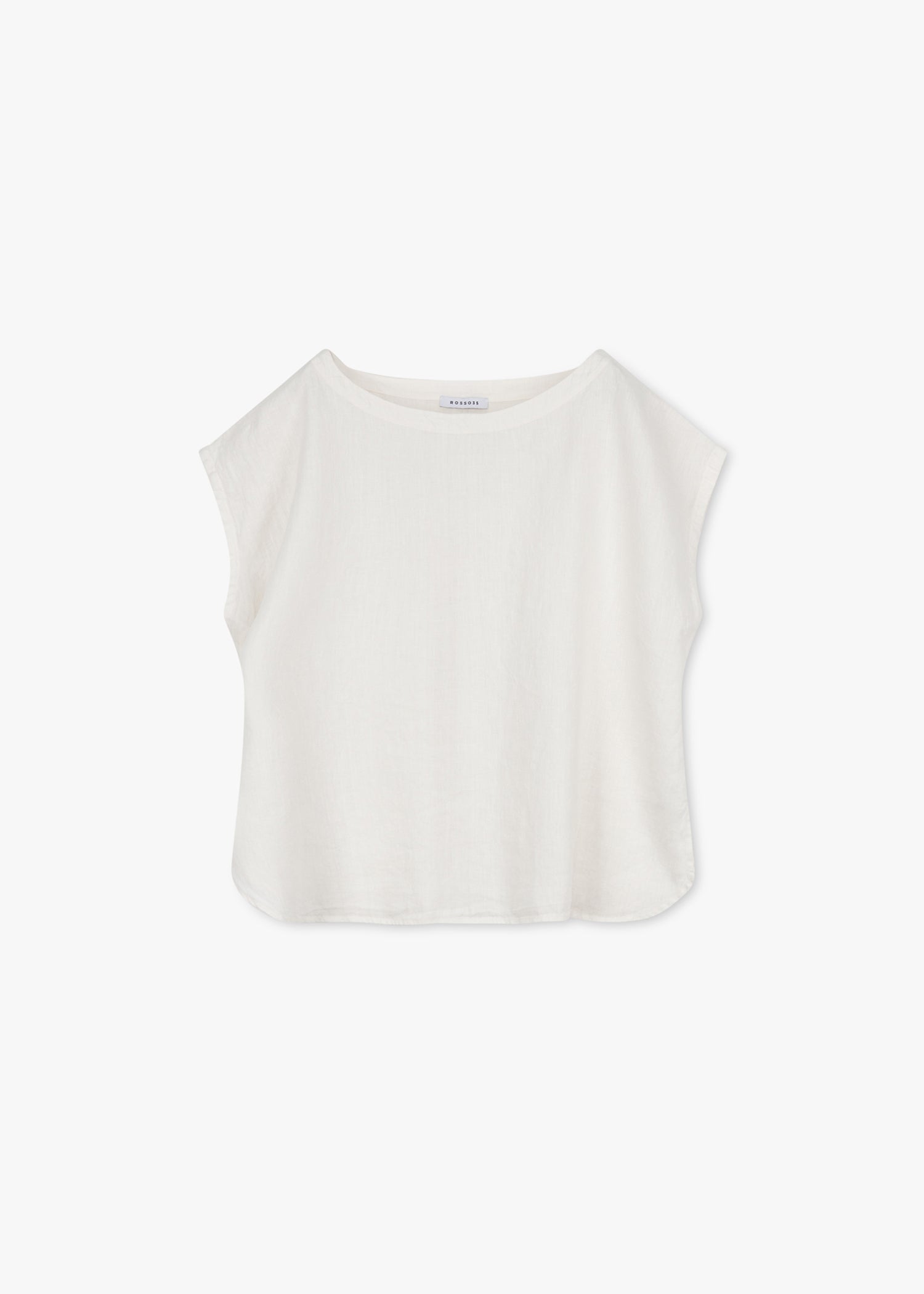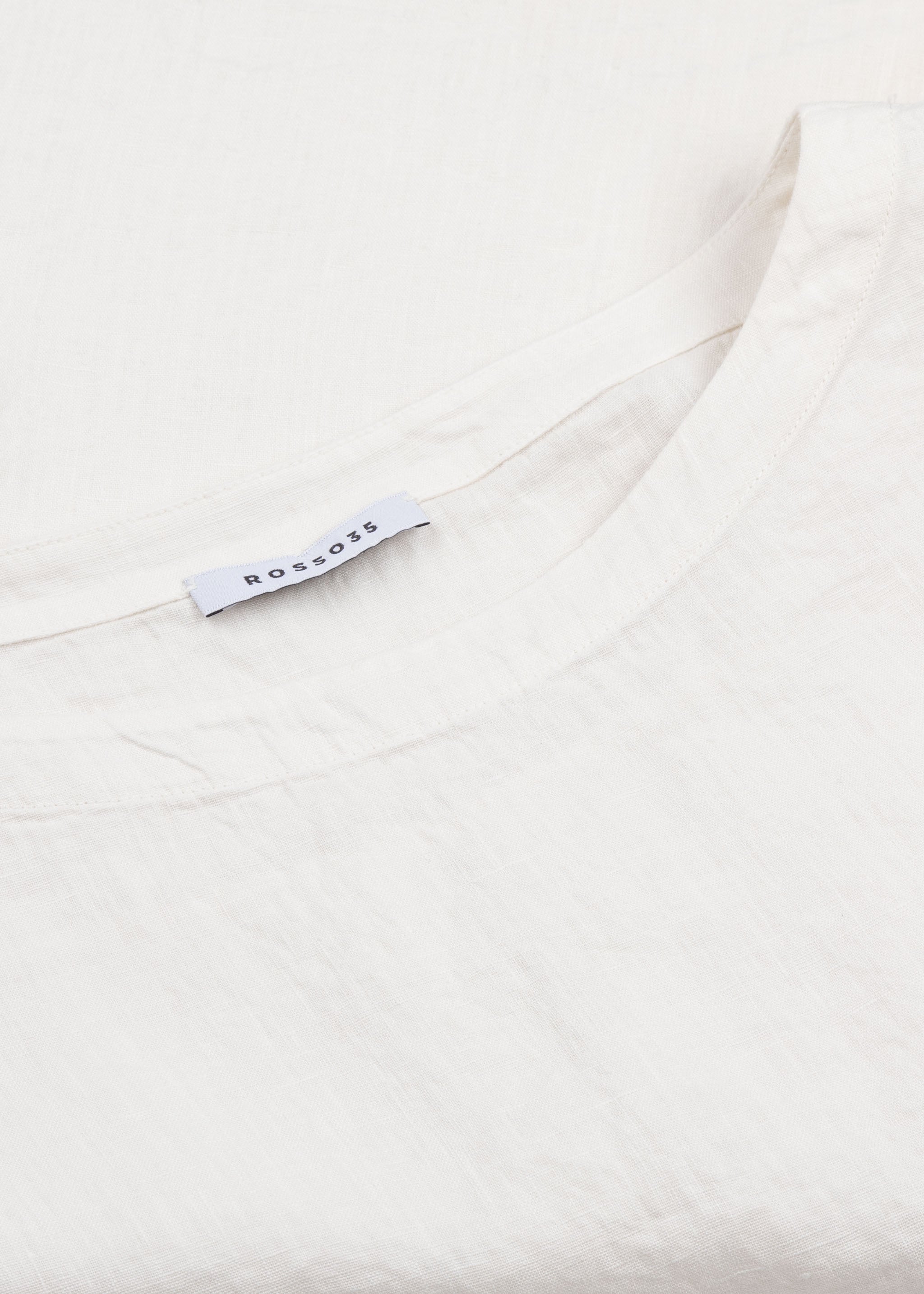Cropped Shirt von Rosso35 aus weichem Leinen, Rundhalsausschnitt, Rückenpasse mit Quetschfalte, abgerundeter Saum mit Seitenschlitzen, leicht transparent.