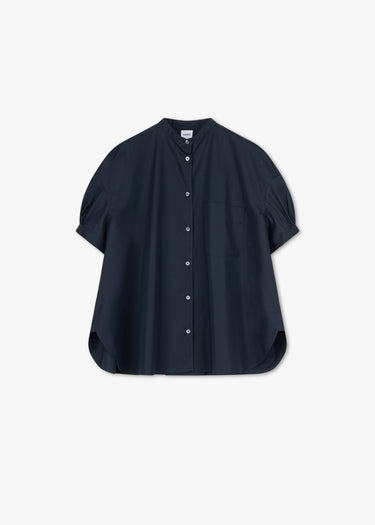Oversized Puffärmel-Bluse von Aspesi, Stehkragen, überschnittene, Kellerfalte im Rückenteil, Brusttasche, durchgehende Knopfleiste, abgerundeter Saum.