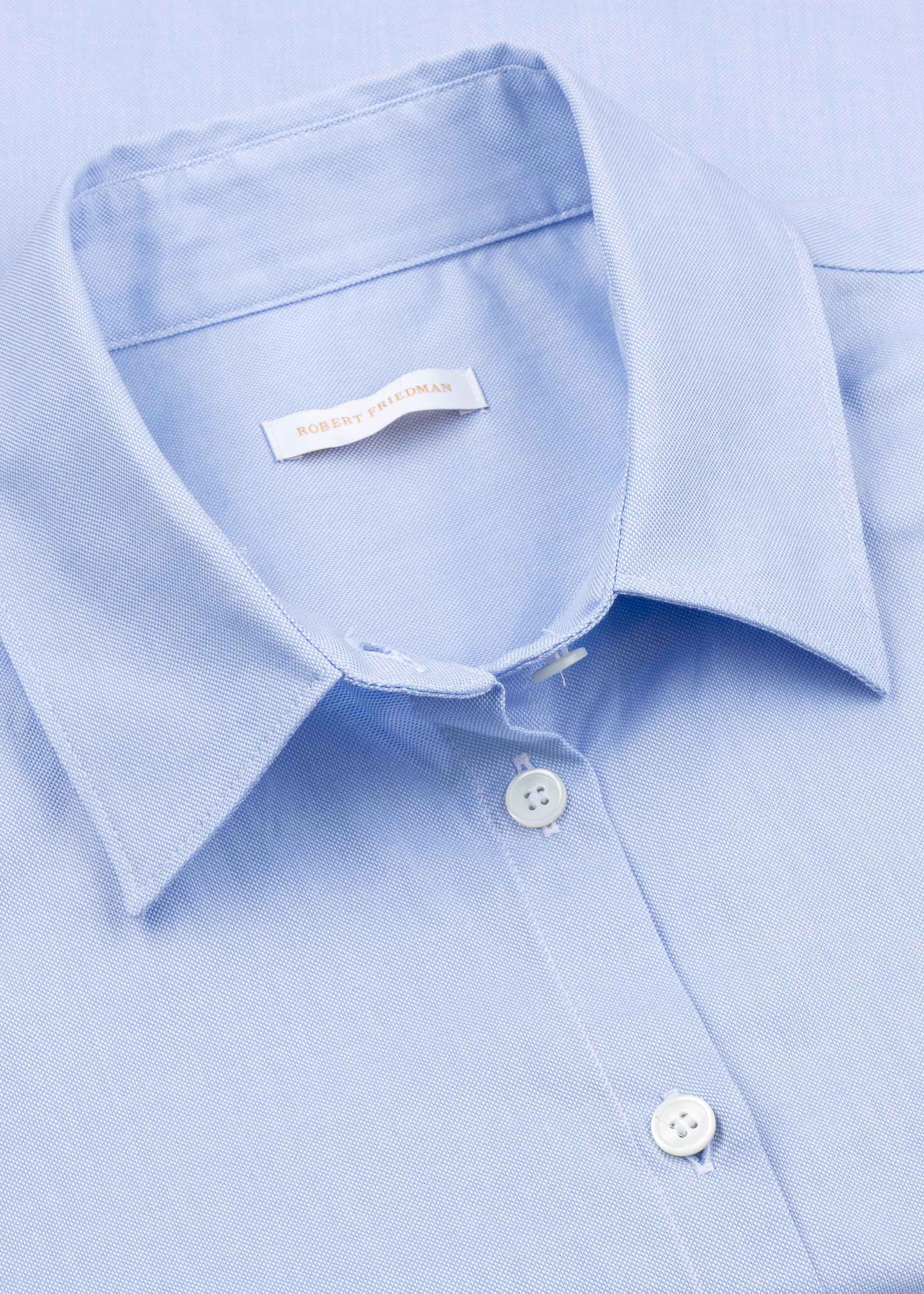 Bluse 'Uma' von Robert Friedman aus Baumwoll-Piqué, klassischer Kragen, durchgehende Knopfleiste, Rückenpasse, gerader Saum mit Seitenschlitzen.