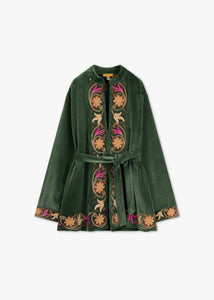 'Jaipur' Bestickte Jacke aus Samt mit Gürtel