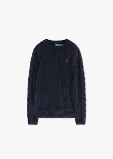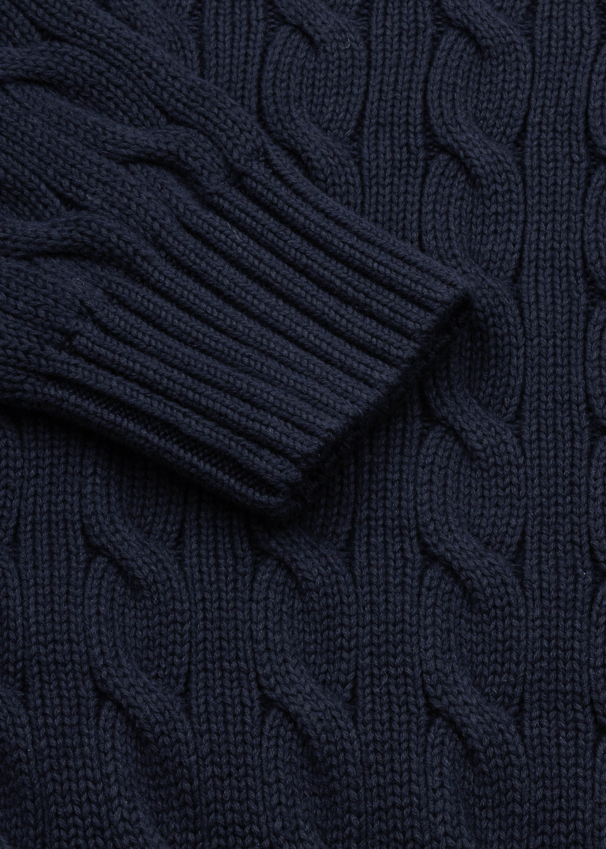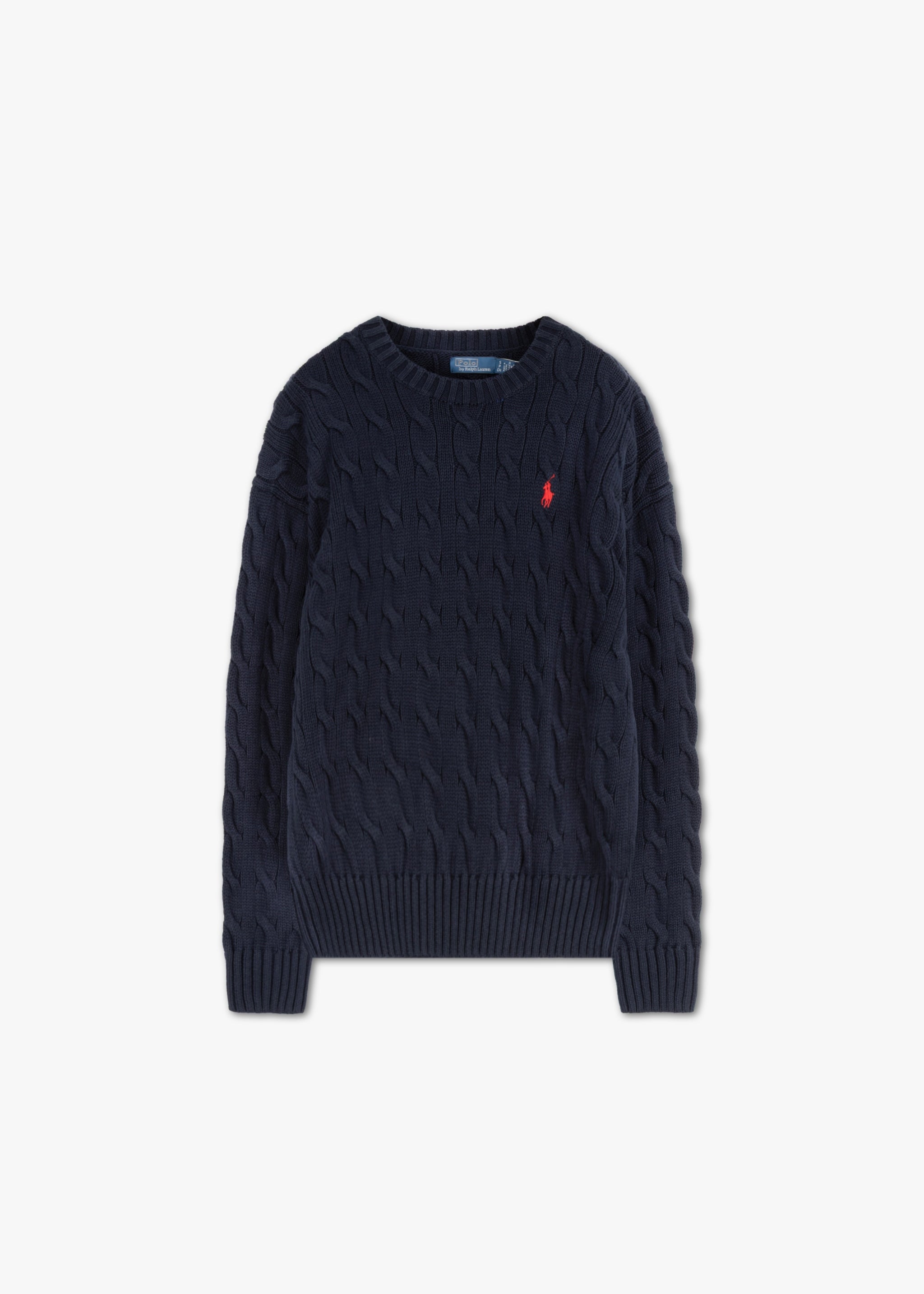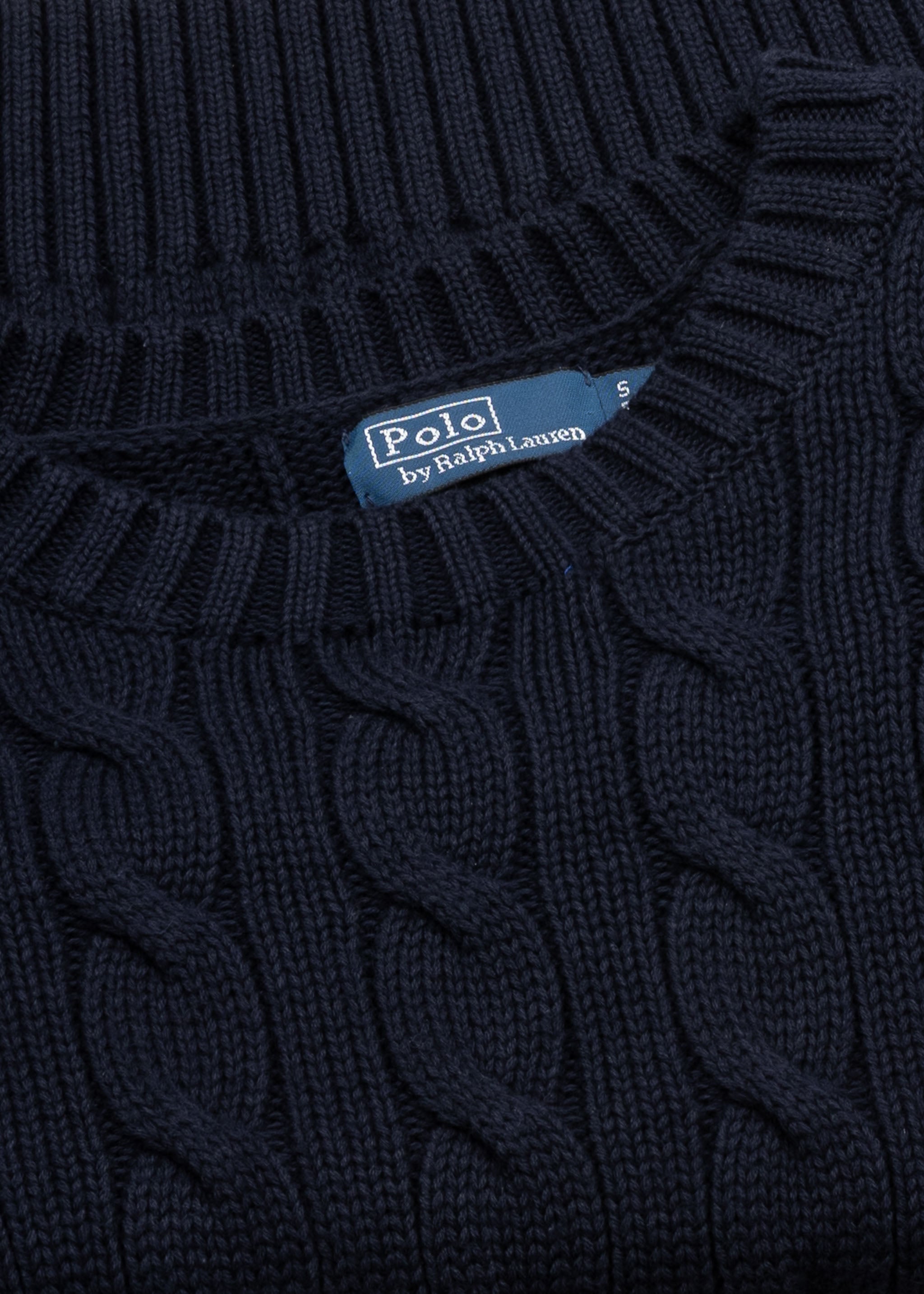Kurzer Strickpullover von Polo Ralph Lauren aus Baumwolle, Rundhalsausschnitt, überschnittene Schultern, lange Ärmel, gerippte Abschlüsse, gesticktes Pony-Logo, gerader Saum.