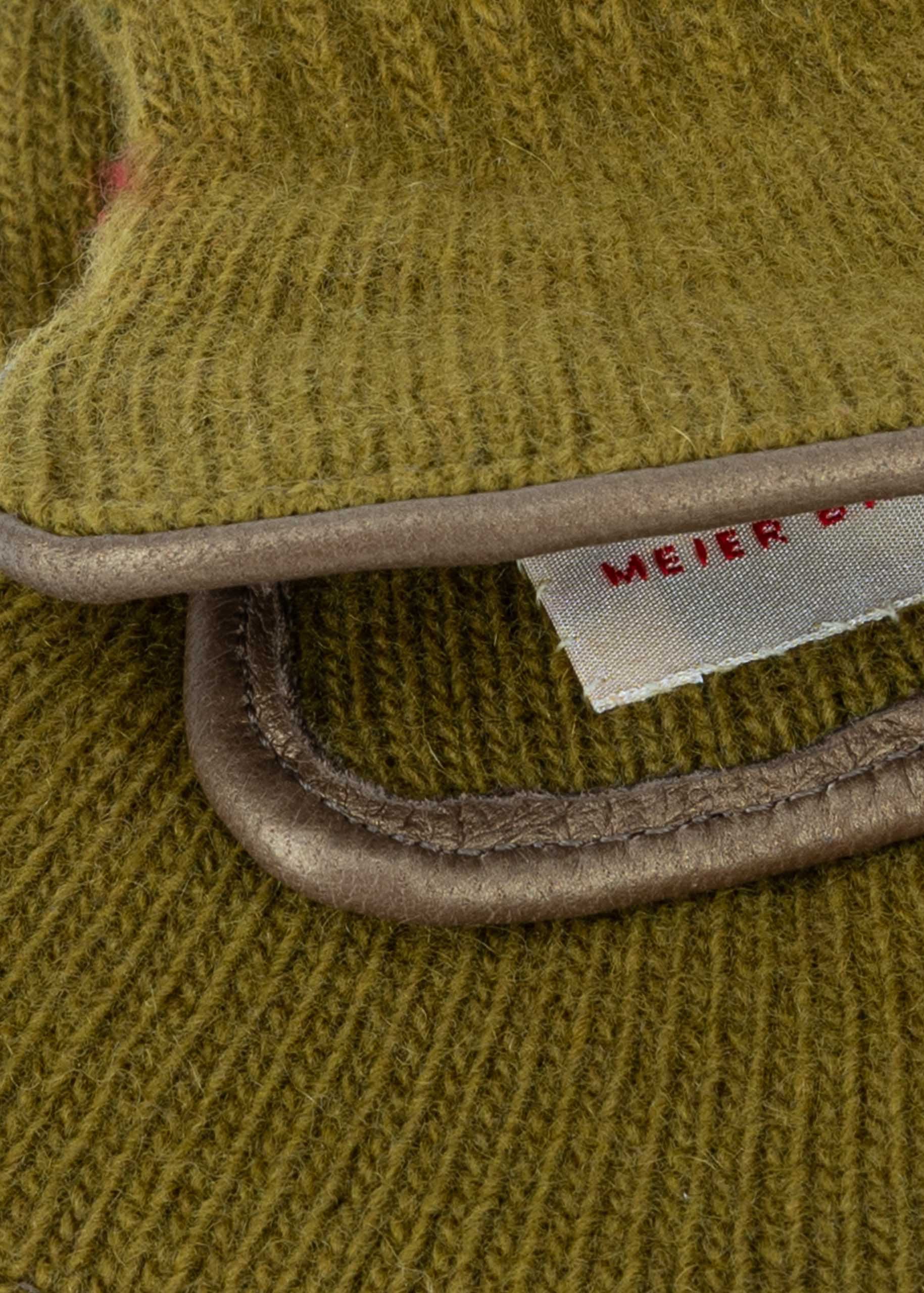 Handgemachte, ultraweiche Handschuhe von Meier-Brücher aus sehr feiner Merino-Kaschmir-Mischung, Ledereinfassung.
