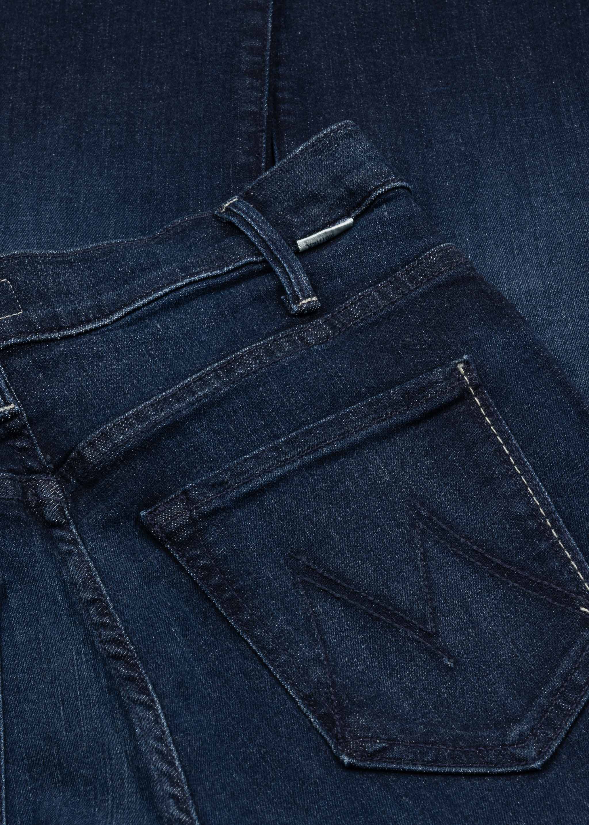 Verkürzte Jeans 'The Weekender Fray' von Mother, Gürtelschlaufen, 5 Pocket Style, Knopf- und Reißverschluss, Bügelfalten, ausgestelltes Bein, Fransensaum.