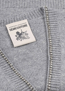 Schurwollcardigan mit Schmucksteinen