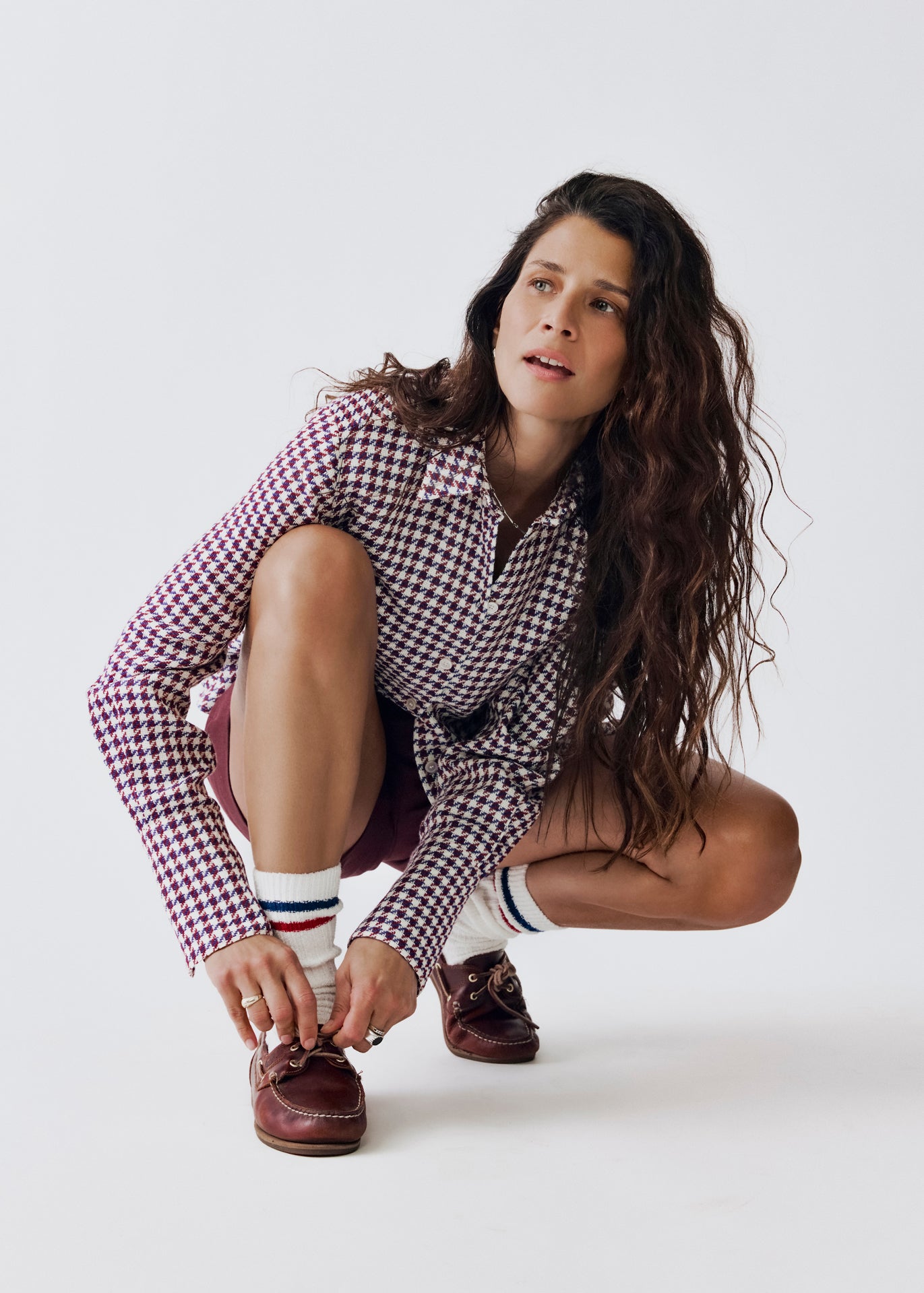 'Bermudini' Shorts von Pialea, schließt mit Knopf und Reißverschluss, Bund- und Bügelfalten, Taillenabnäher am hinterem Bund, seitliche Eingriffstaschen, eine kleine Gesäßtasche, Hosensaum mit Umschlag.
