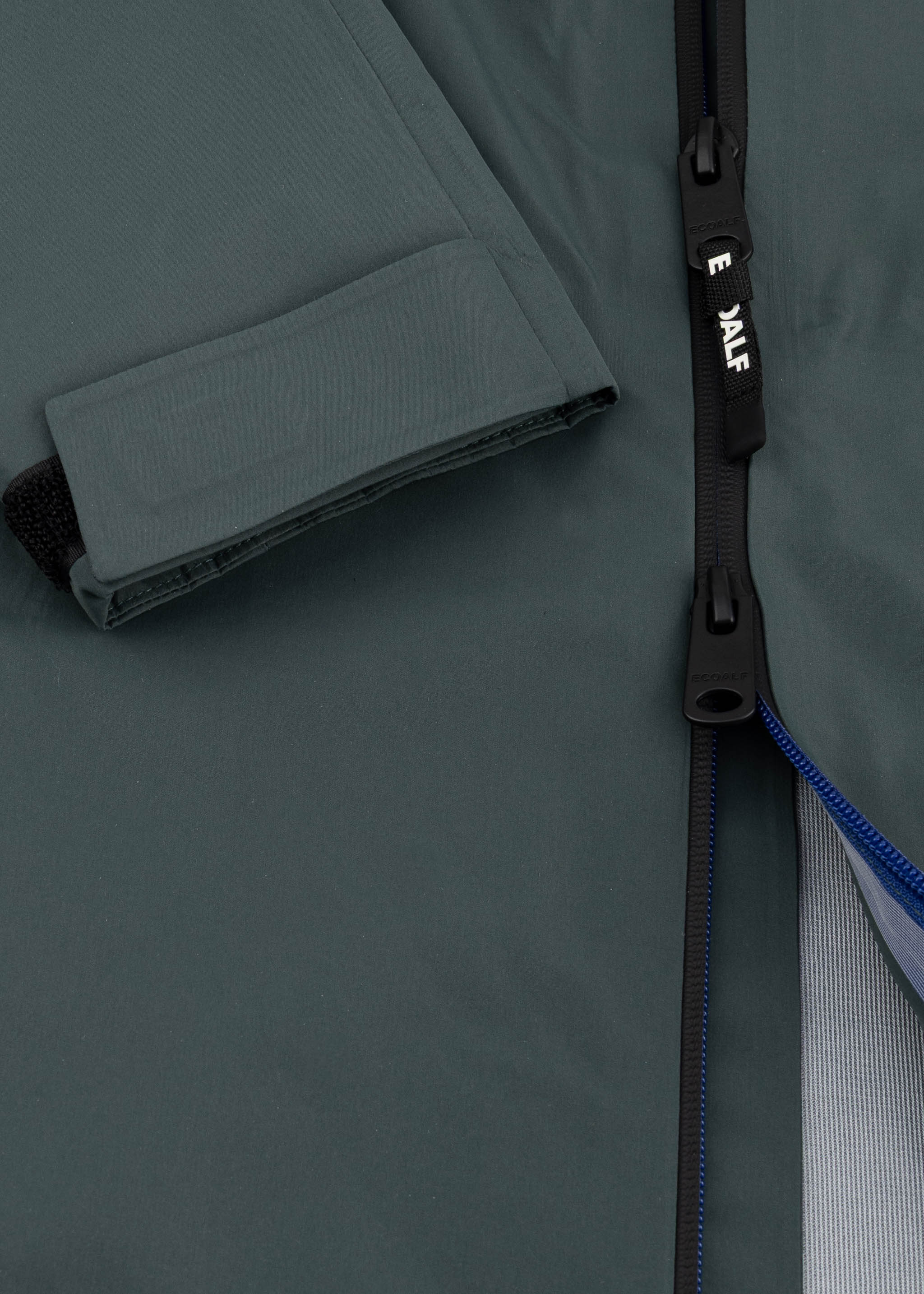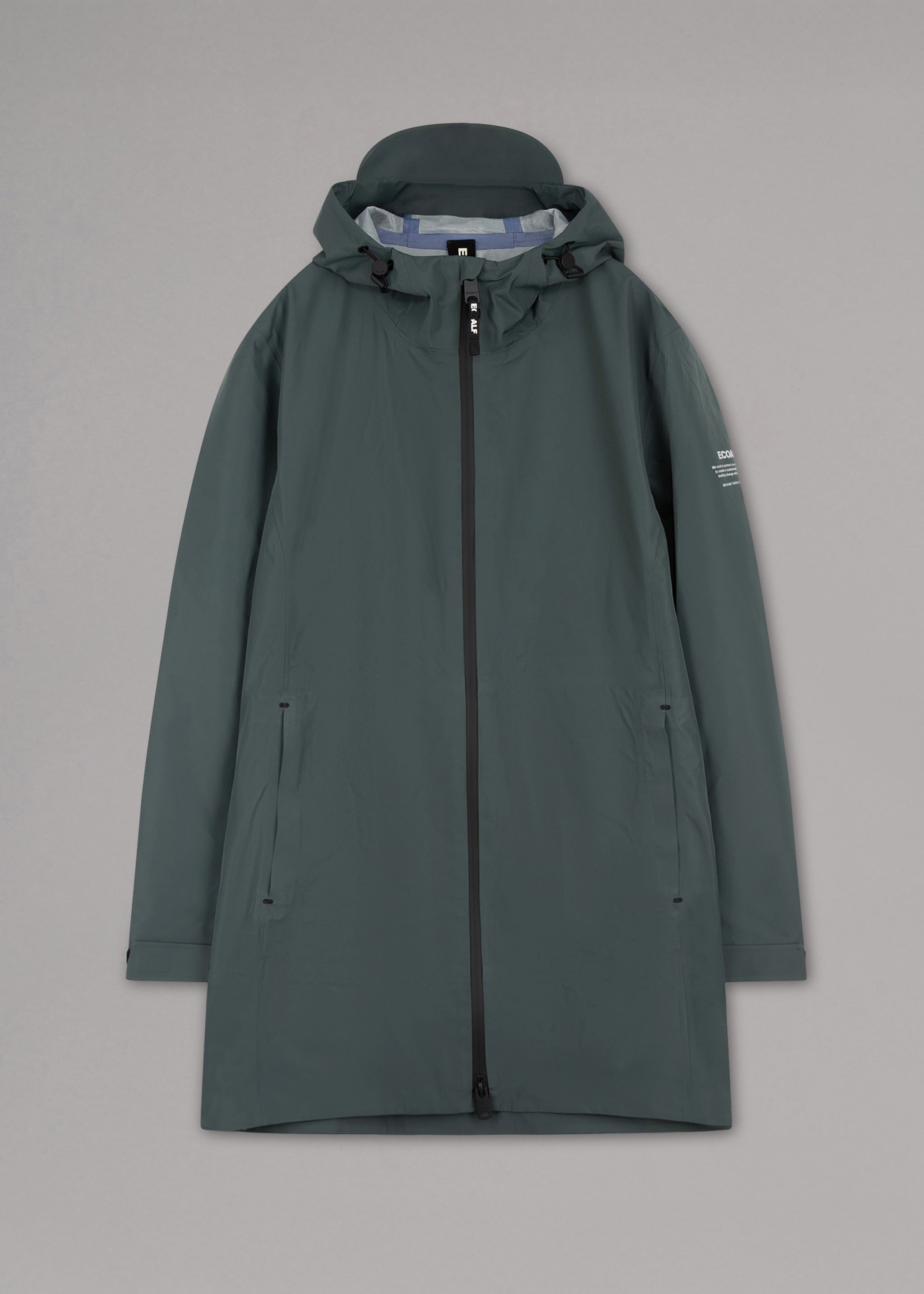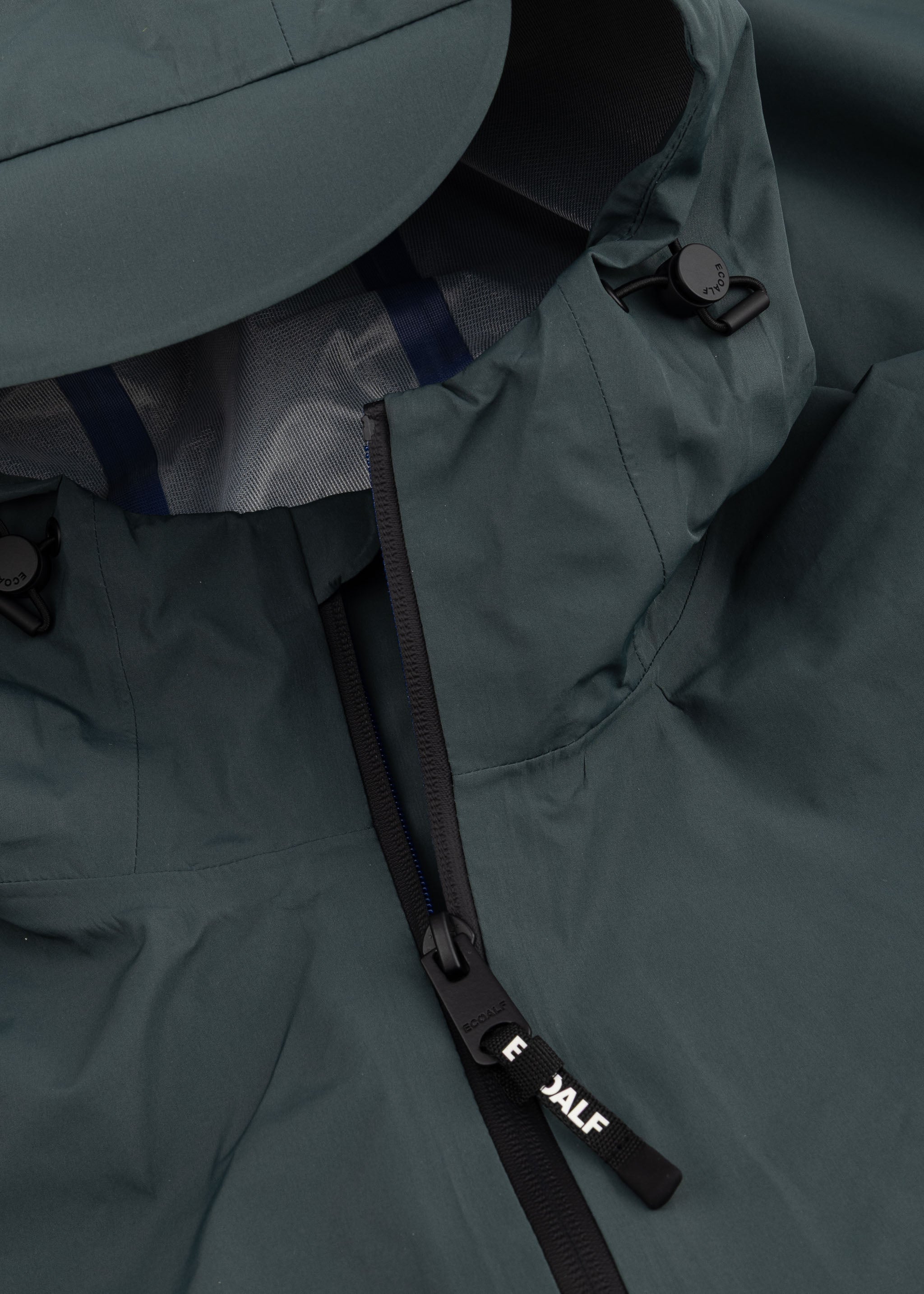 Breathable 'Bald' jacket by Ecoalf made from recycled polyester , stand-up collar with drawstring hood, long sleeves with Velcro cuffs, two-way zipper, side zip pockets, logo print, welded seams, straight hem, unlined construction.