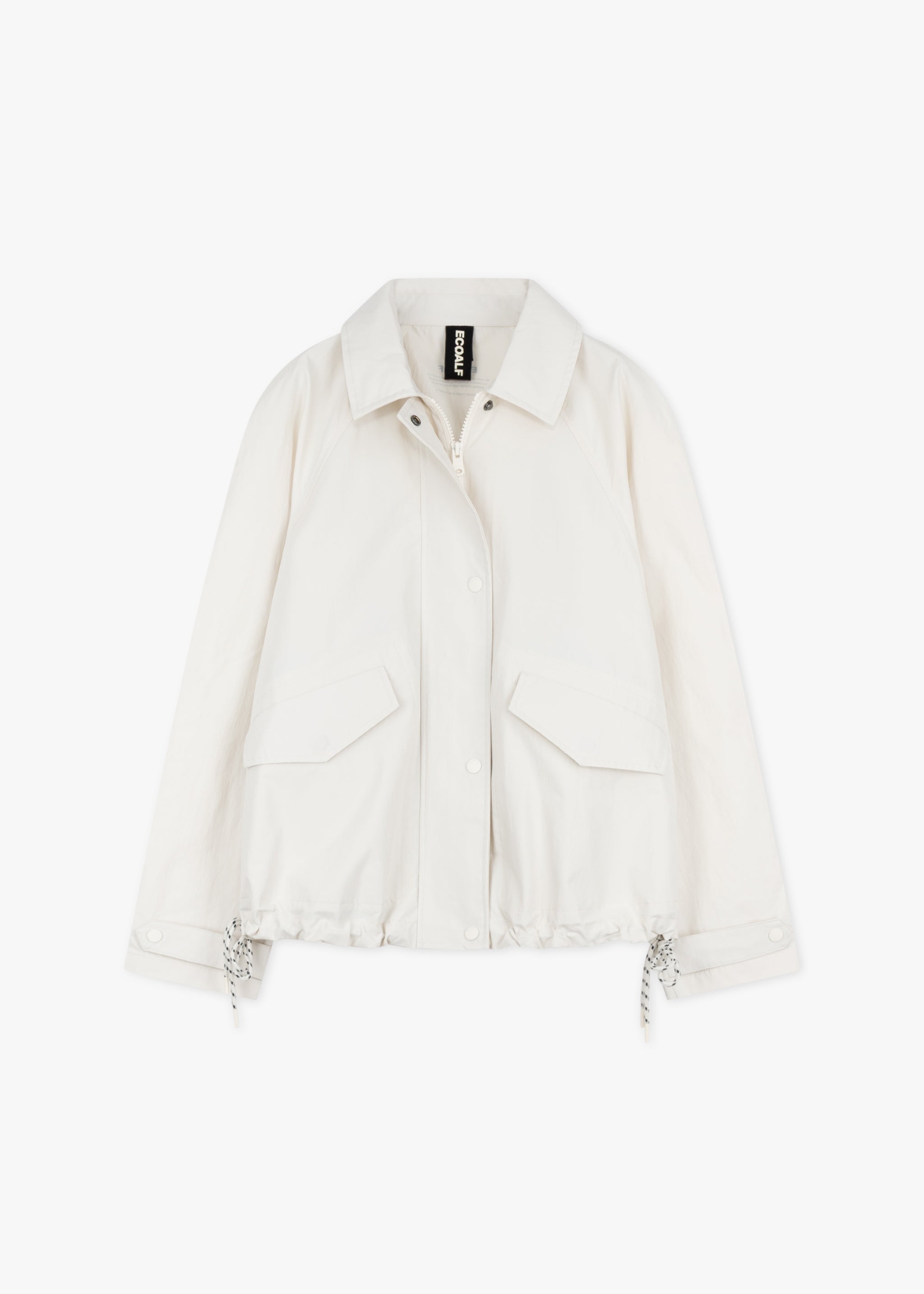 Jacket 'Major' by Ecoalf made from recycled nylon, classic collar, raglan sleeves with tab for buttoning, two-way zip, concealed snap button placket, side patch pockets, straight hem with drawstring, unlined construction.