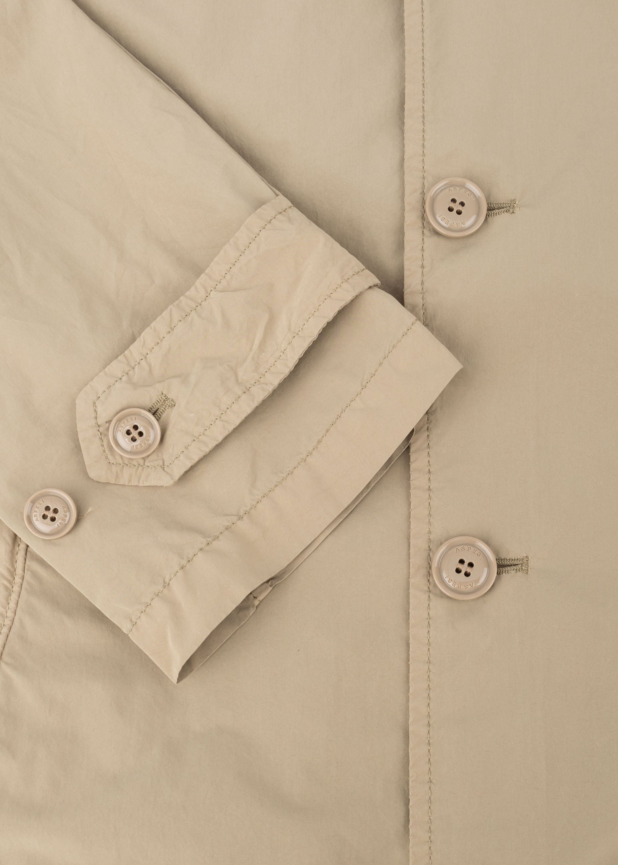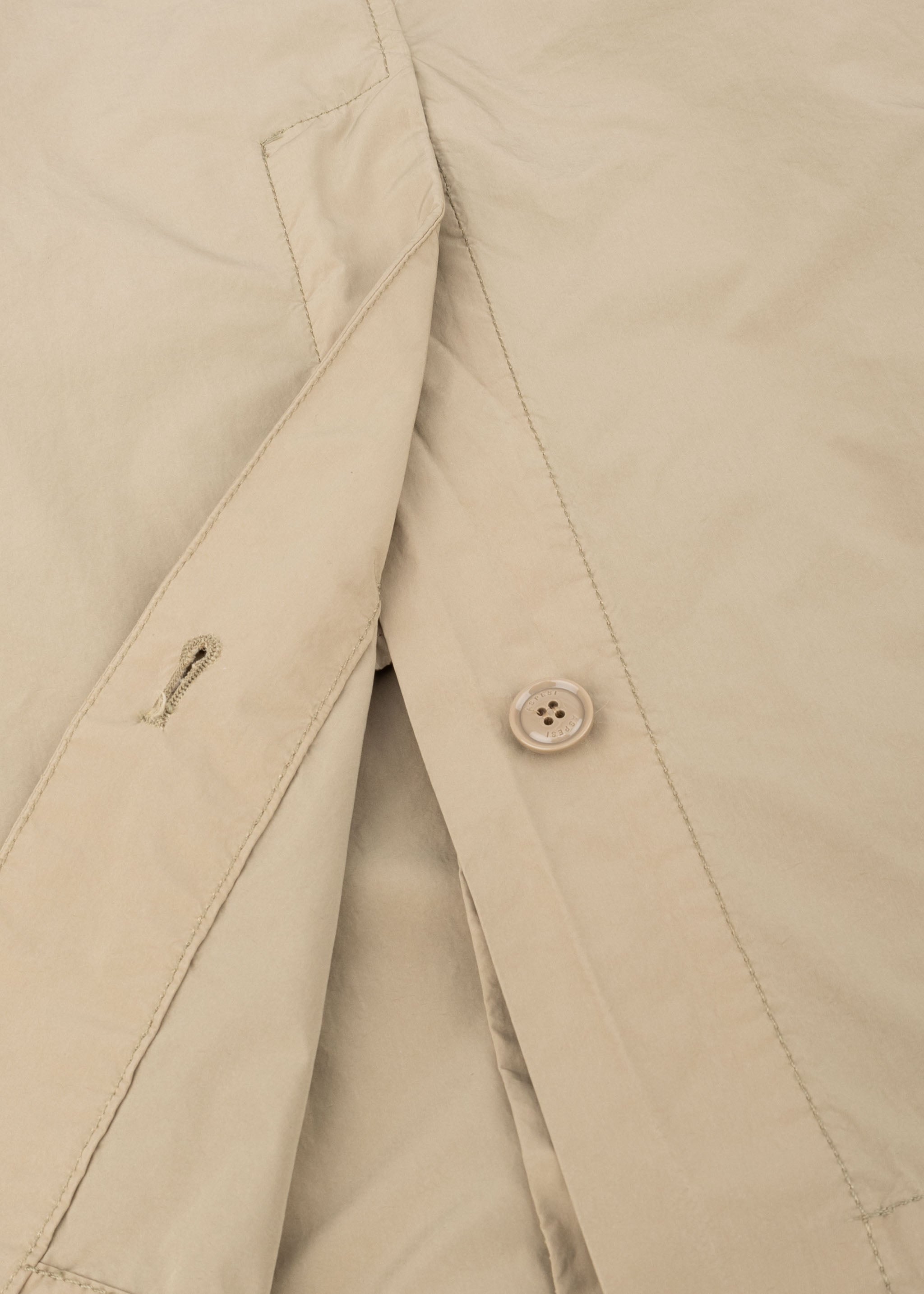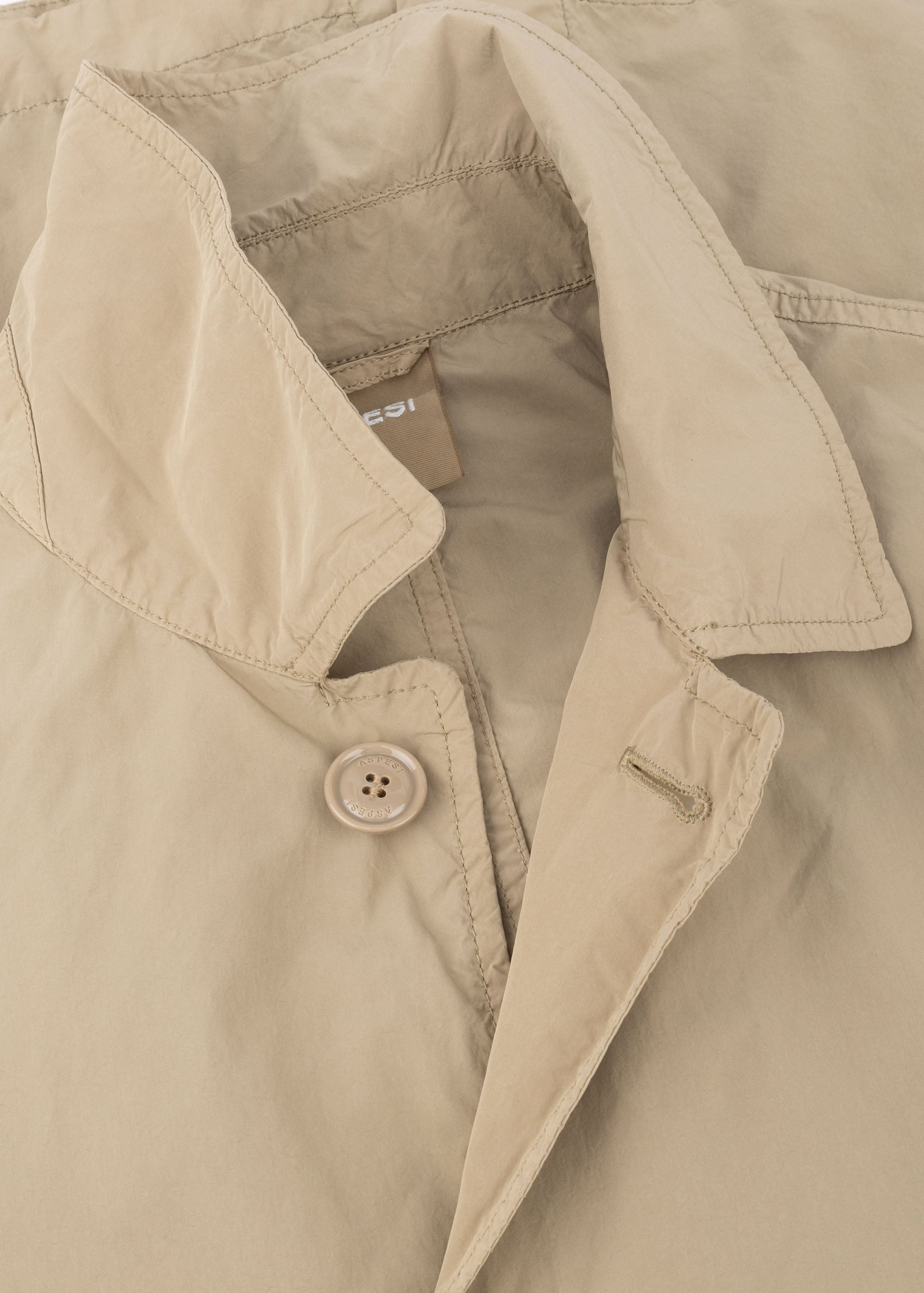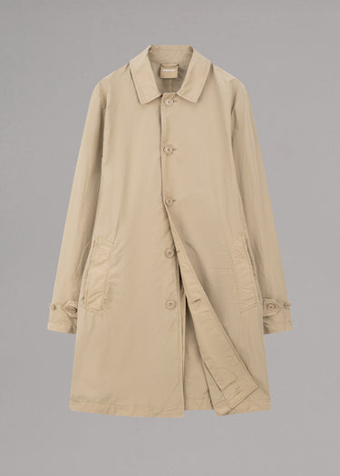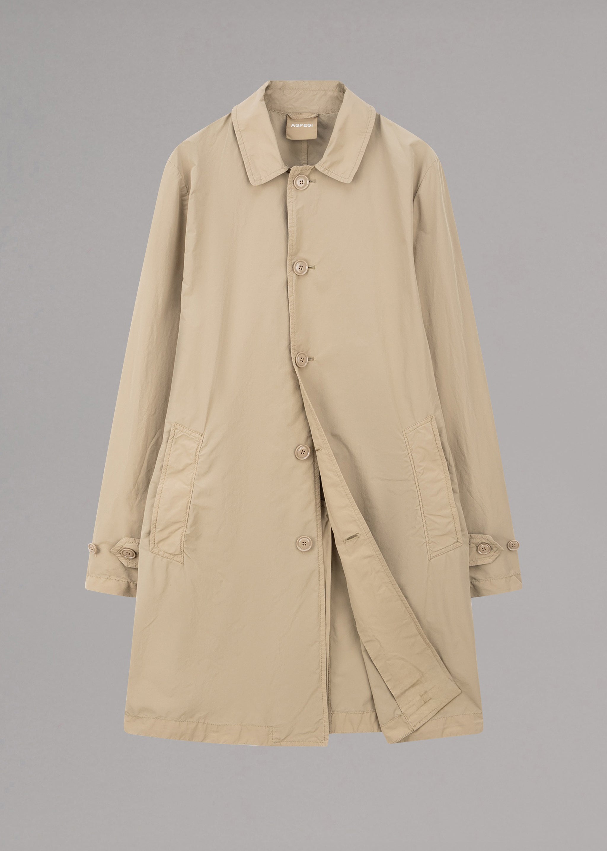 'Lemon' raincoat by Aspesi, classic collar, sleeves with adjustable tab and buttons, full button placket, side welt pockets, one inner pocket, straight hem with vent.