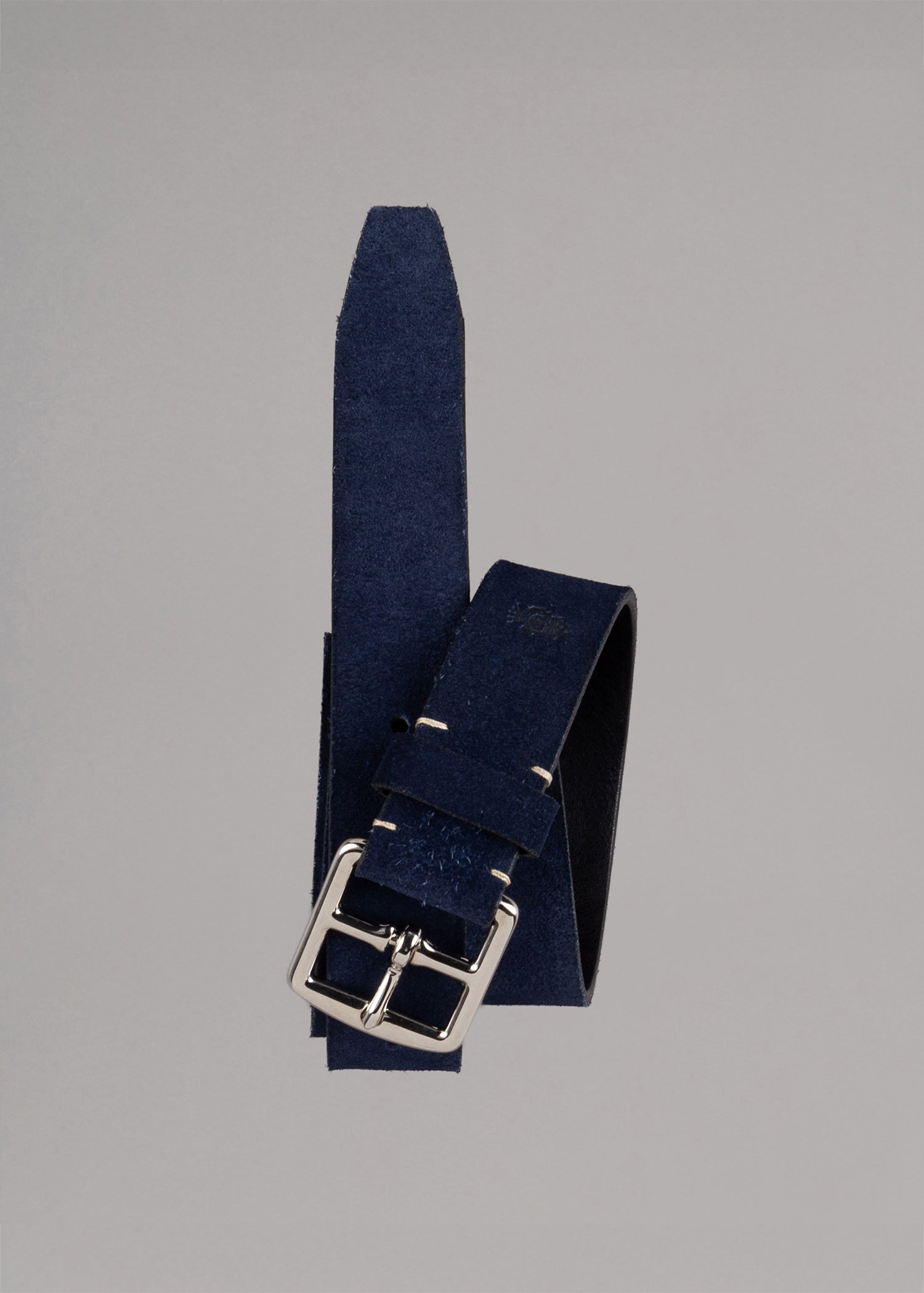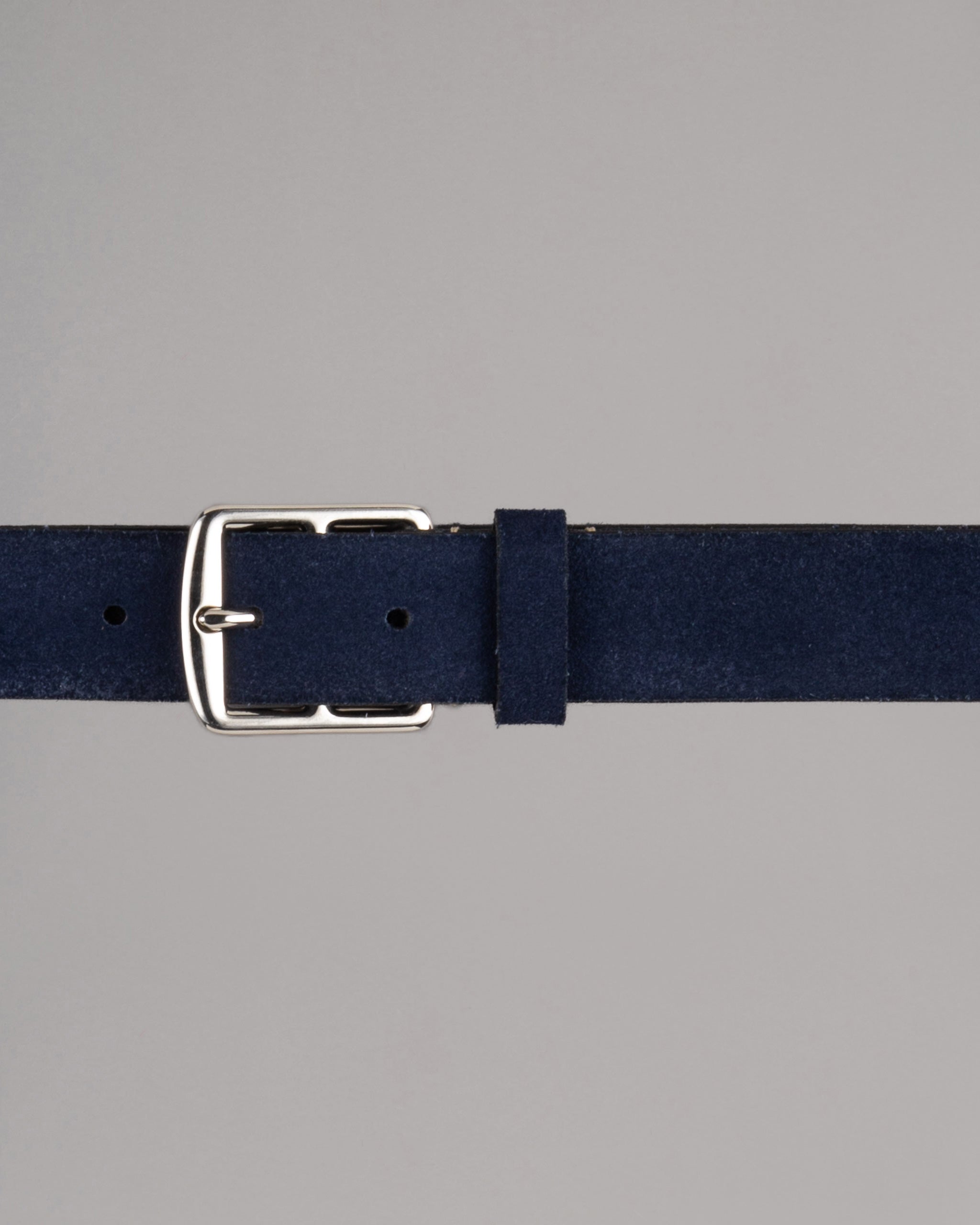 Dark blue leather belt from Felisi with silver buckle and loops.
