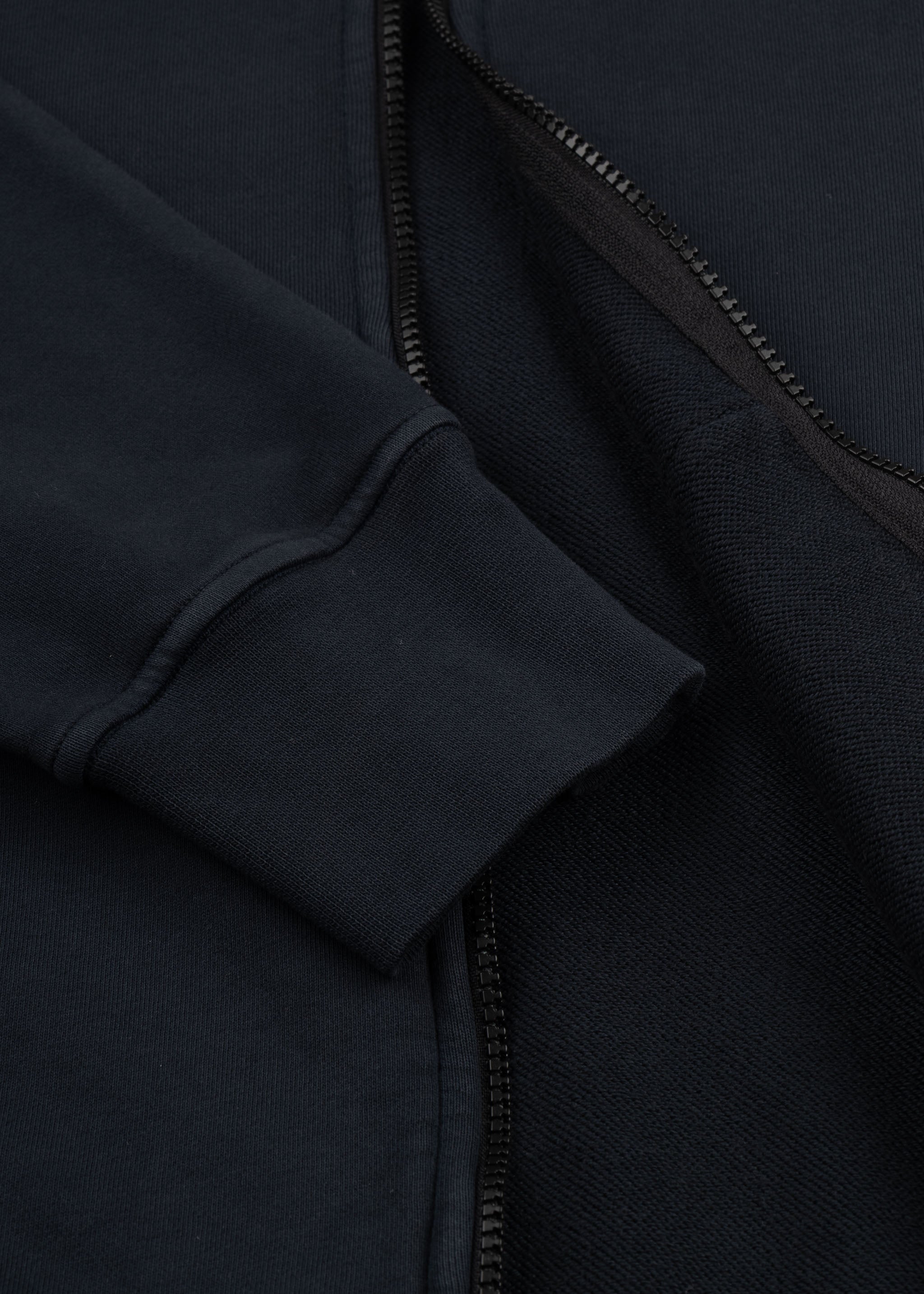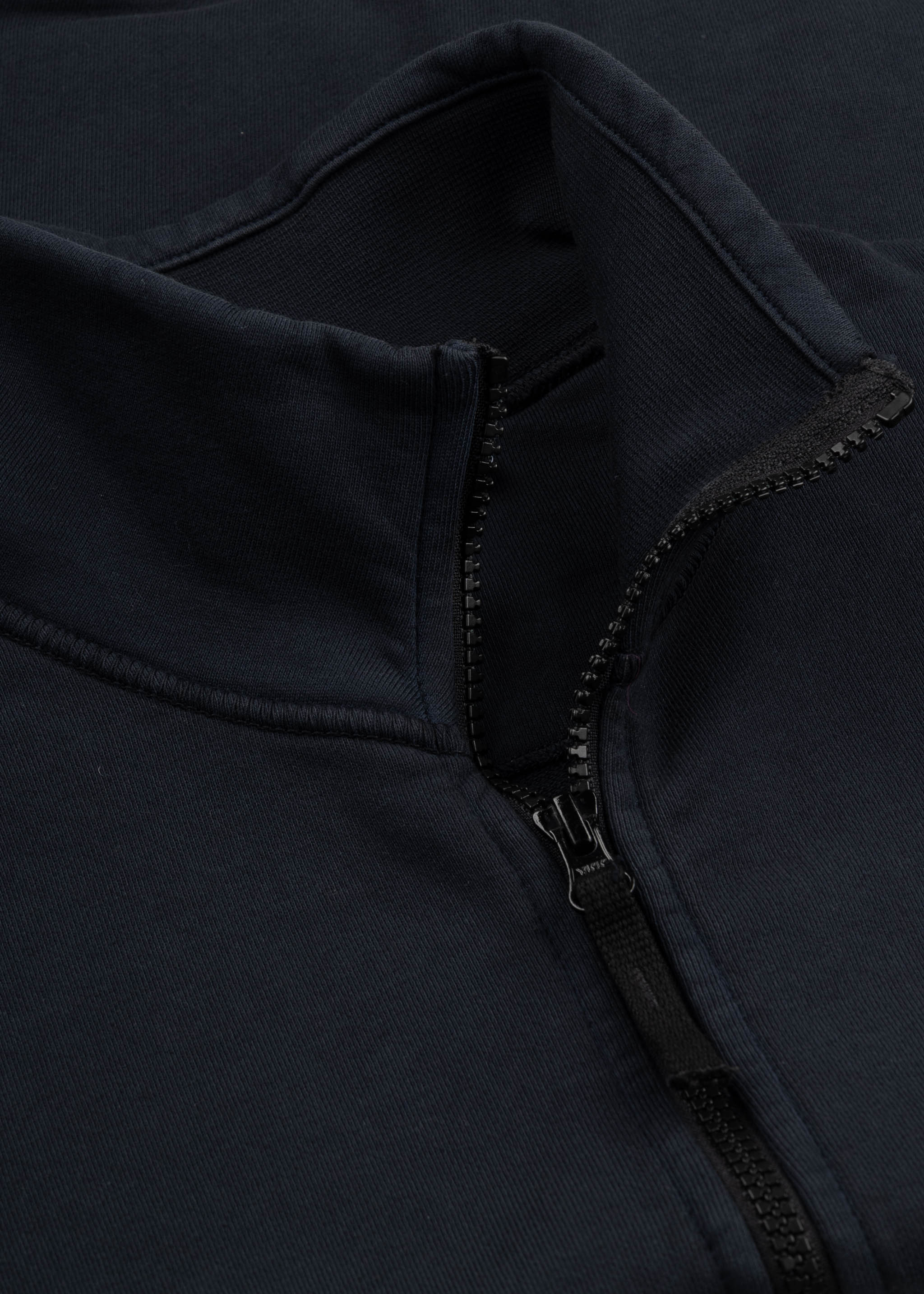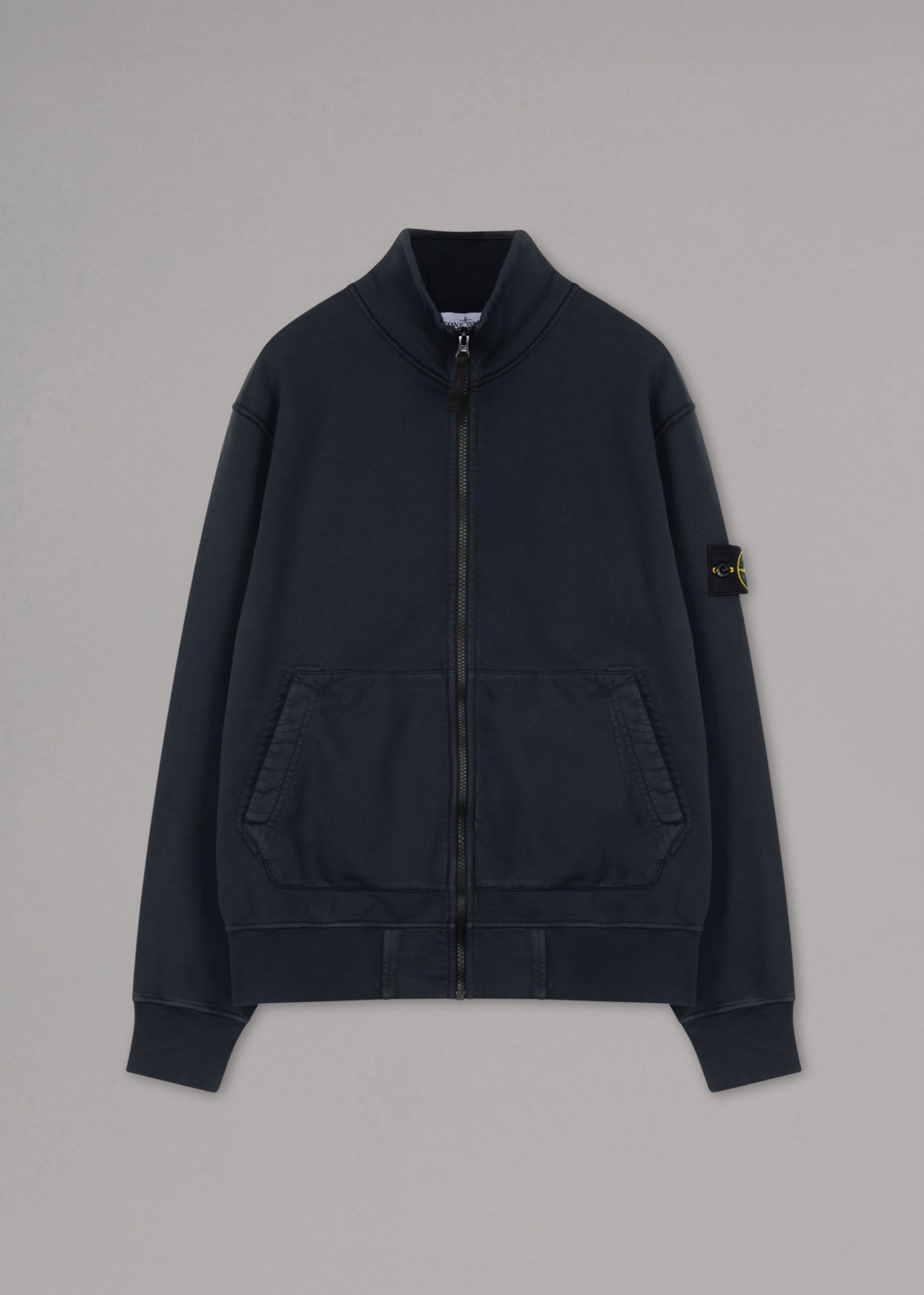 Zip-up sweatshirt by Stone Island made from organic cotton, stand-up collar, long sleeves, detachable Stone Island badge, side pockets, overlock seams, ribbed cuffs, straight hem.