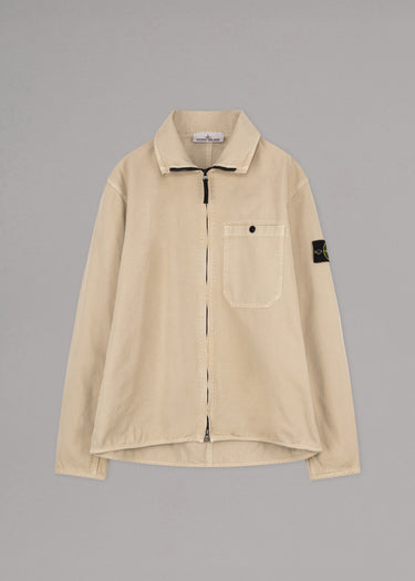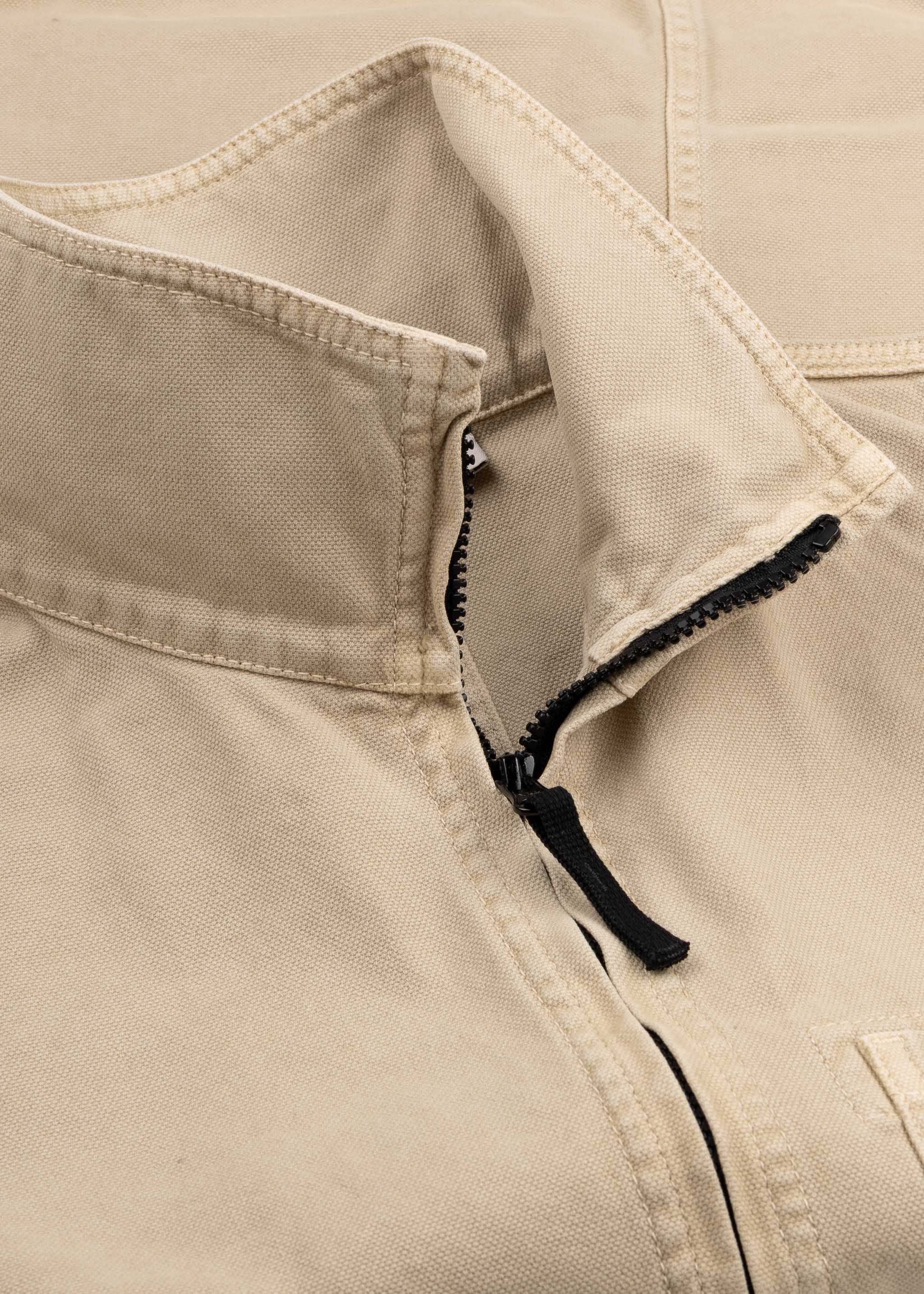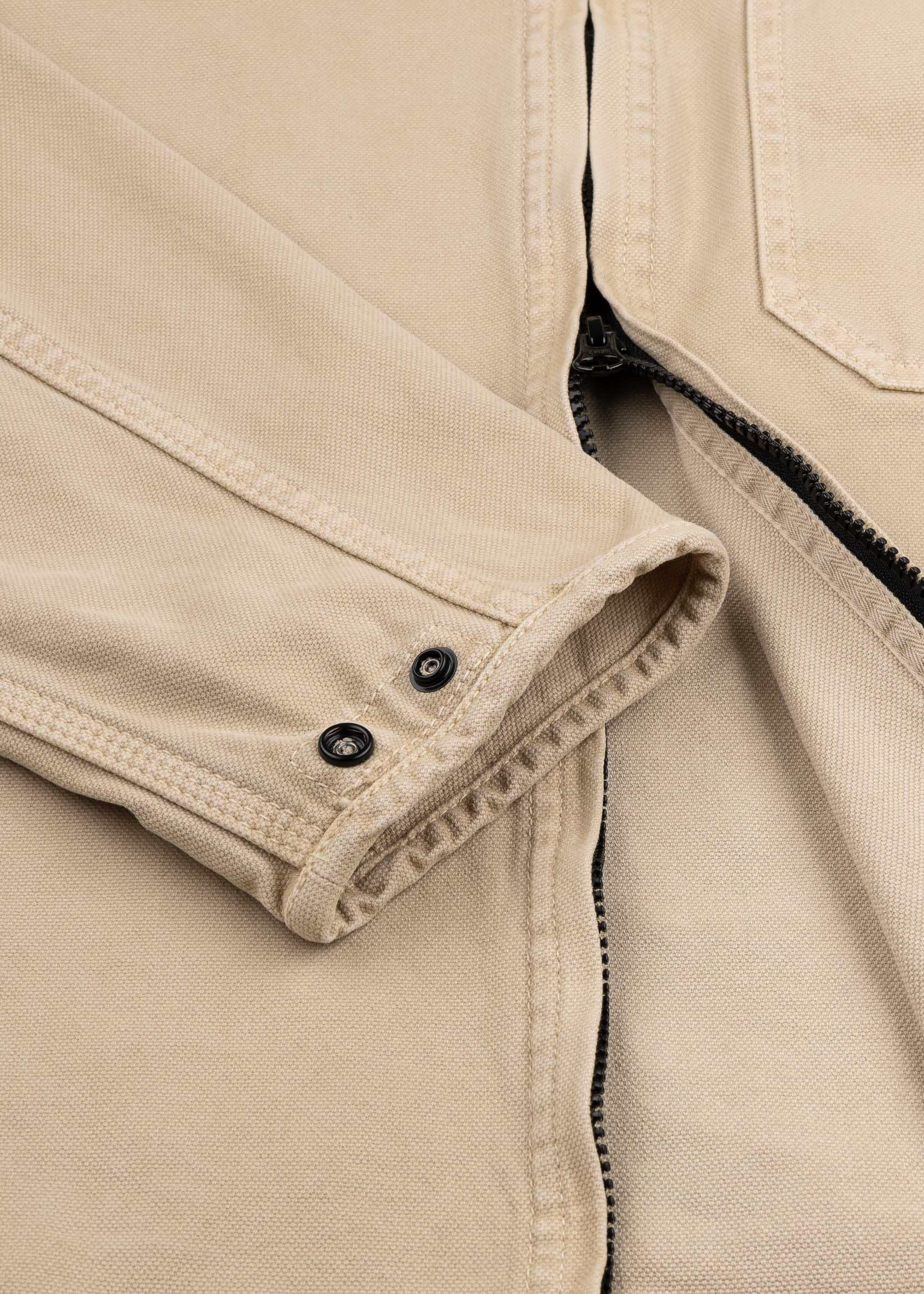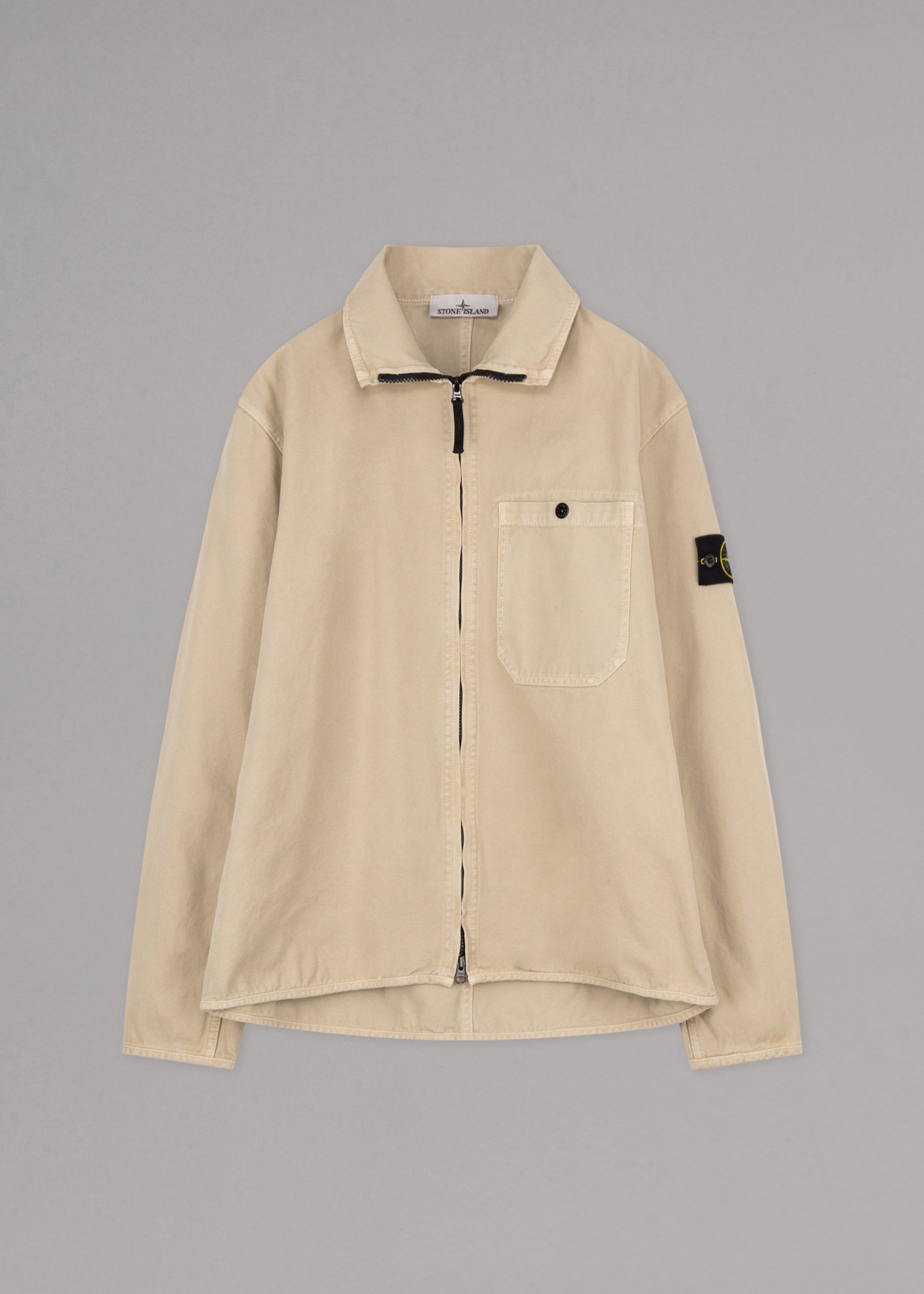 Structured jacket from Stone Island made of organic cotton, stand-up collar, two-way zip fastening, one chest pocket, long sleeves with snap button cuffs, detachable Stone Island badge, slightly longer hem at the back, unlined.
