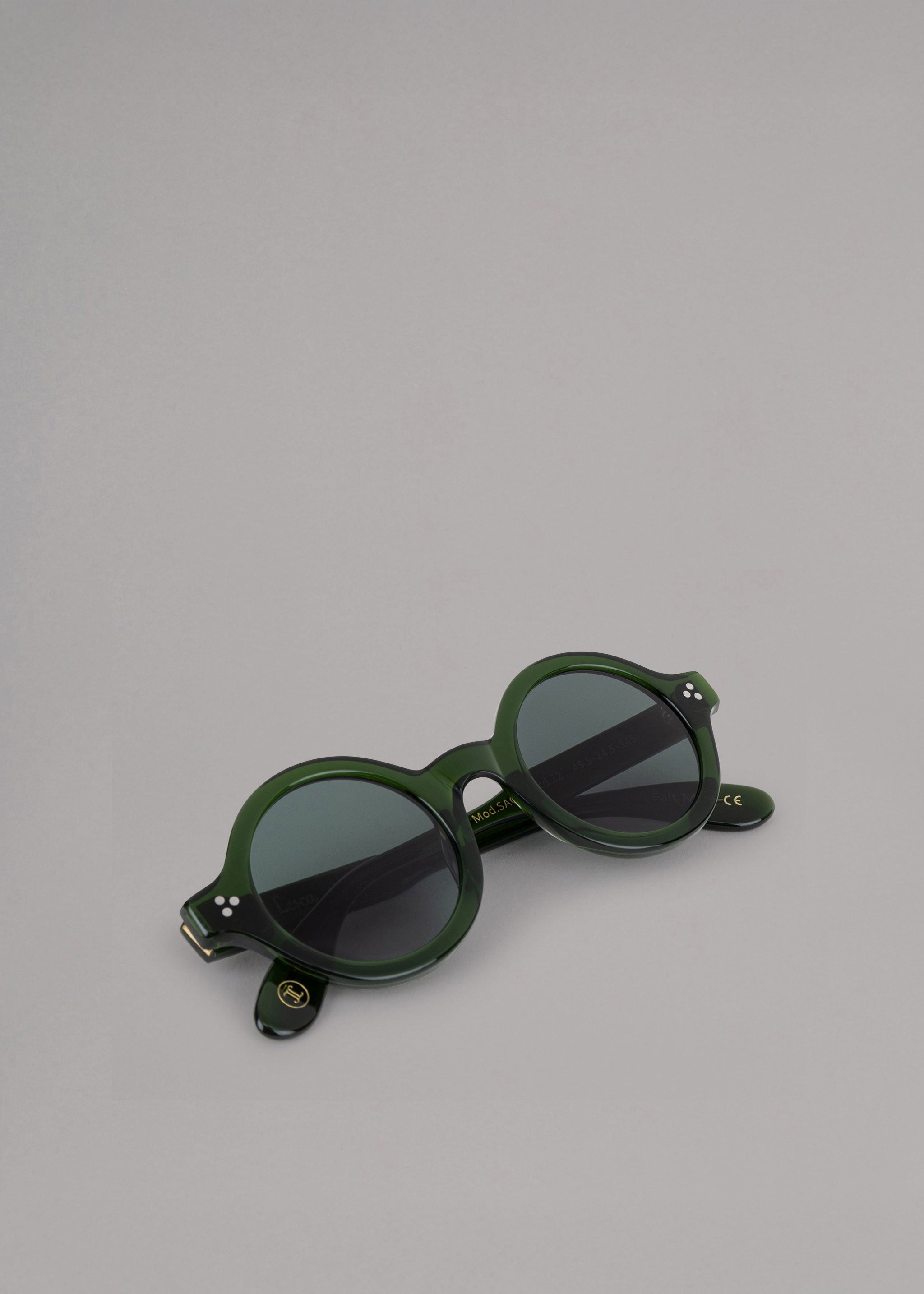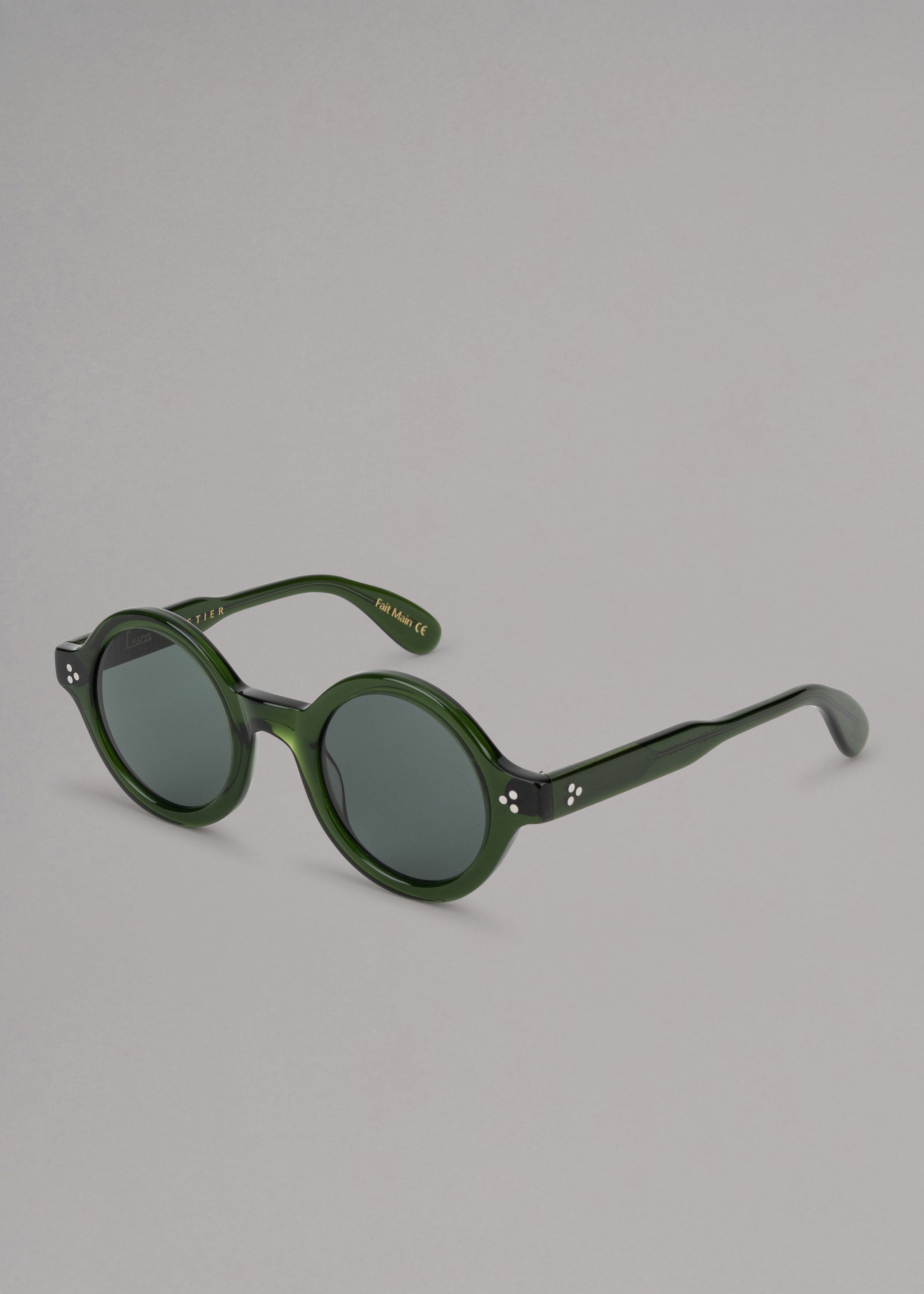Handmade acetate sunglasses 'Saga' by Lesca, round frame and lenses, retro style.