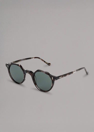 'Heri' acetate sunglasses by Lesca with round lenses, straight temples, rounded tips and double rivets on the front and temples. 100% anti-UV / category 3 lenses, anti-glare with optimal protection.