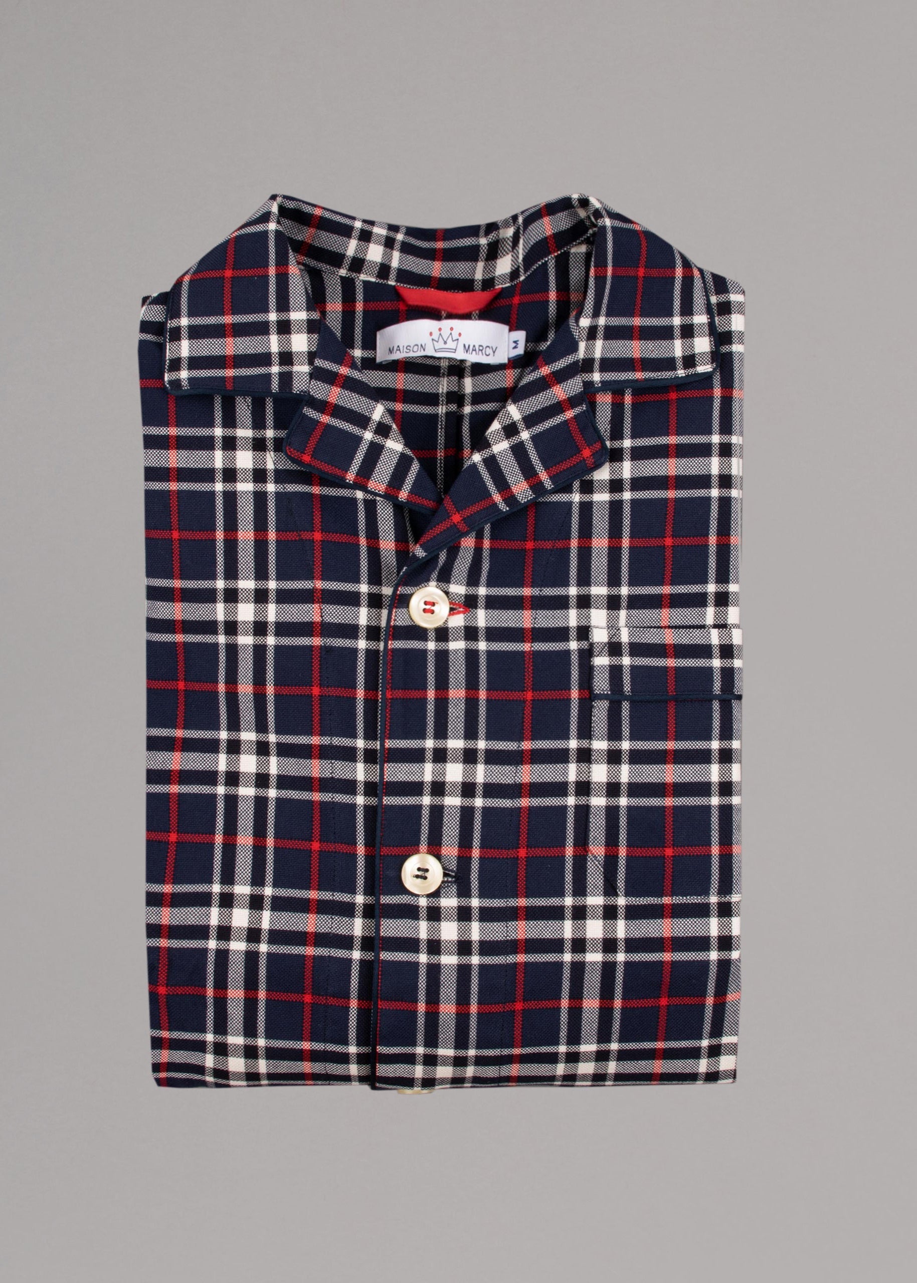 Checked Pyjama by Maison Marcy made of cotton, lapel collar, one breast pocket, full-length button placket, trousers with elastic waistband and button fastening.
