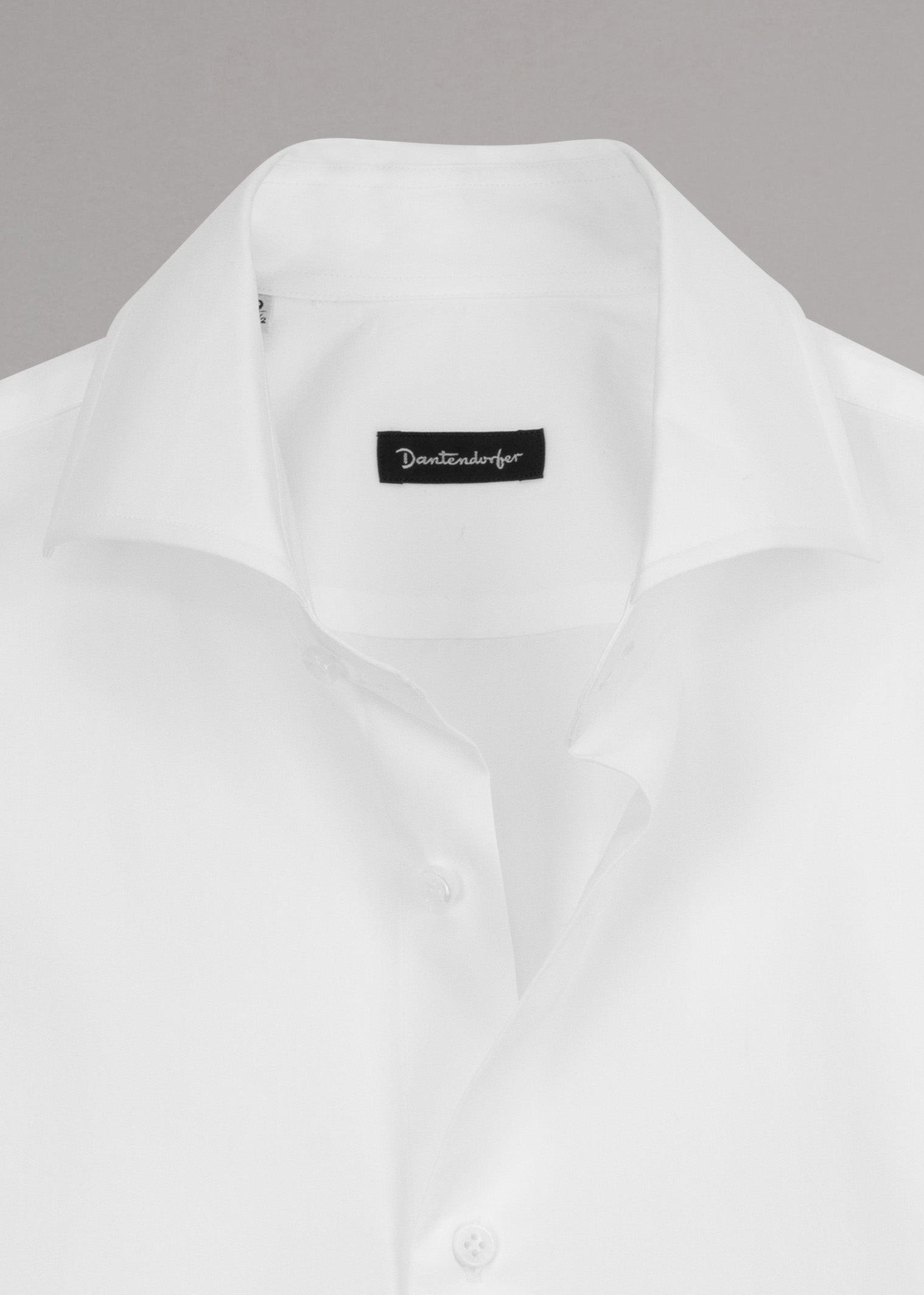 Cotton shirt by Dantendorfer, pointed collar, long sleeves with button cuffs, full-length button placket, rounded hem.