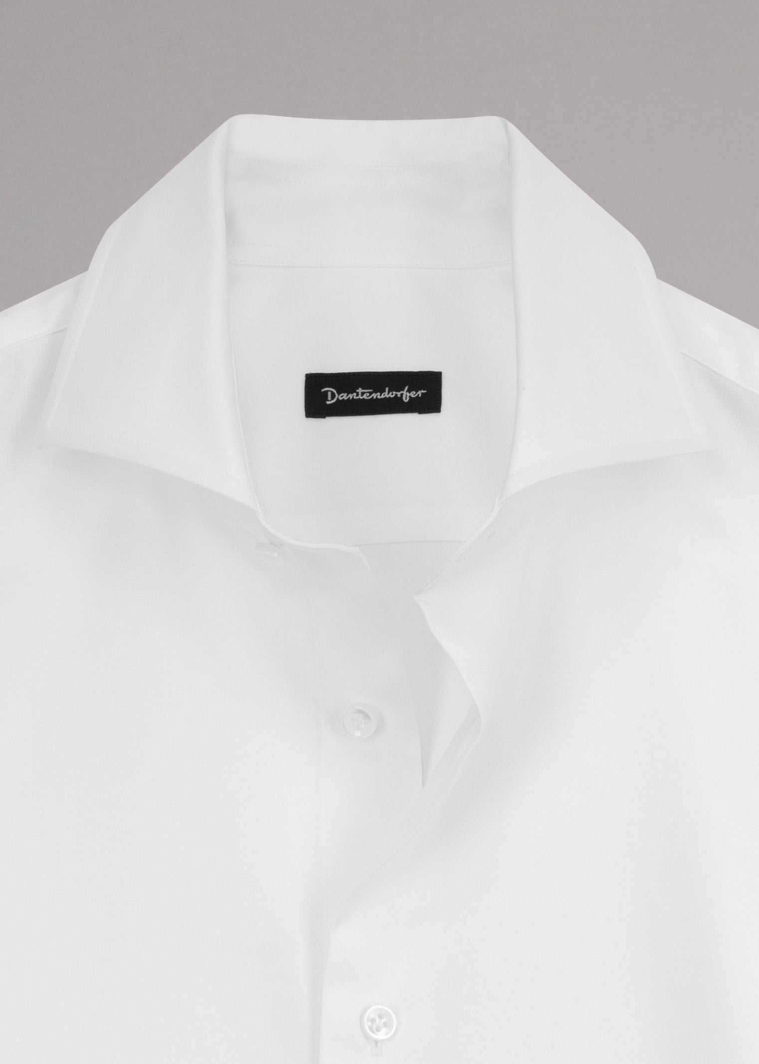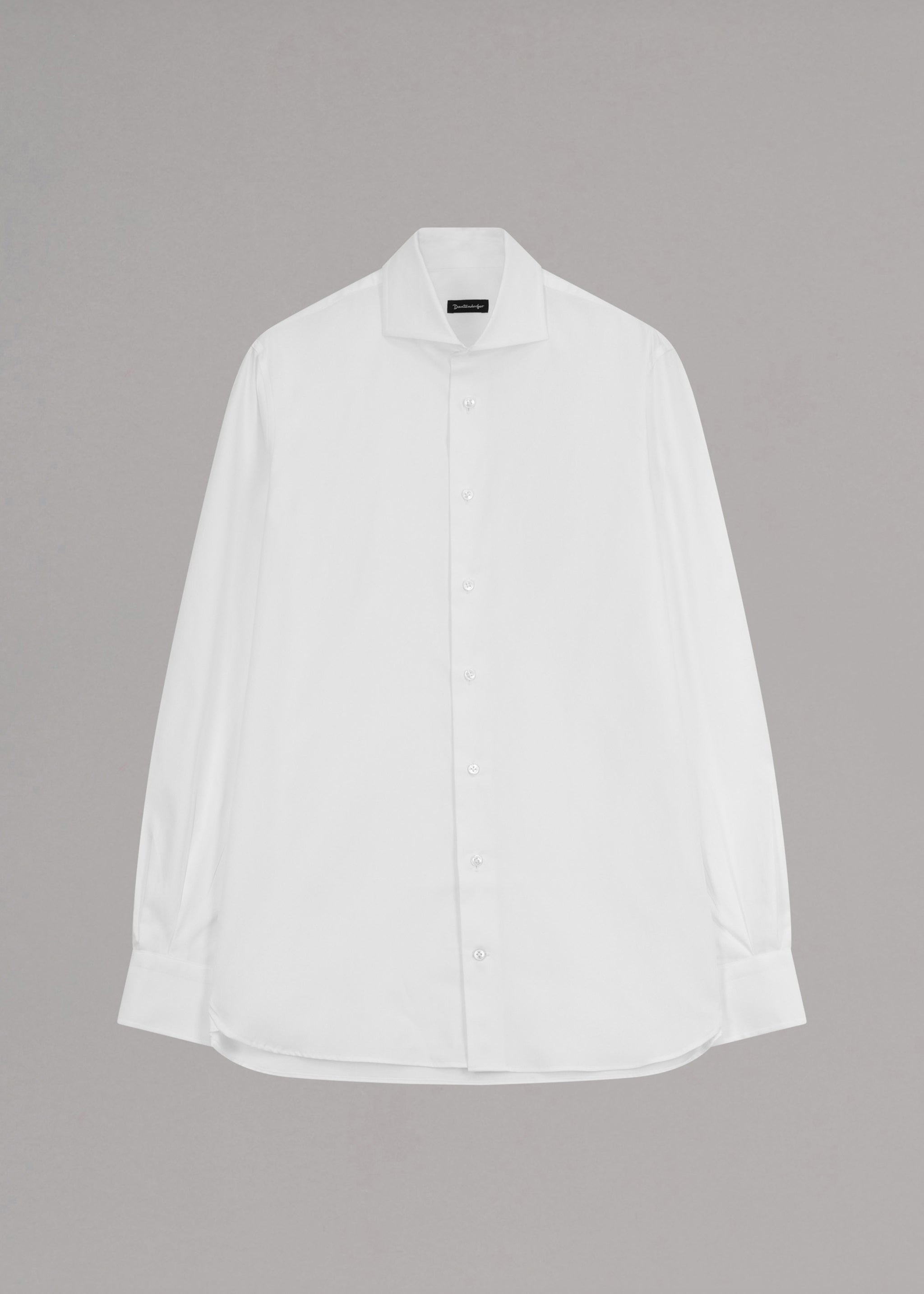 Cotton shirt by Dantendorfer, pointed collar, full button placket, sleeves with button cuffs, rounded hem.