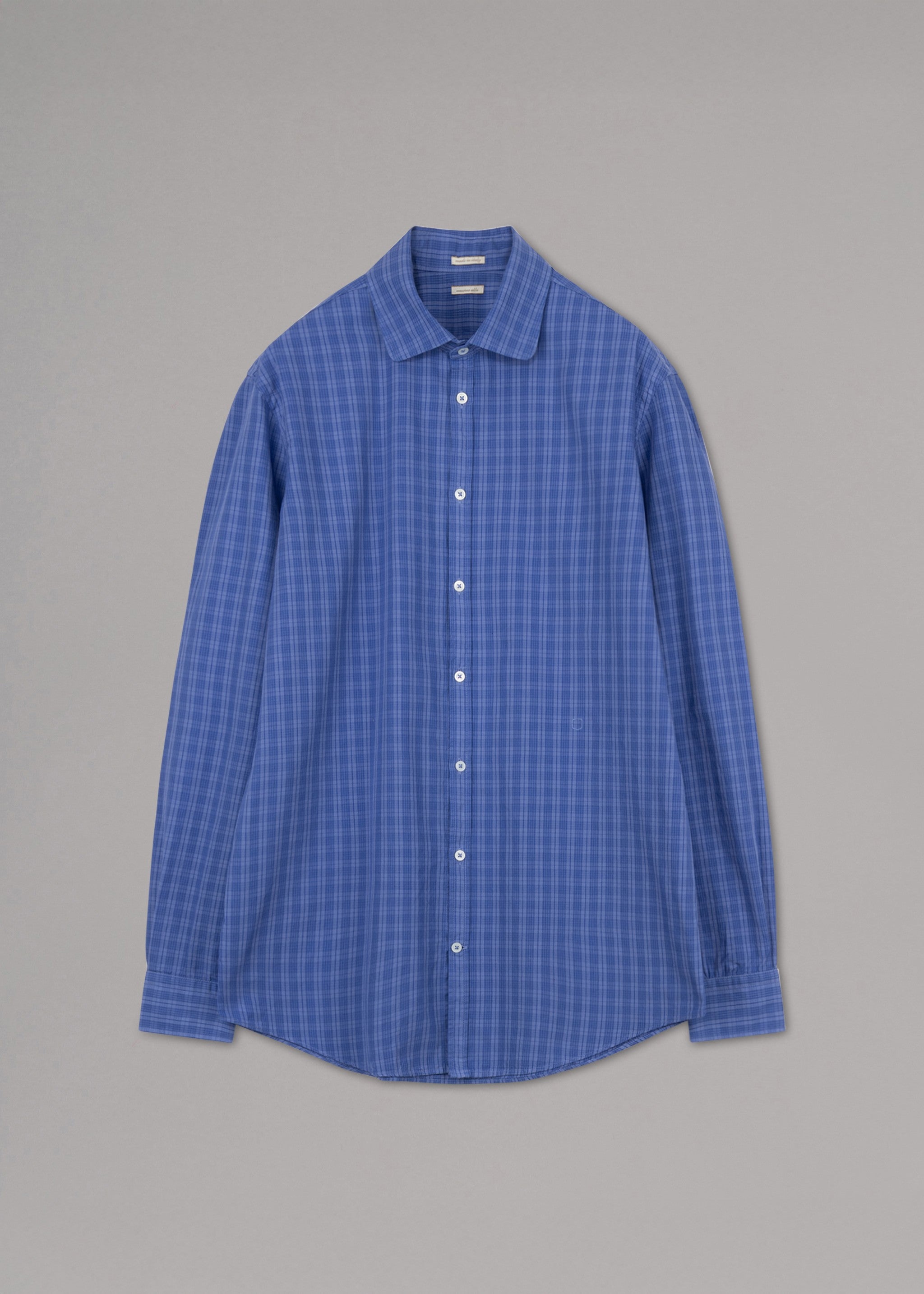 'Canary' shirt by Massimo Alba made of fine cotton, rounded shark collar, full button placket, sleeves with button cuffs, pointed back yoke, darts in the back, rounded hem.
