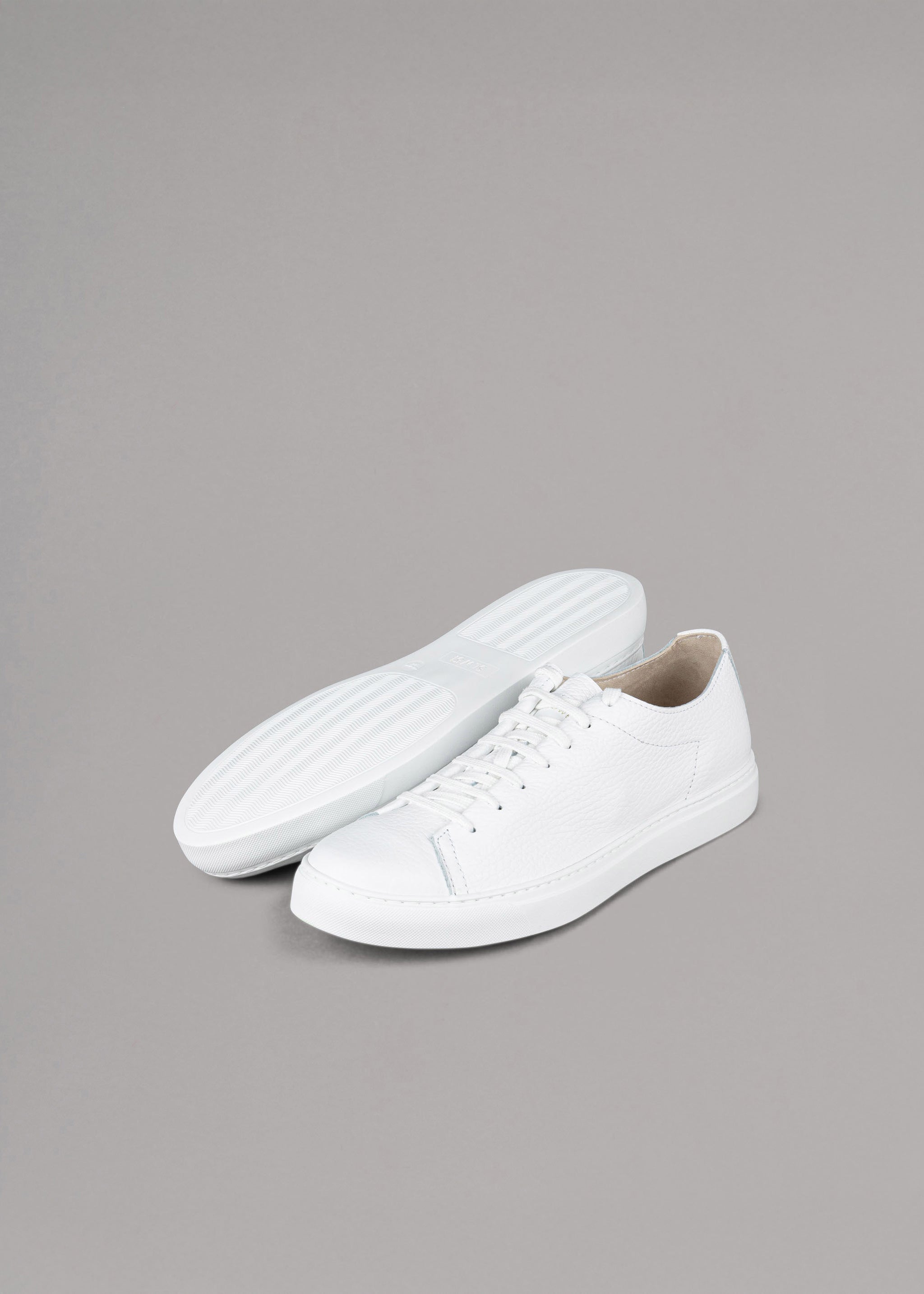 Light lace-up sneakers by Slowear made in calfskin featuring a round toe, lace-up front fastening, ridged rubber sole and a logo patch at the heel.