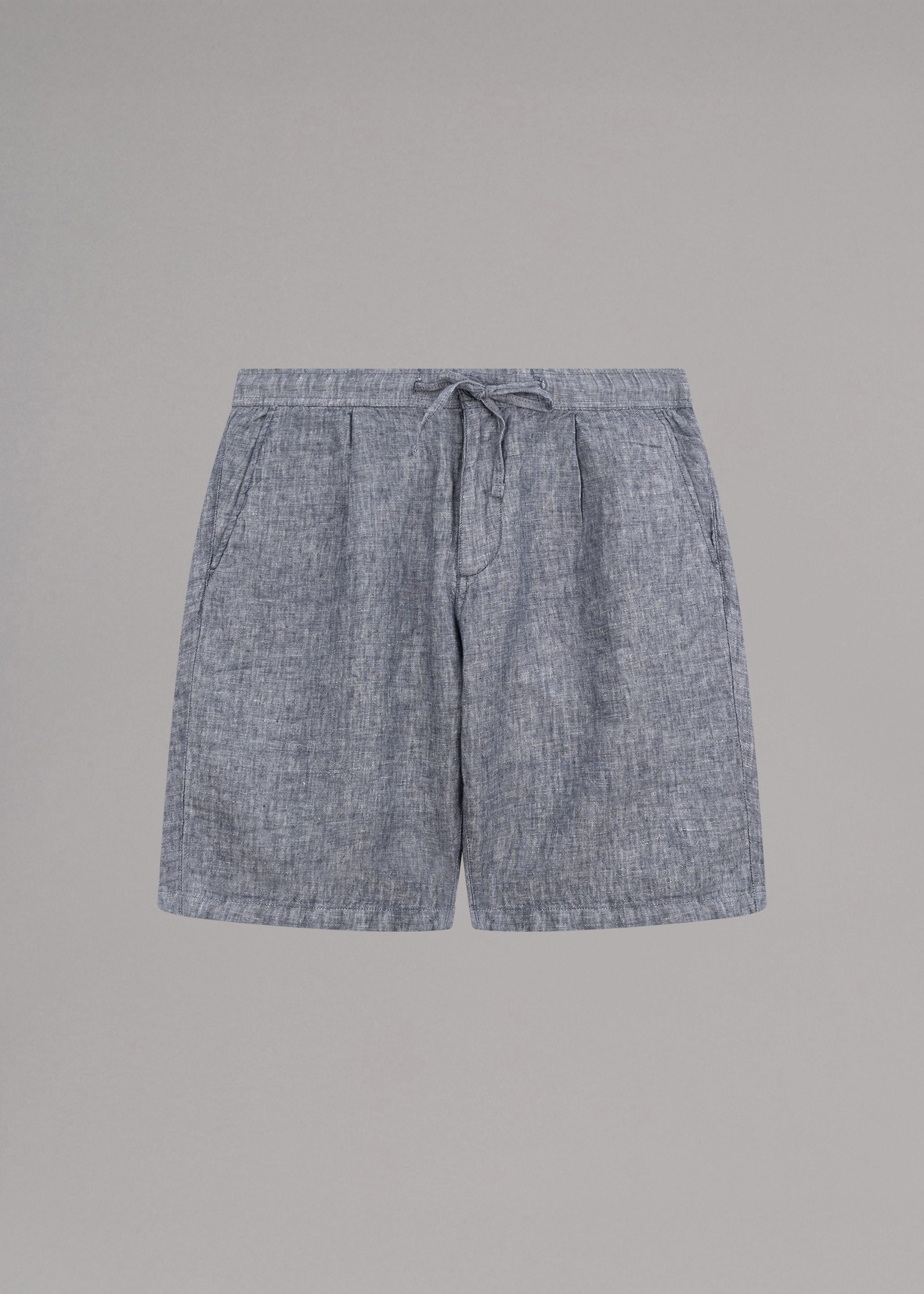 Loose-fitting shorts from KnowledgeCotton made of soft organic linen, elasticated waistband with drawstring, button and zip fastening, pleats, side pockets , back pockets.