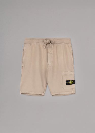 Sweat shorts from Stone Island made of organic cotton, elasticated waistband with drawstring, concealed zip fastening, side pockets, one back pocket with snap closure, patch pocket on the leg with removable Stone Island badge, overlock seams.