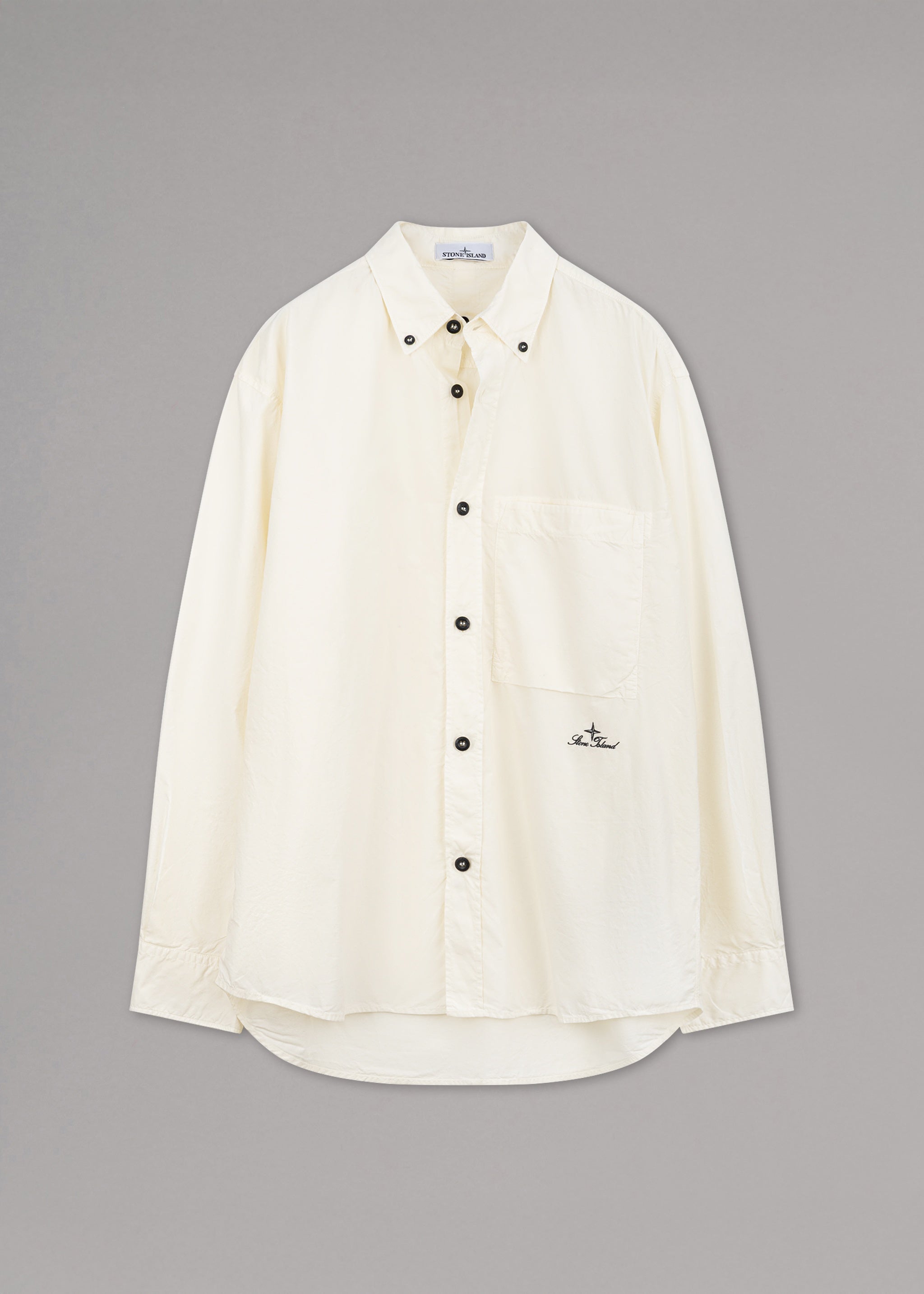 Loose-fitting shirt from Stone Island made of soft organic cotton, button-down collar, long sleeves with buttoned cuffs, back yoke with loop and snap button, button placket, one chest pocket, embroidered logo lettering, rounded hem.