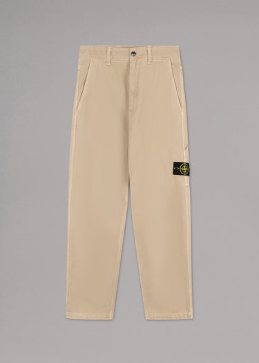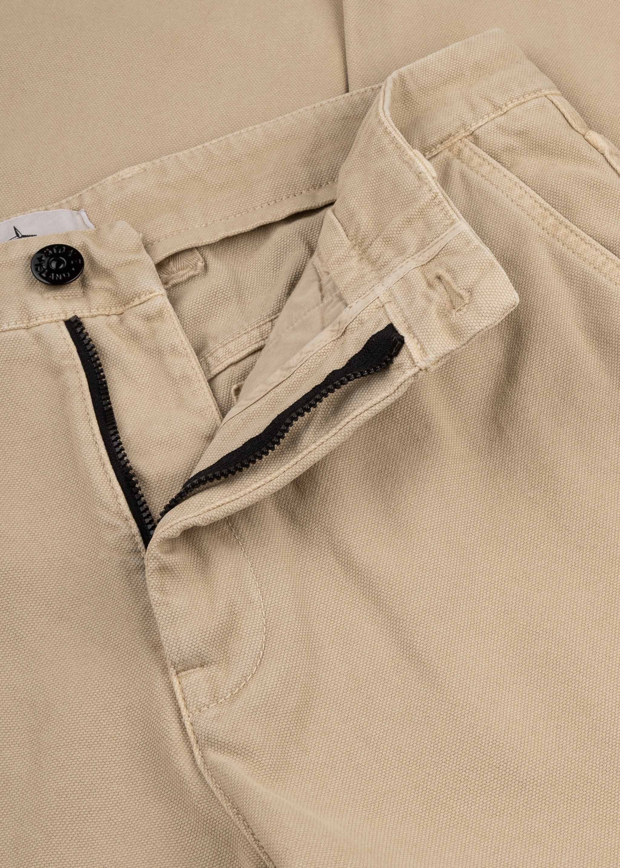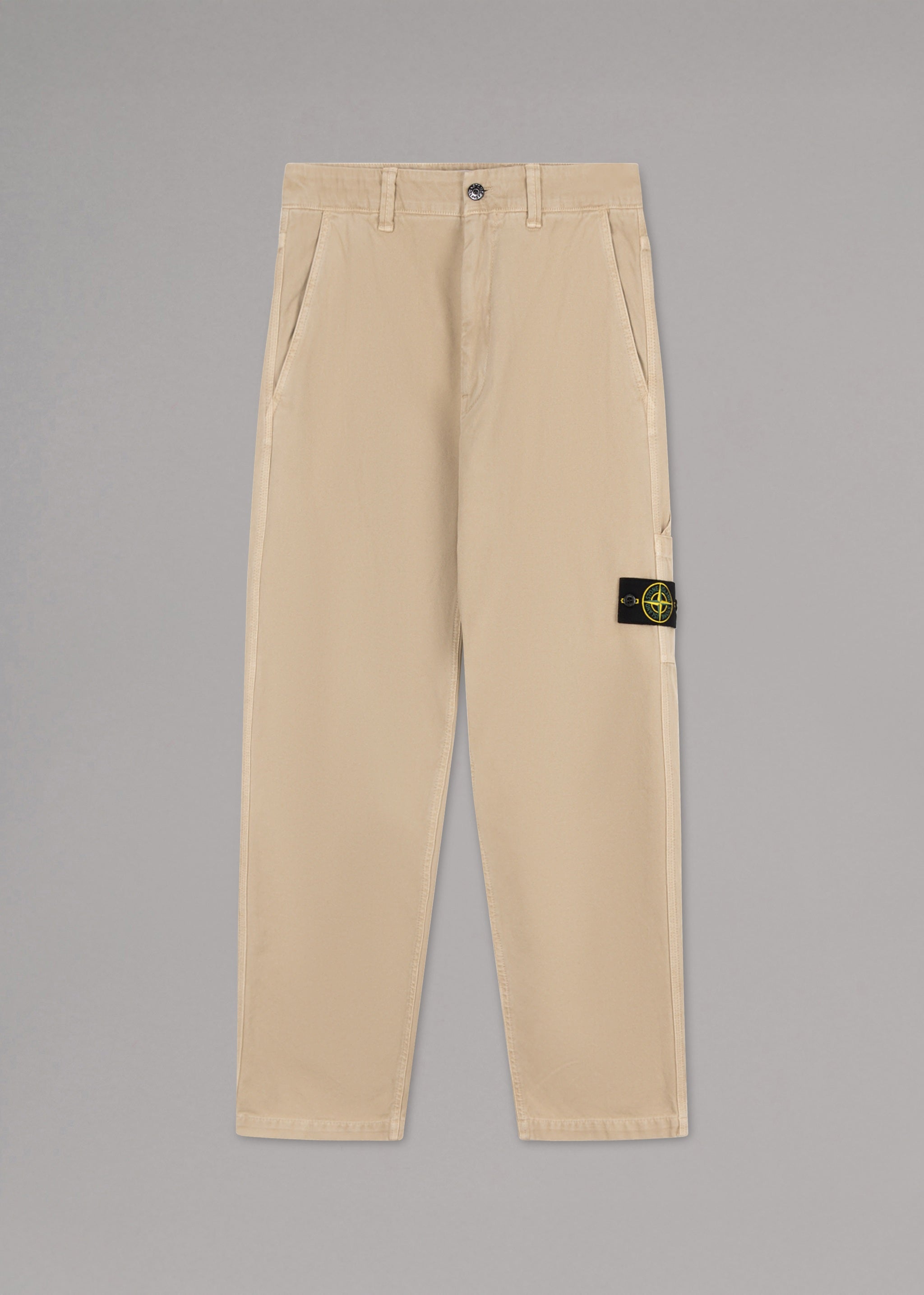 Regular-fit trousers by Stone Island, belt loops, button and zip fastening, side pockets, double utility pockets, two patch back pockets, removable Stone Island badge.