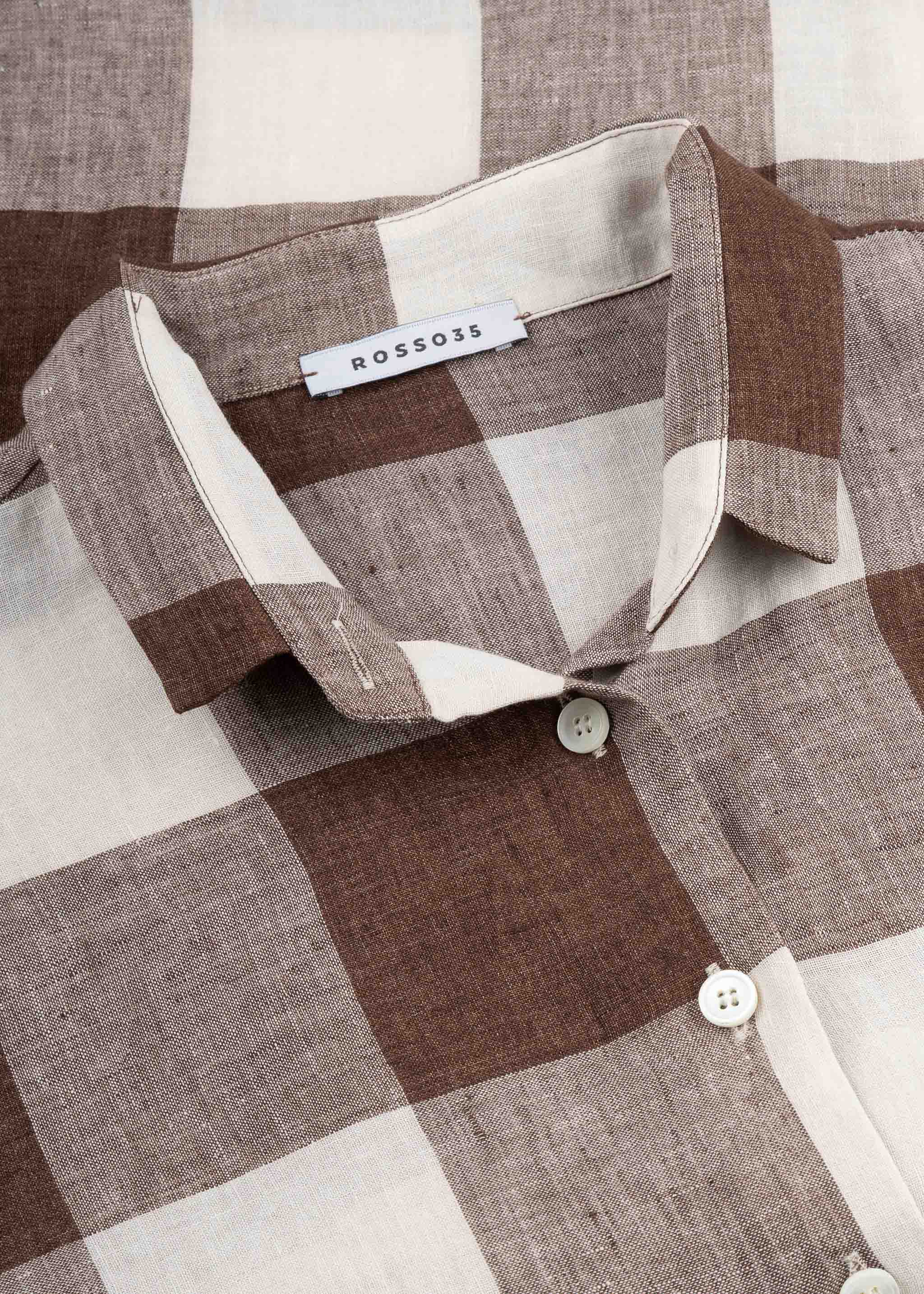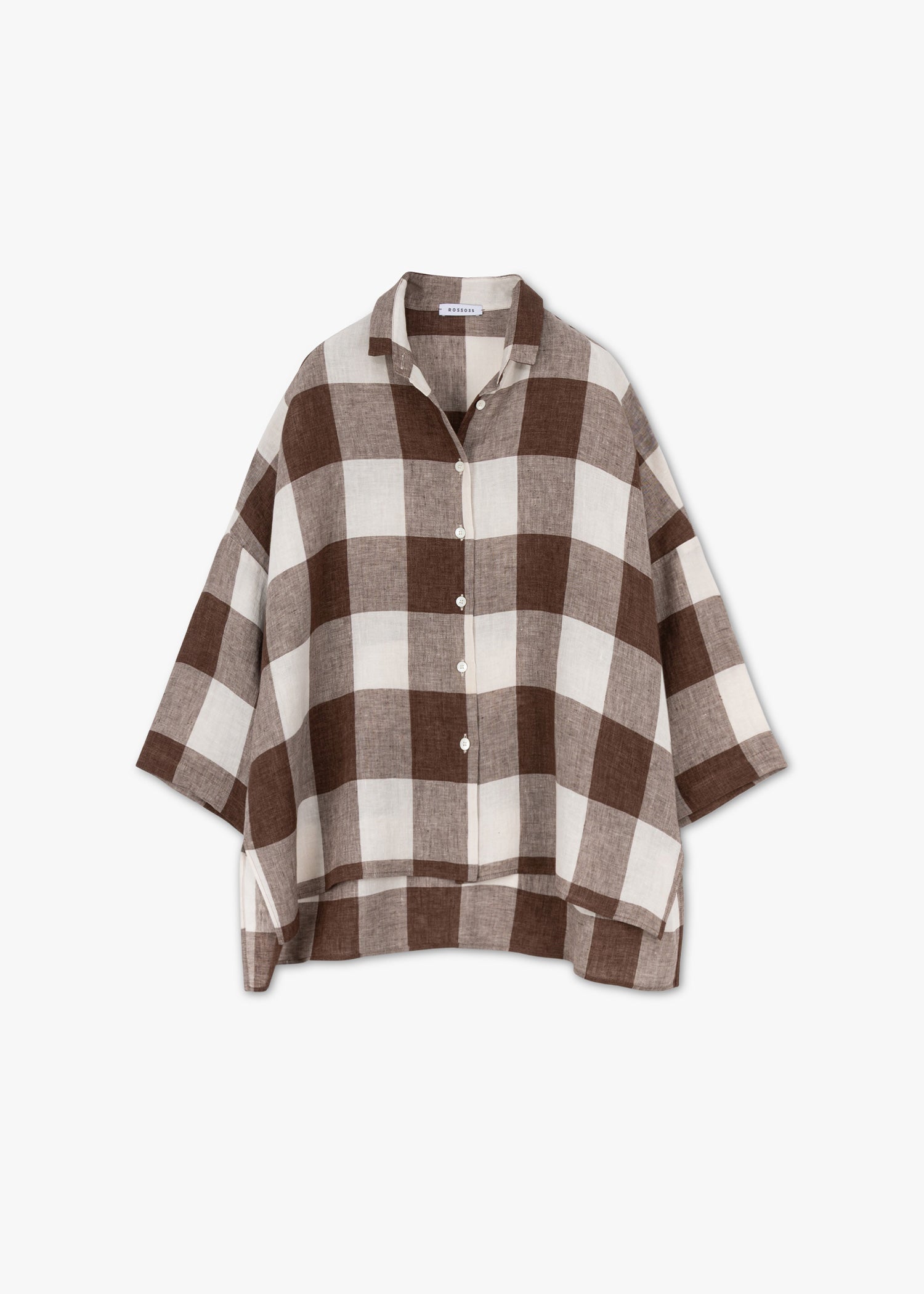 Loose-fitting linen blouse from Rosso35, classic collar, dropped shoulders, 3/4 sleeves, button placket, high-low hem.