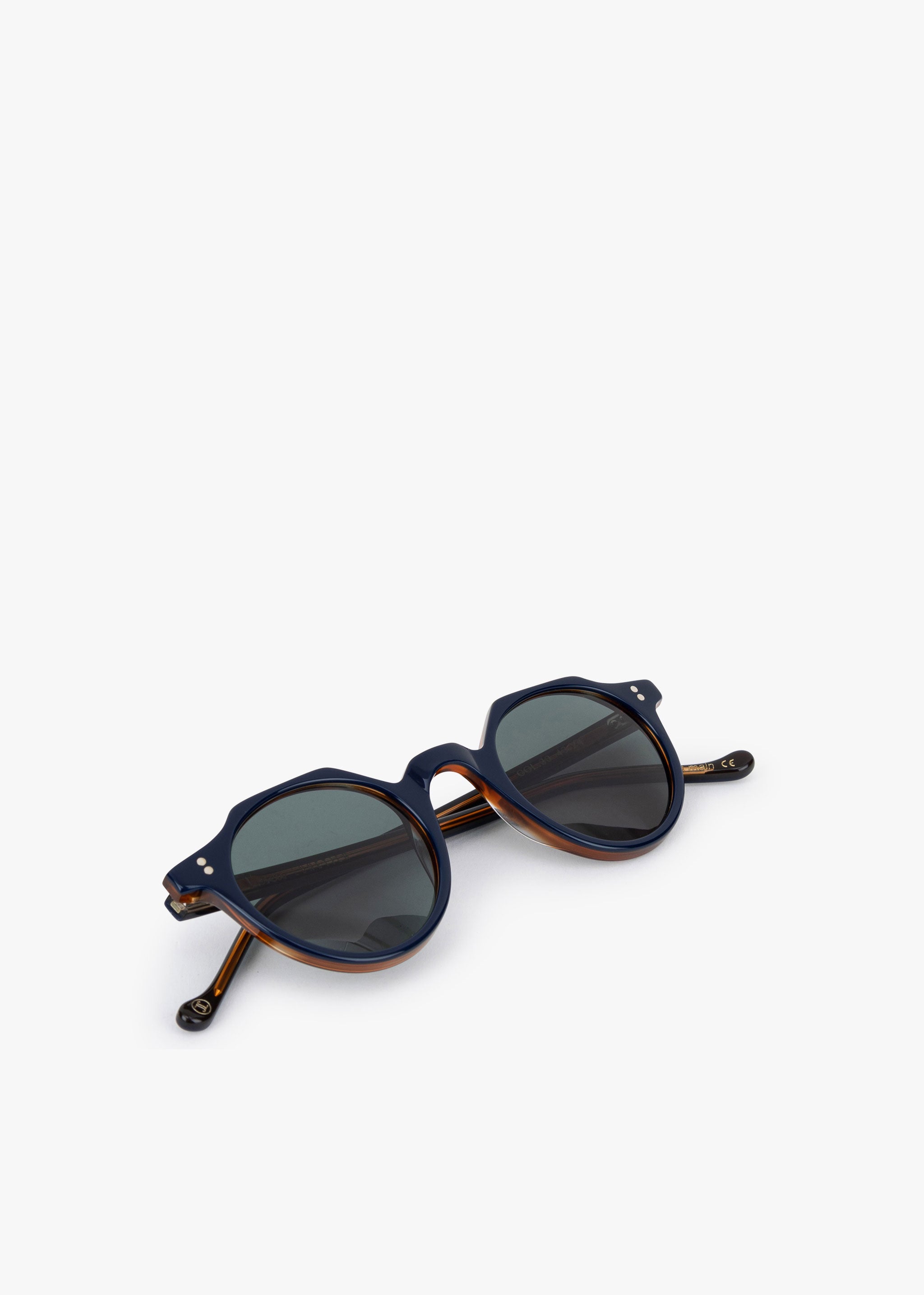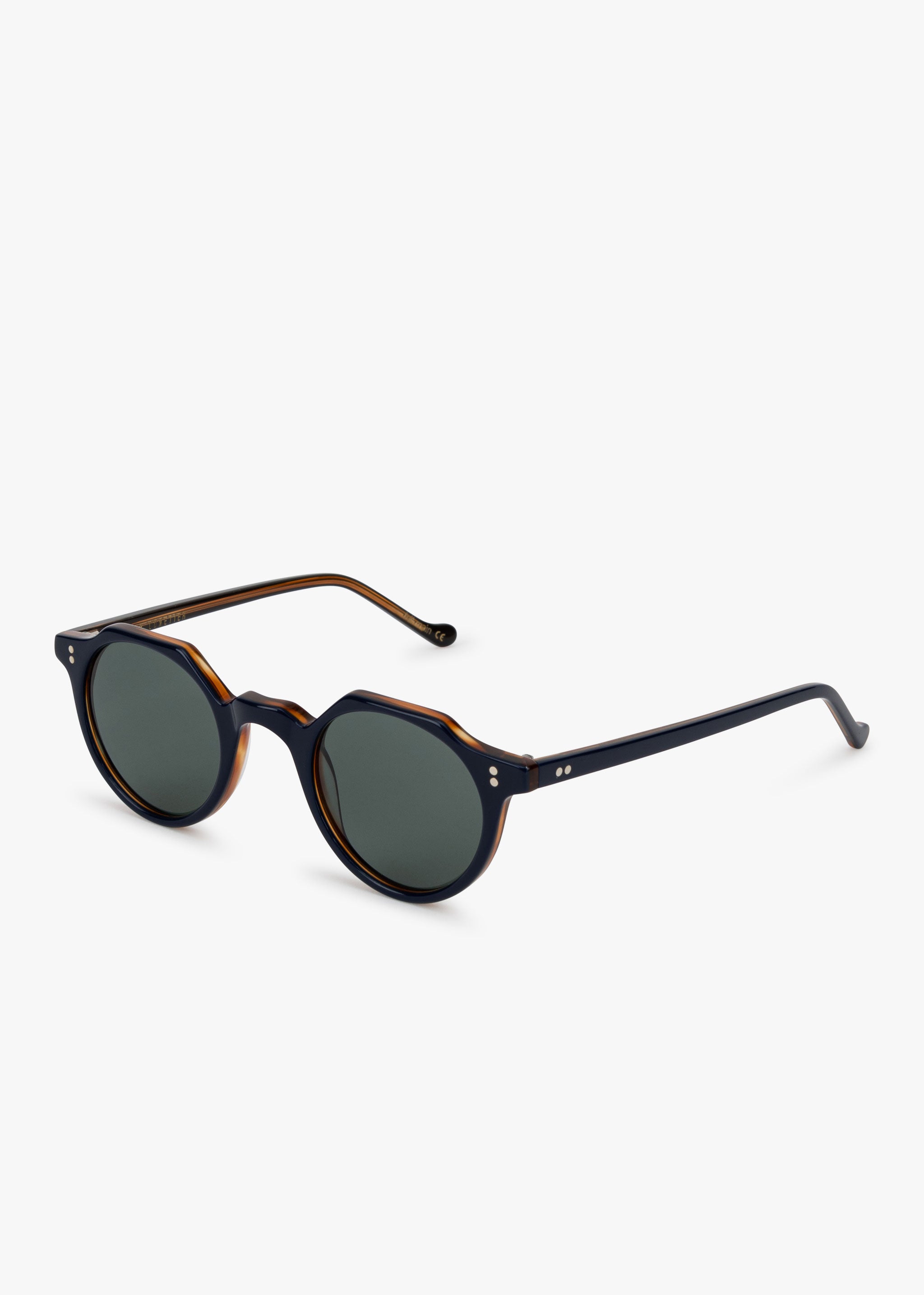'Heri' acetate sunglasses by Lesca with round lenses, straight temples, rounded tips and double rivets on the front and temples. 100% anti-UV / category 3 lenses, anti-glare with optimal protection.
