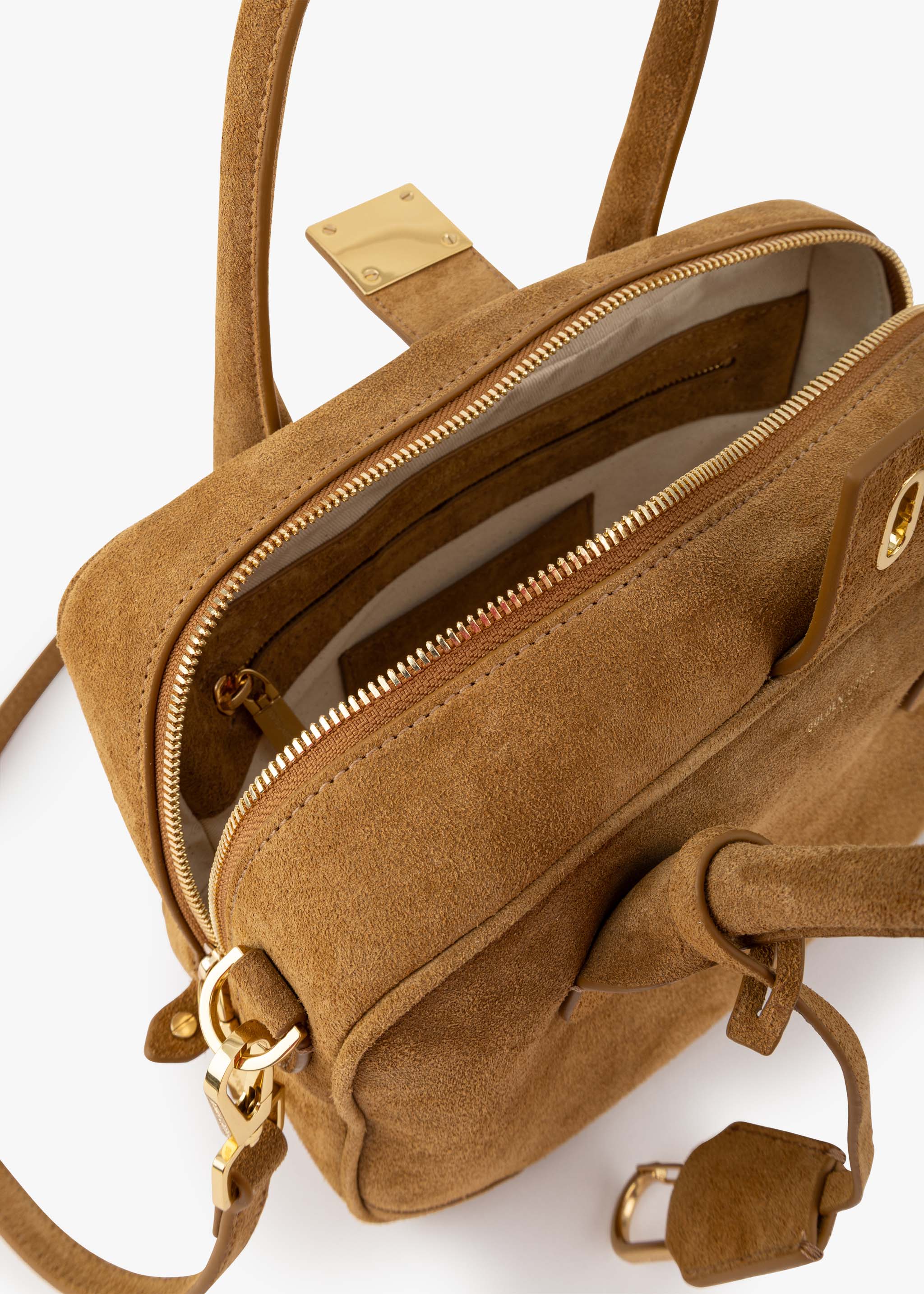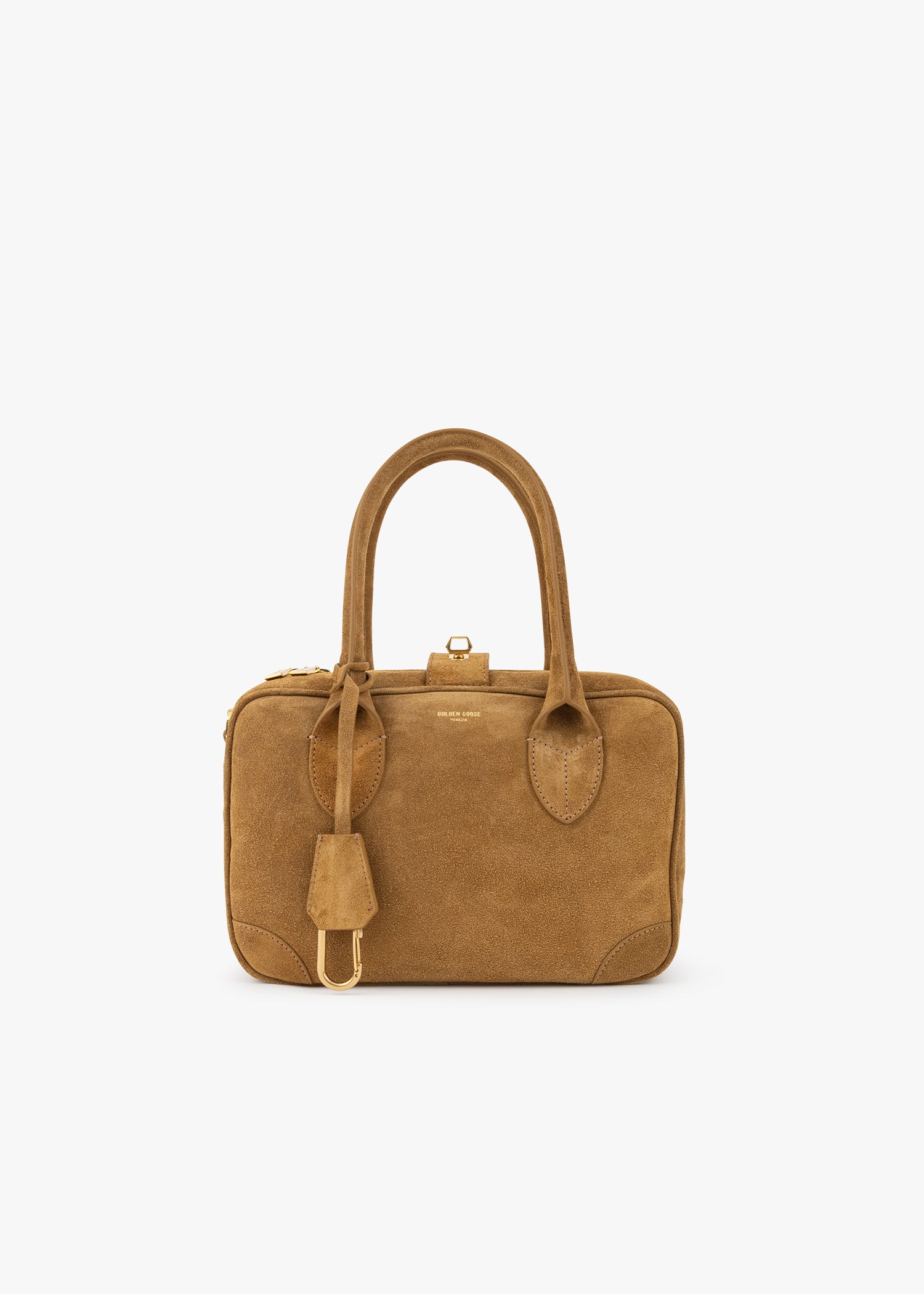 Golden Goose 'Vita' handbag made of suede, two-way zip closure, twist lock, inner zip pocket, card slot, two slip pockets, adjustable and detachable shoulder strap, key strap, bag feet, lined.