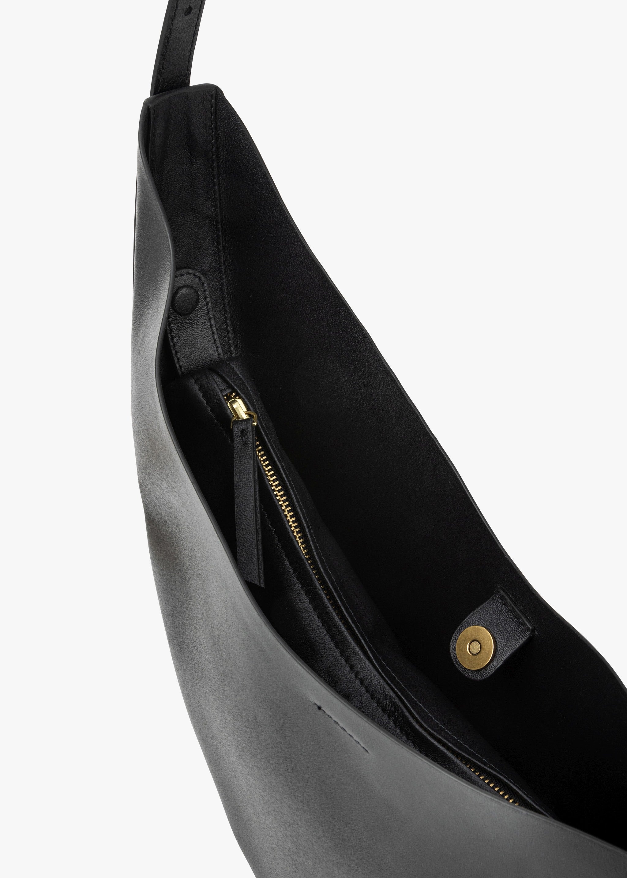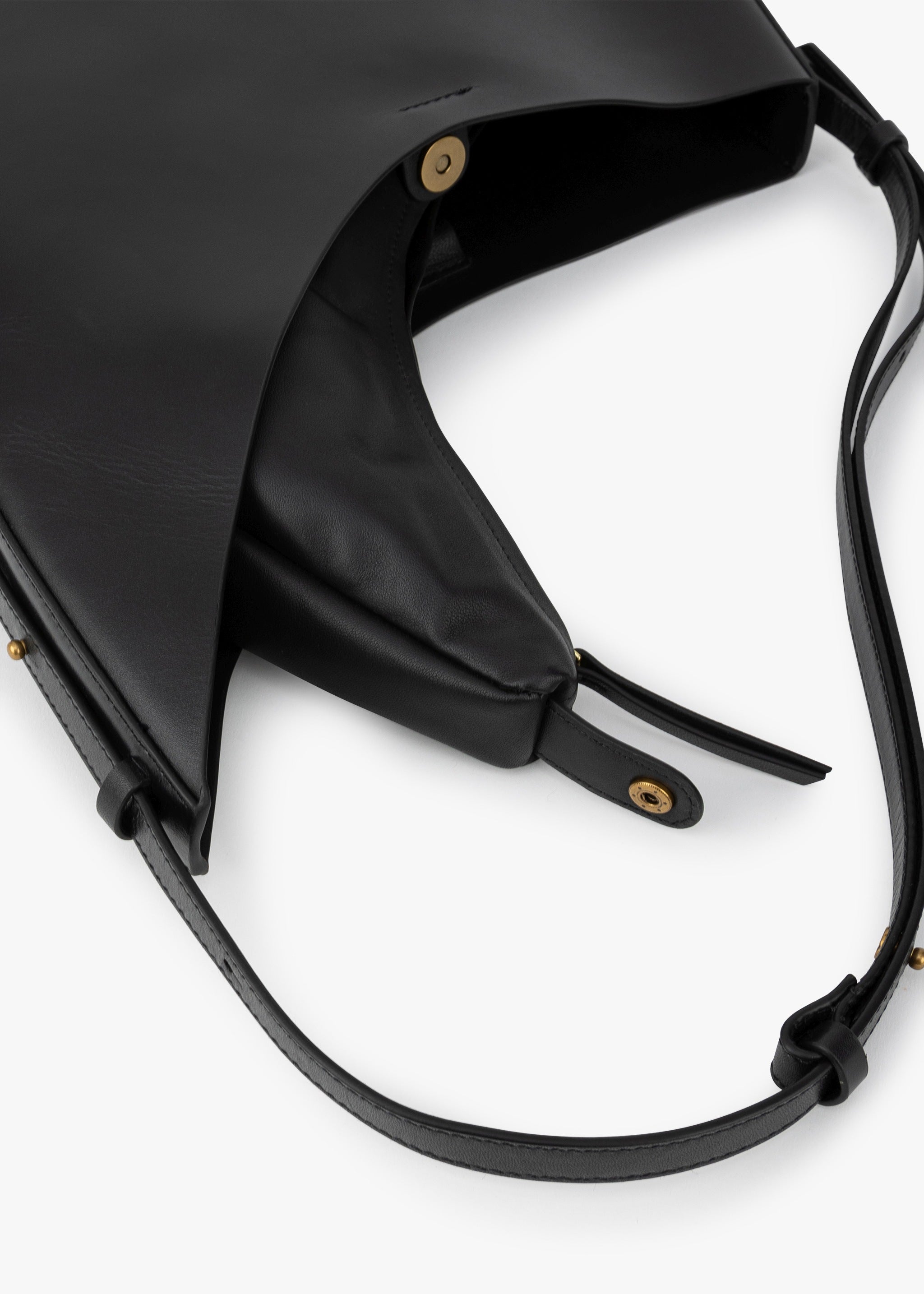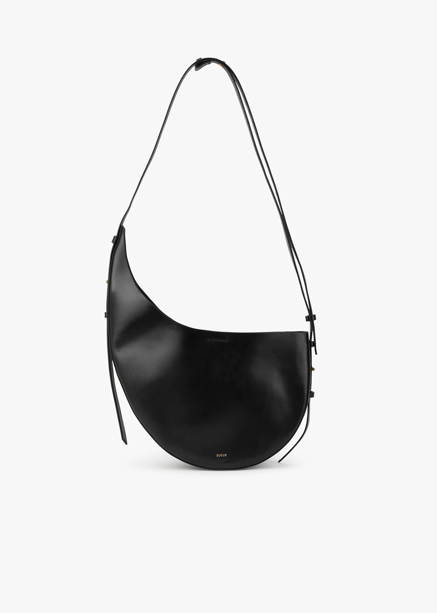 Leather handbag 'Winona' by Soeur, asymmetrical shape, adjustable shoulder strap with snap fasteners, removable inner bag made of lamb leather.