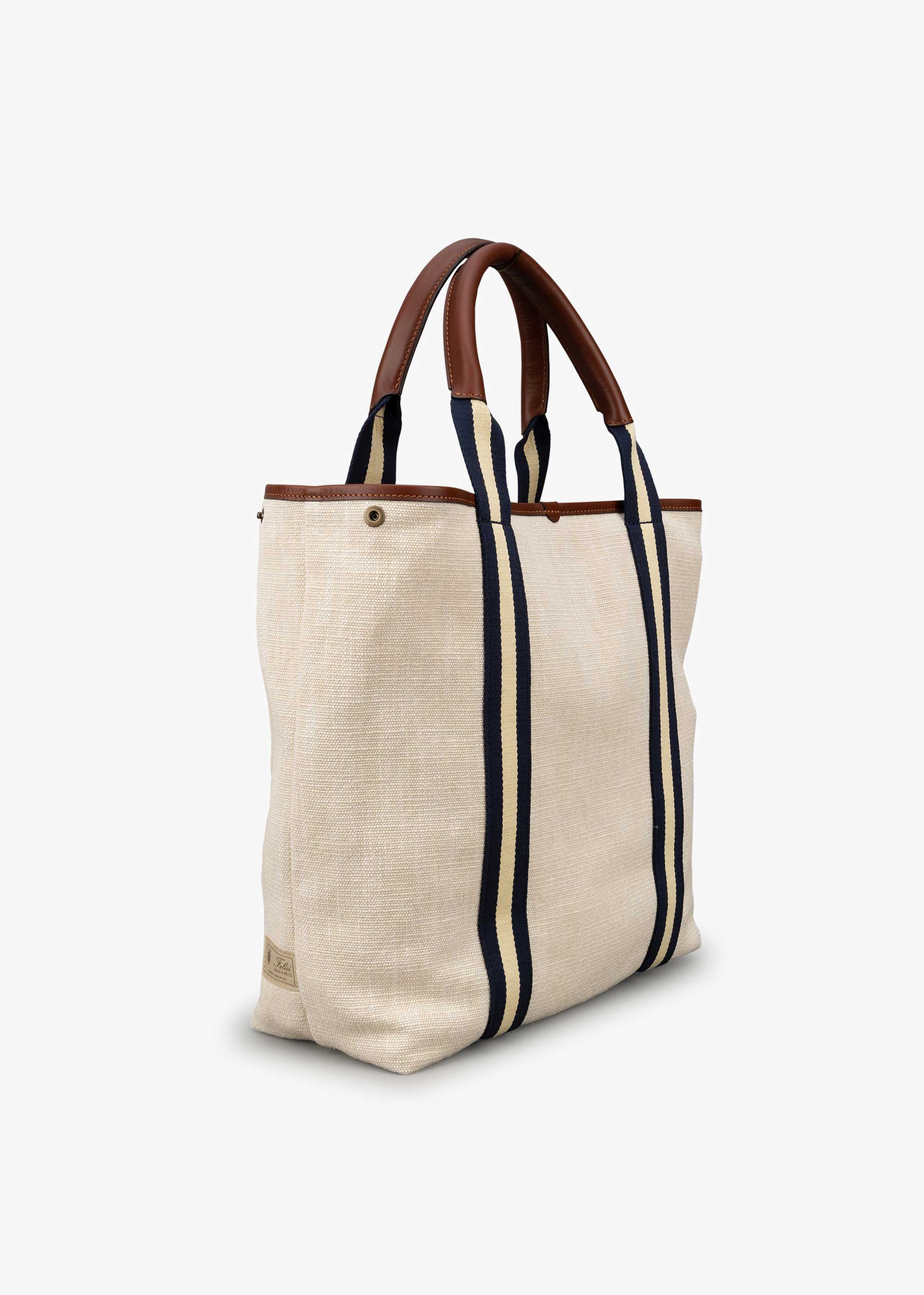 Tote bag by Felisi made of canvas, large inside compartment, a small compartment with snap fastener, leather handle.