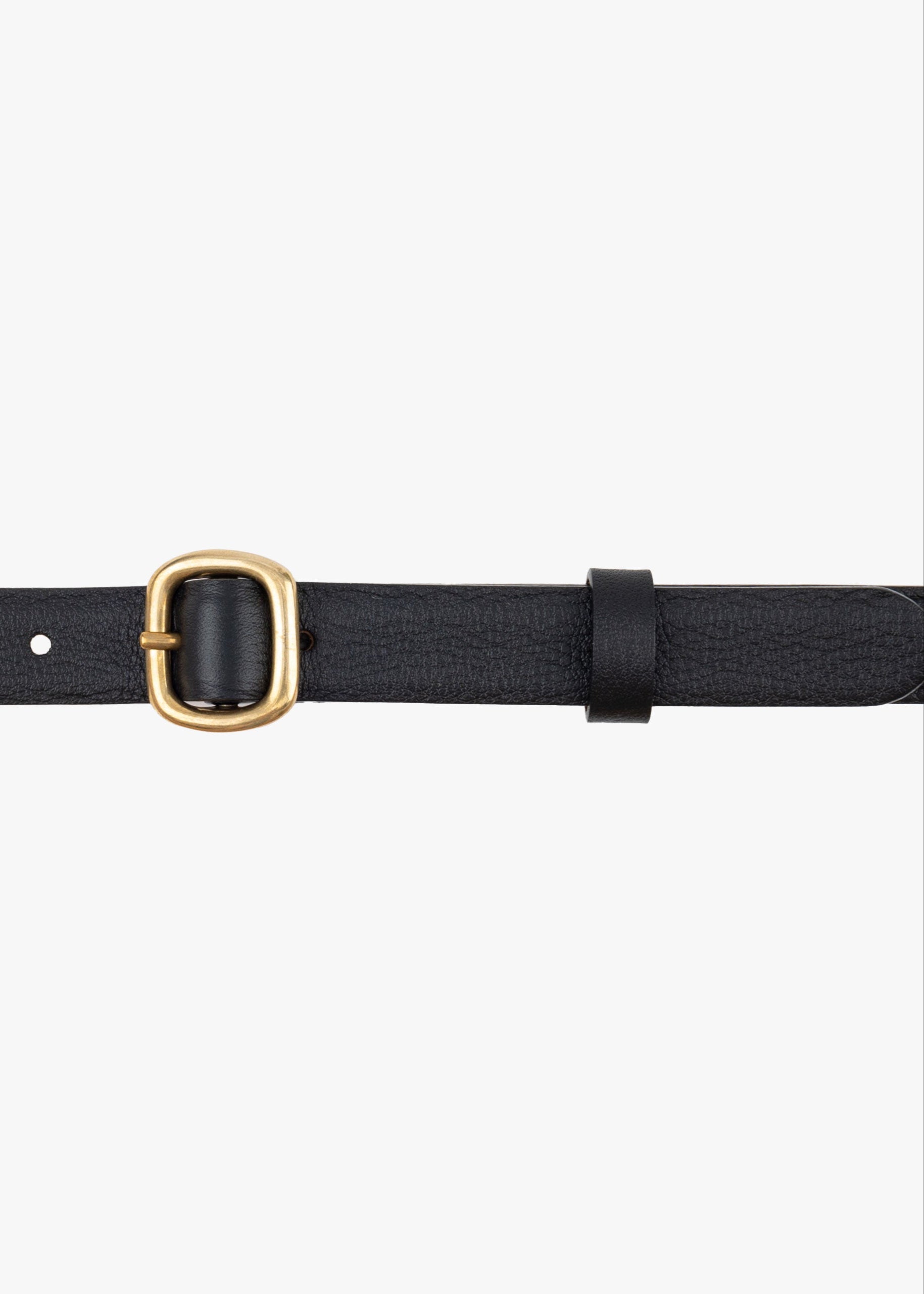 Black thin leather belt from the Italian brand Felisi with a gold buckle.