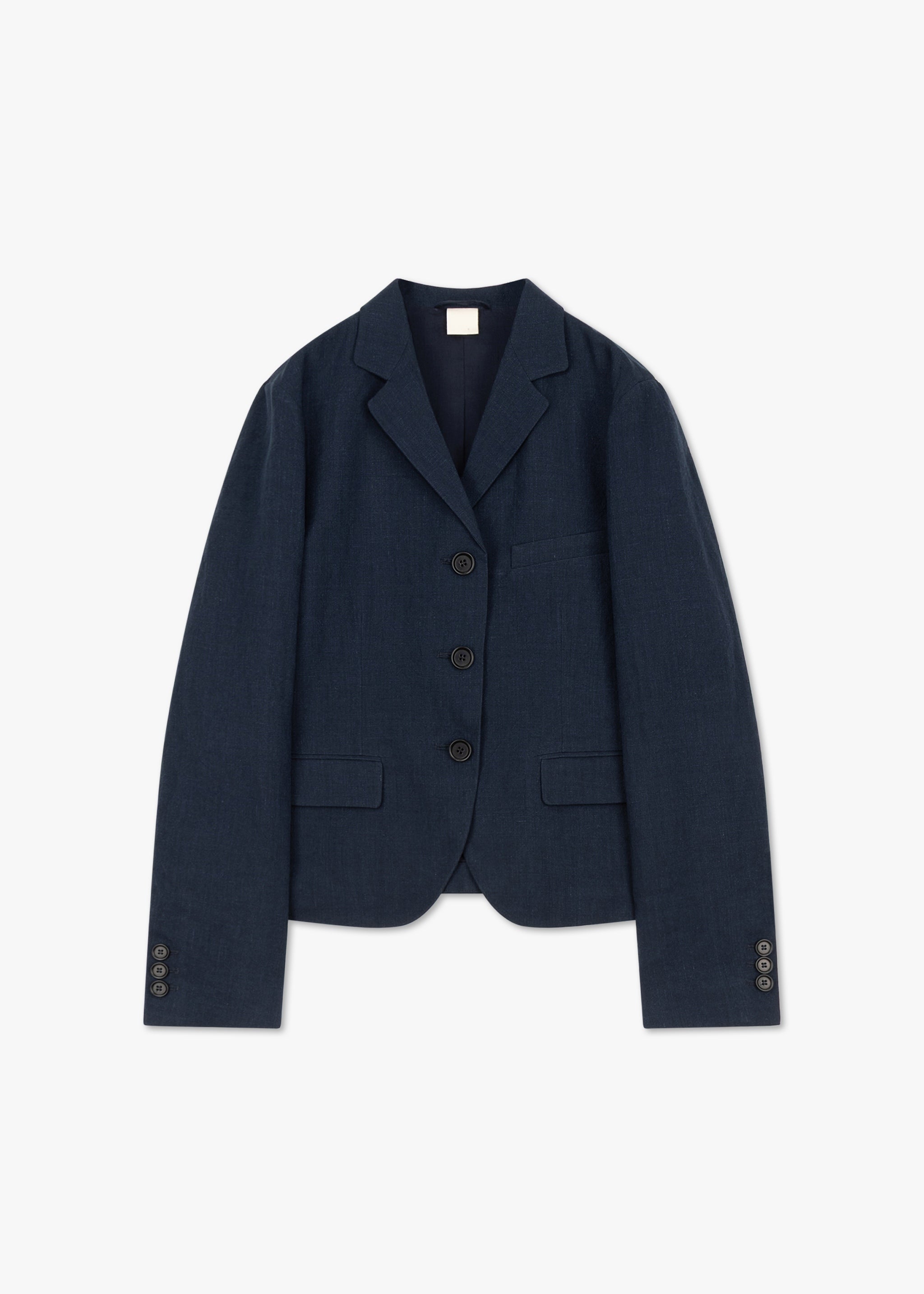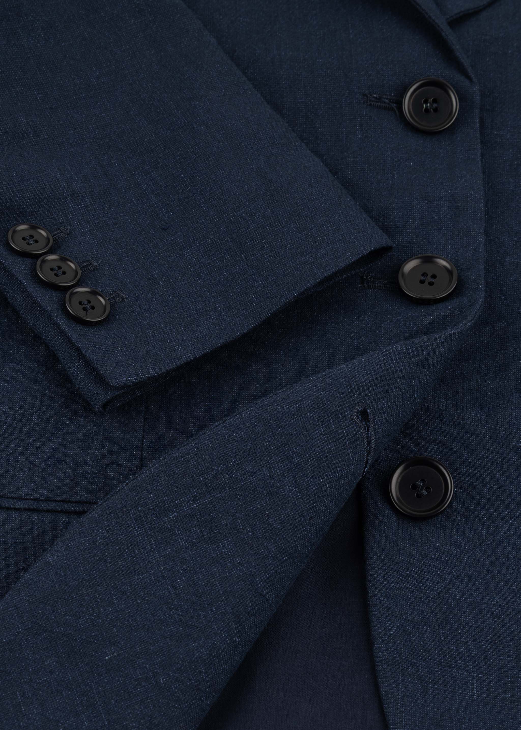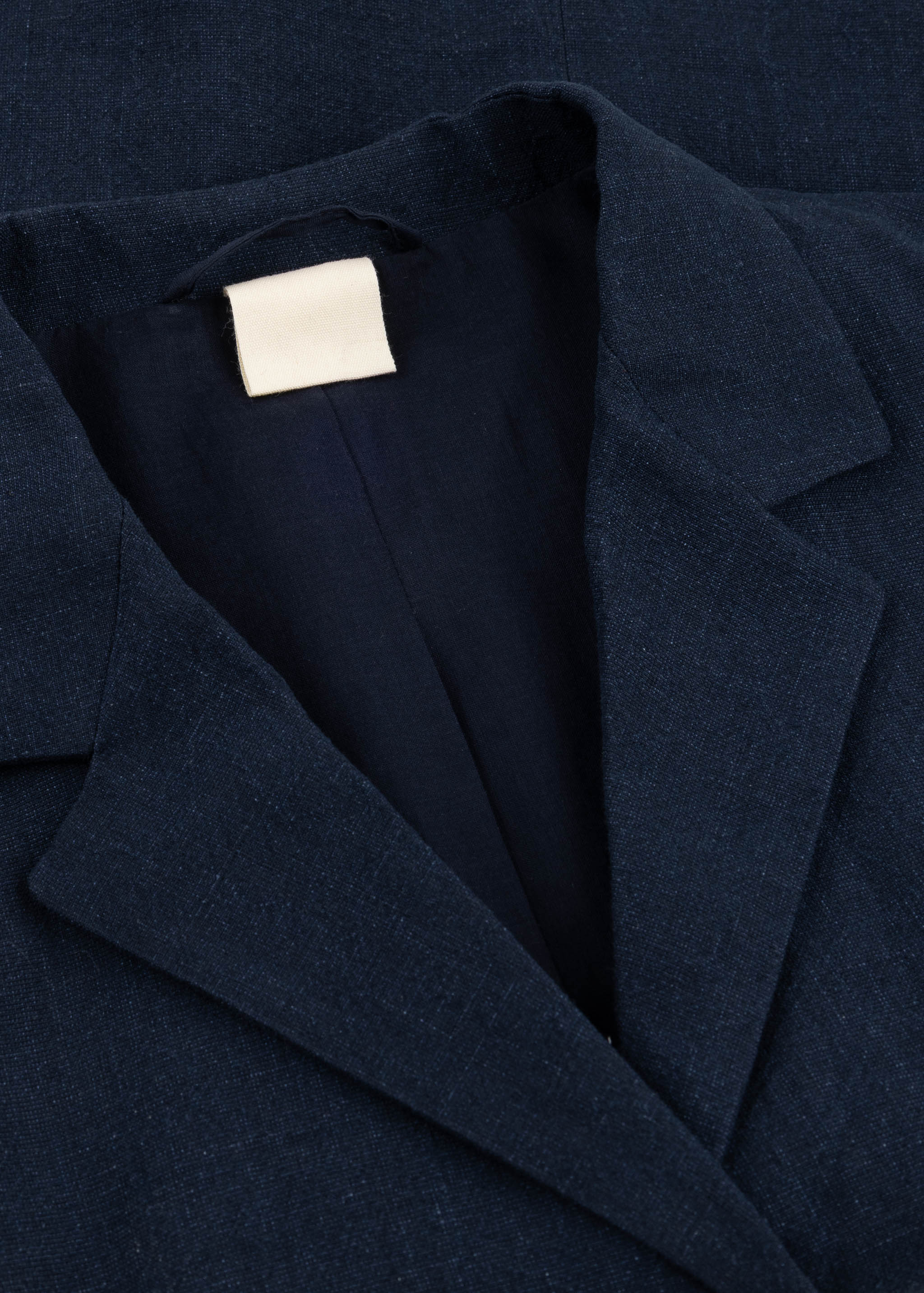 Single-breasted blazer by Aspesi in structured linen, notched lapel, fitted shoulder, long sleeves with buttoned cuffs, one chest pocket, two flap pockets, decorative seams, lined finish, straight hem, hip length.