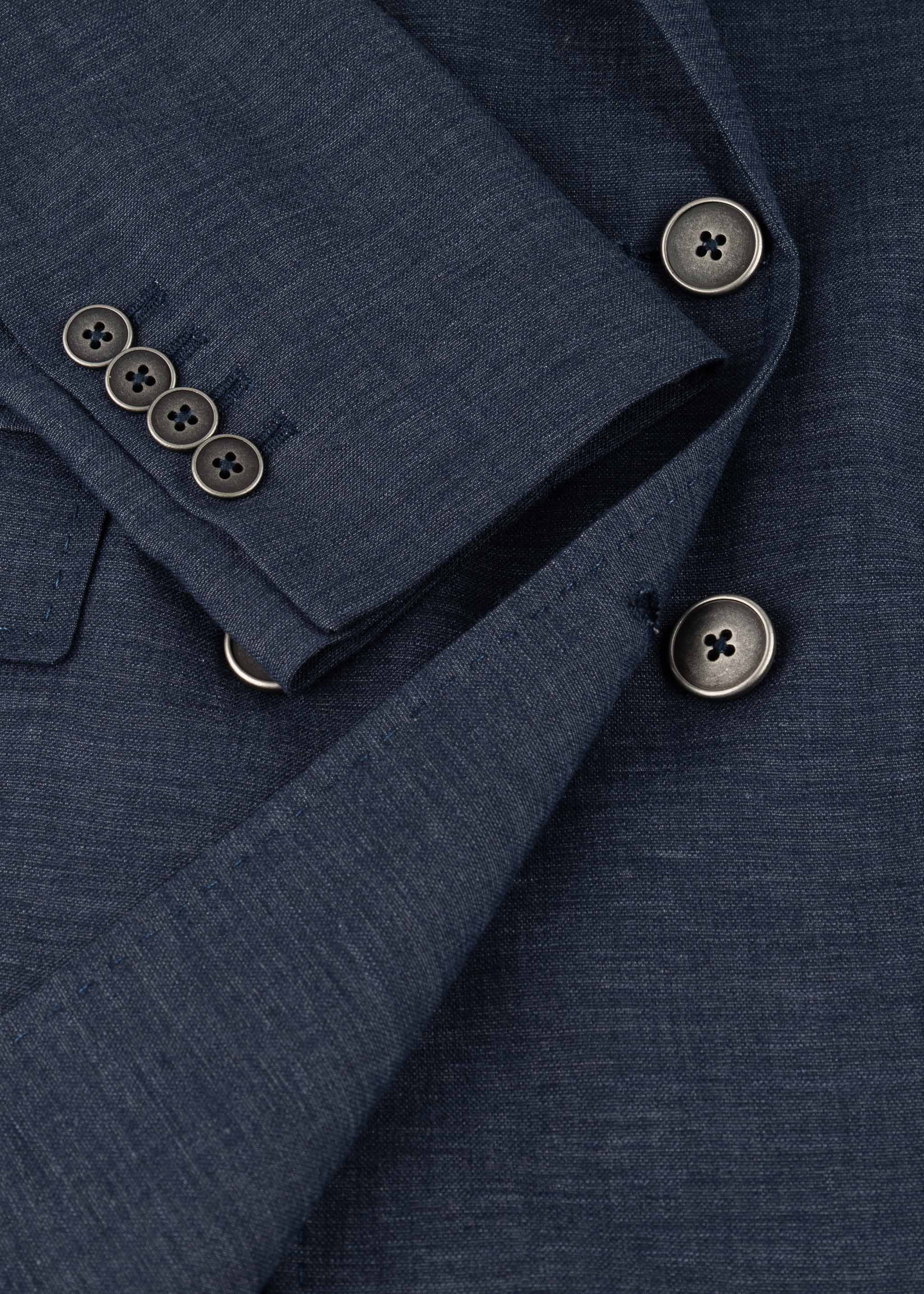 Masculine blazer by Circolo 1901 made from a cotton-linen blend, denim effect, peaked lapel, one breast pocket, two flap pockets, sleeves with buttoned cuffs, straight hem with walking vent, unlined finish.