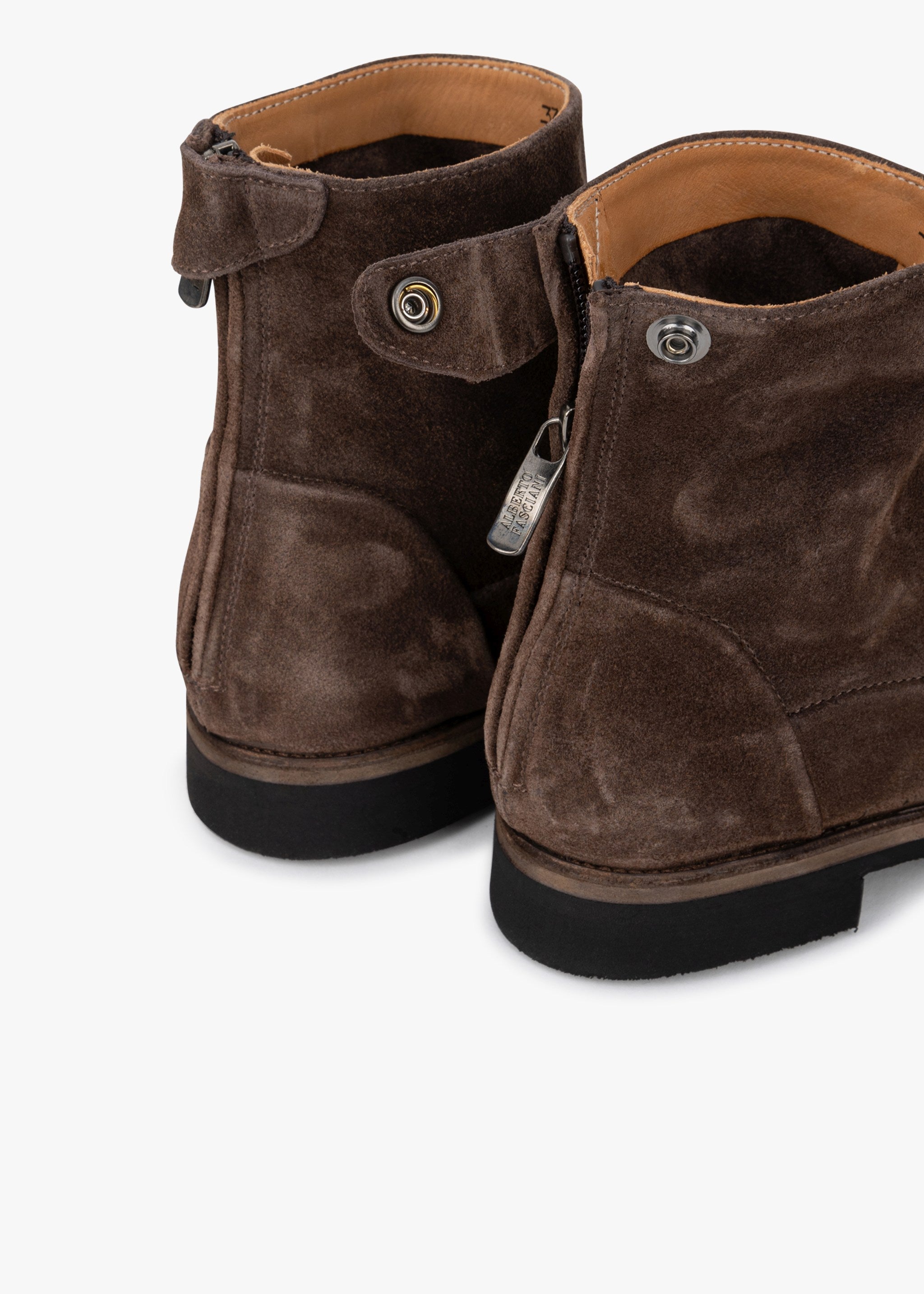 Handmade ankle boots 'Camil 70009' by Alberto Fasciani made of high-quality suede, close with a zipper at the heel and a snap fastener.