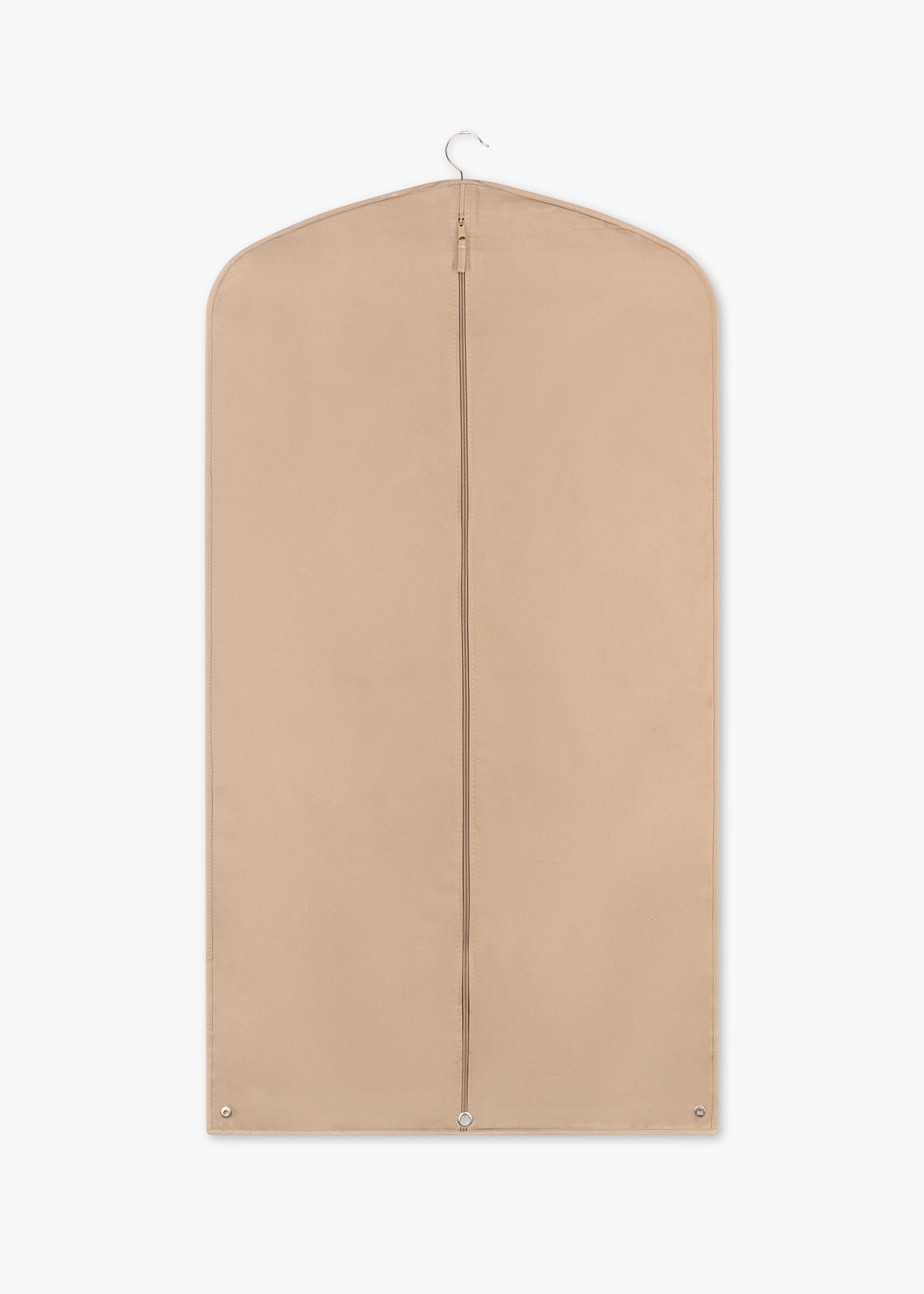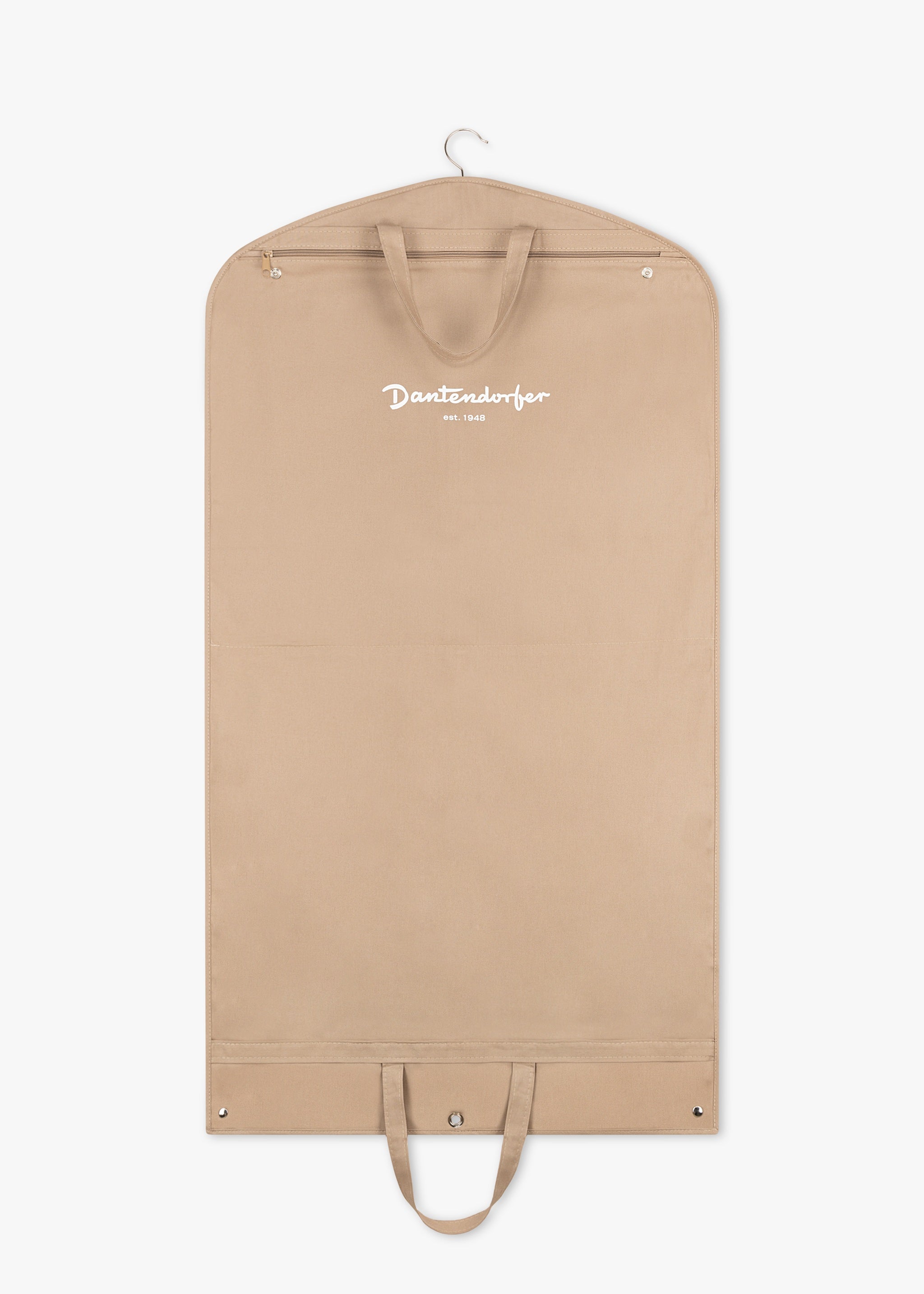 Beige garment bag from Dantendorfer, with handle and press studs, short vertical and long horizontal zipper