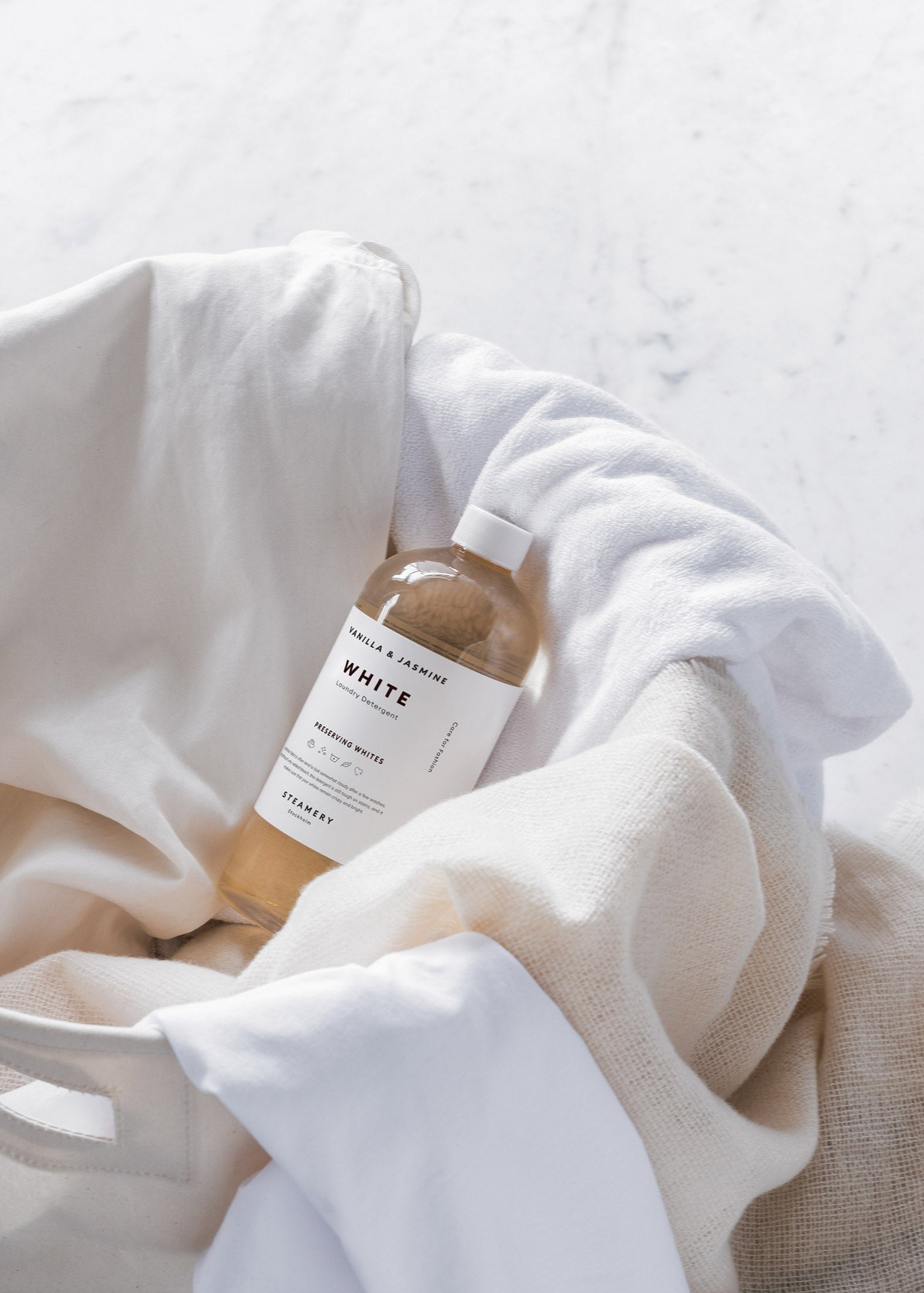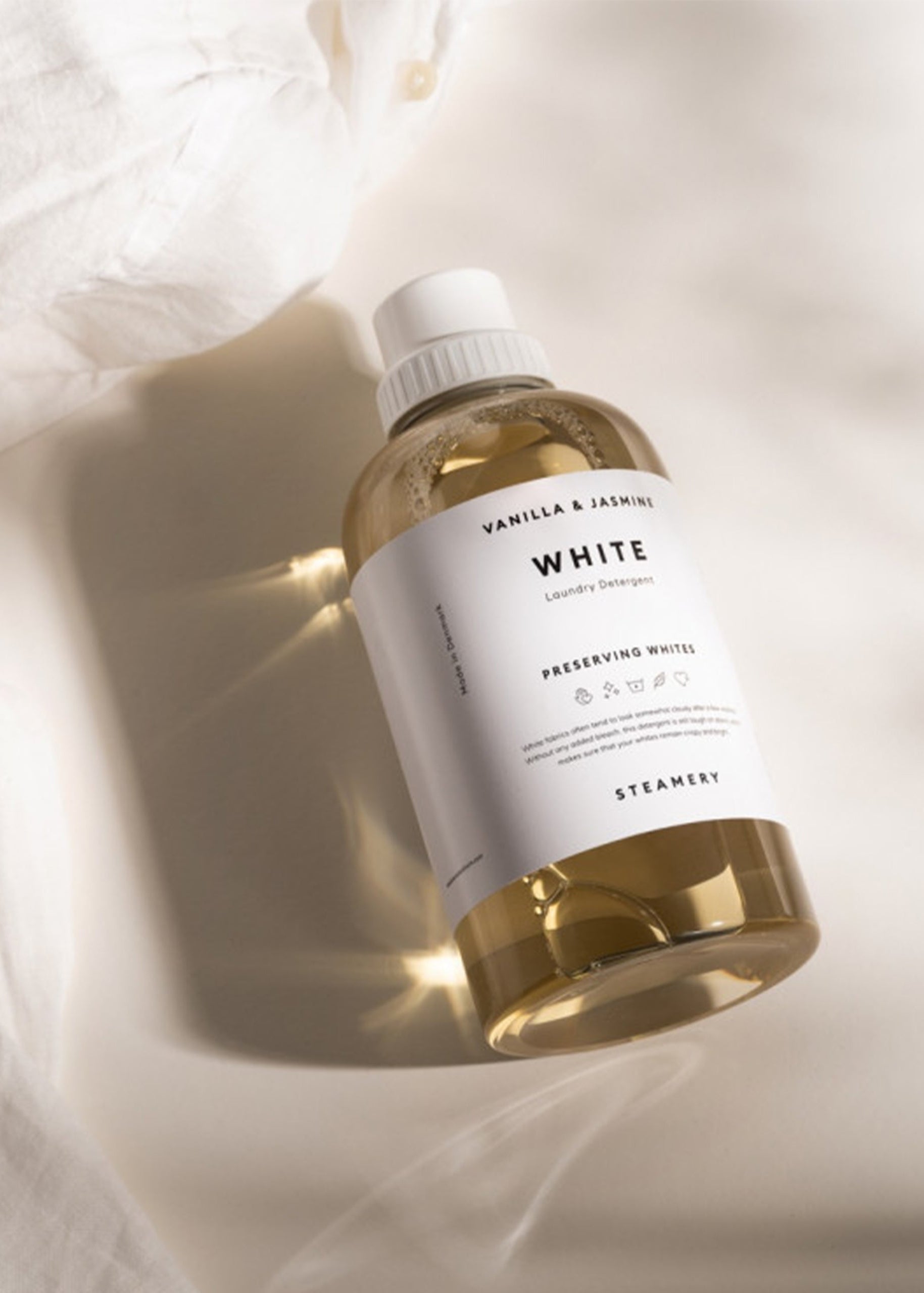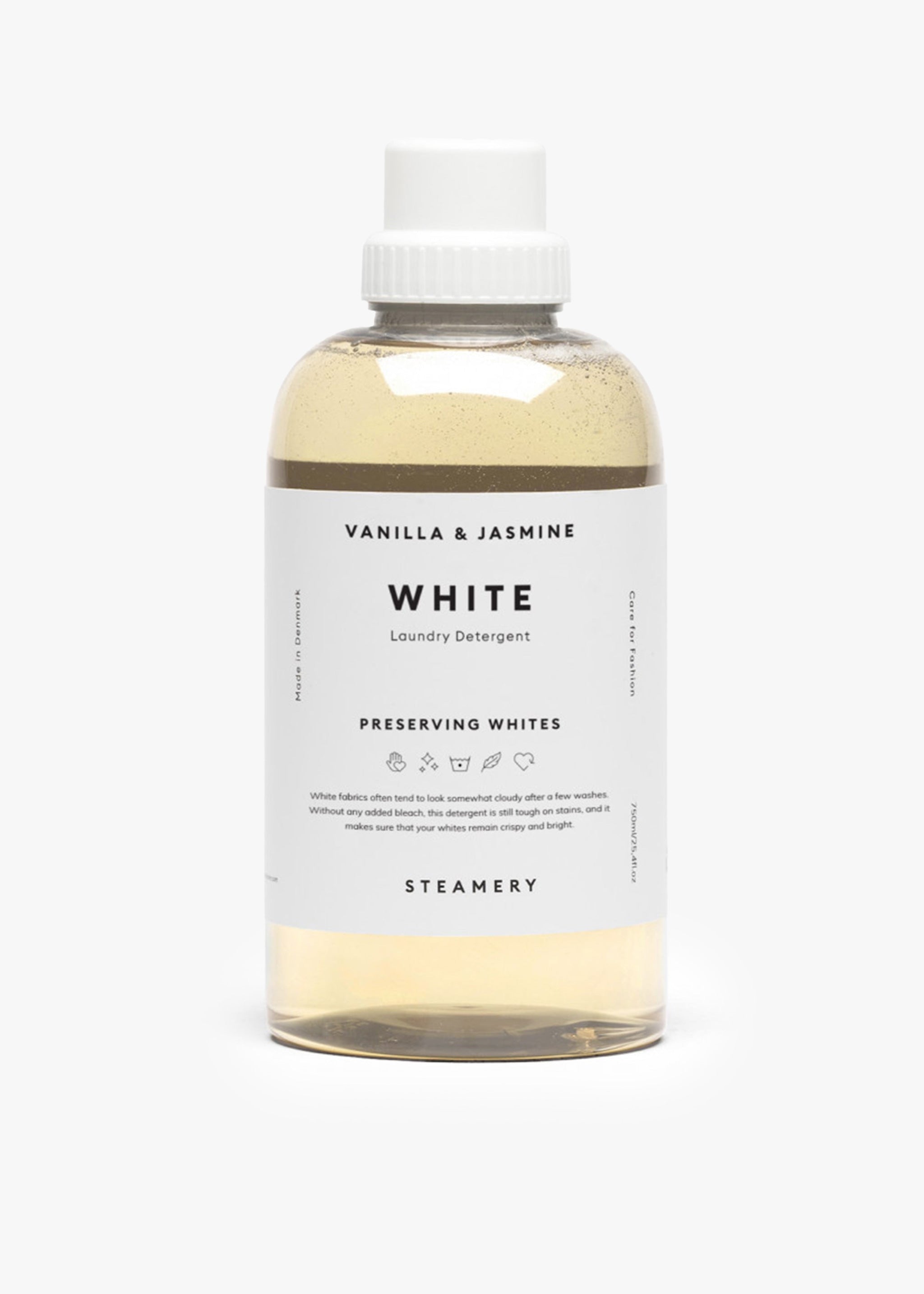 This high-efficiency White Laundry Detergent from the steamery has been specially developed to make your white clothes stay white – without using any bleach. It also specializes in removing all kinds of stains, and to create a coating around the fibers in order to even avoid future stains. The secret in achieving perfect results, without using bleach, is the combination of enzymes that specifically target stains and dirt. This laundry detergent's goal is to maintain the fabrics original nuance for as long as possible.