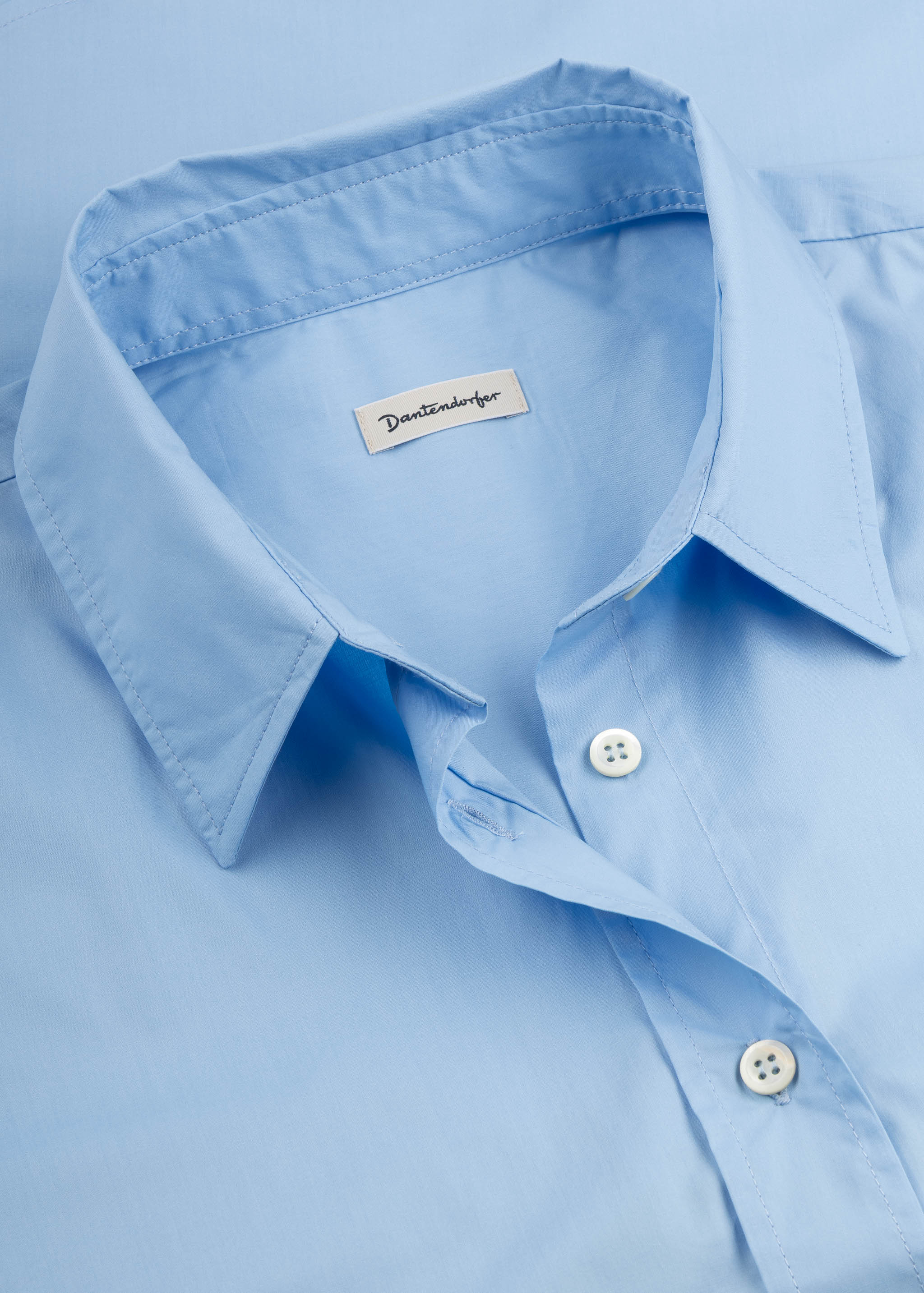 Very loose blouse from Dantendorfer made of fine cotton, classic collar, one breast pocket, full button placket, long sleeves with button cuffs, back yoke with box pleat, rounded hem.