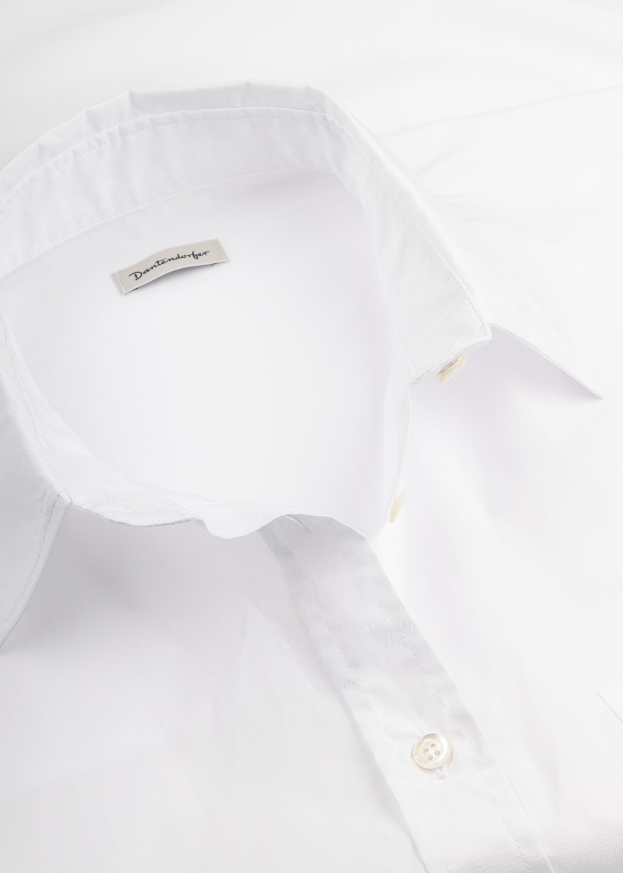 Very loose blouse from Dantendorfer made of fine cotton, classic collar, one breast pocket, full button placket, long sleeves with button cuffs, back yoke with box pleat, rounded hem.