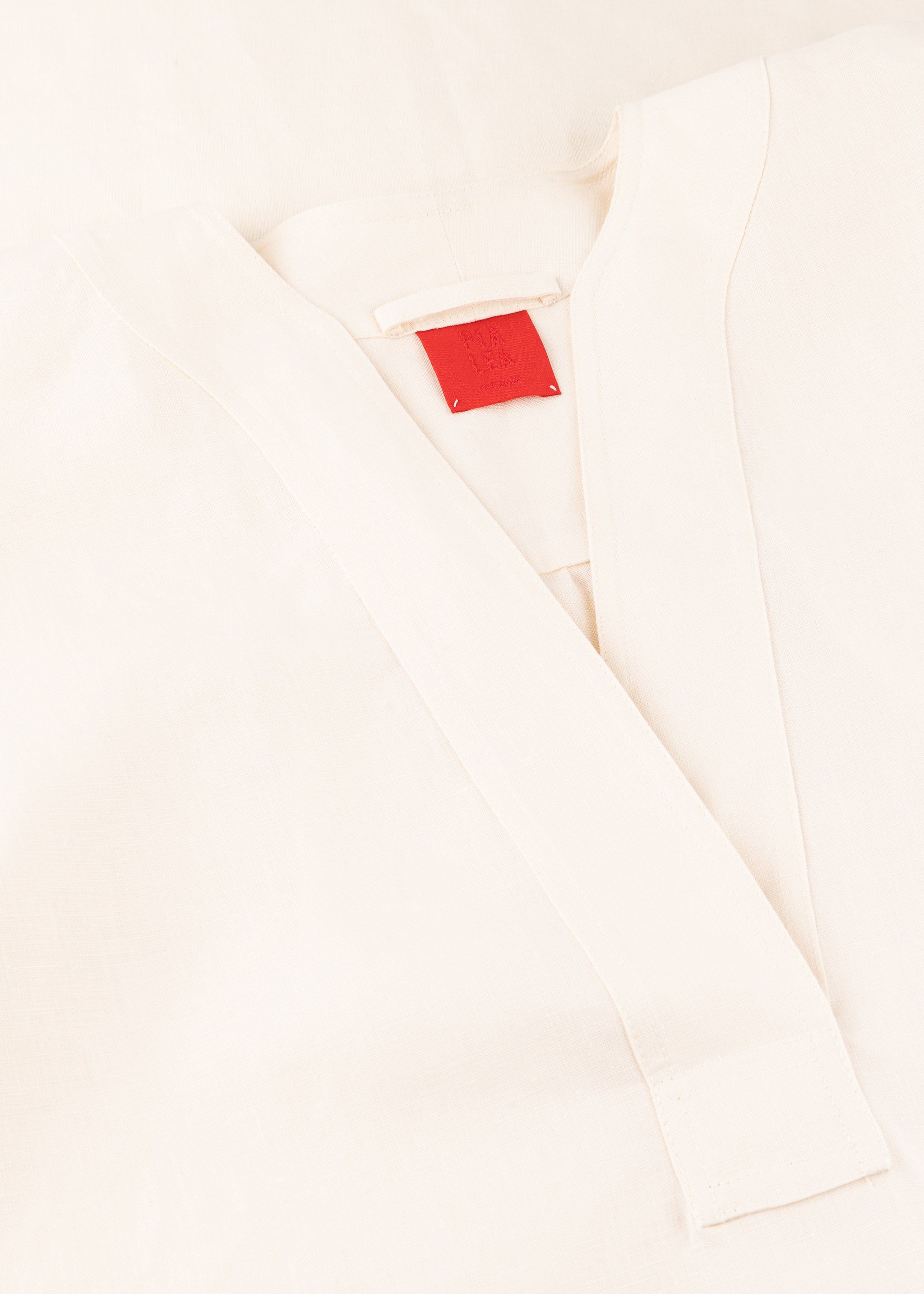 Checkered 'Princess' dress with hearts by PiaLea made of linen, V-neck, short puff sleeves with elastic, back yoke with pleats, side pockets, straight hem.