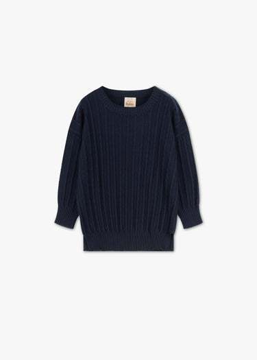 Body-hugging 'Andalusia' knit sweater by Rakki made of cotton, round neck, 3/4 sleeves, ribbed cuffs, straight hem.