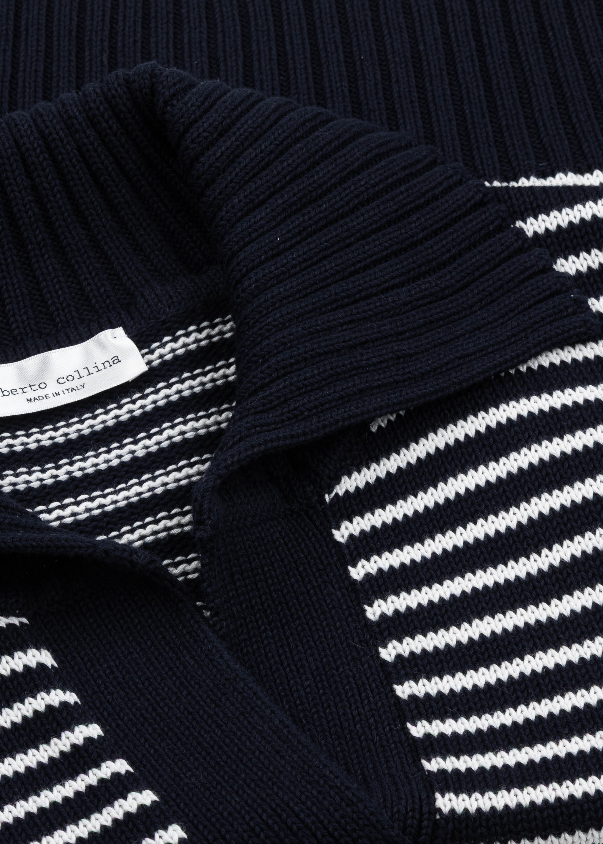 • Color: Navy and white striped