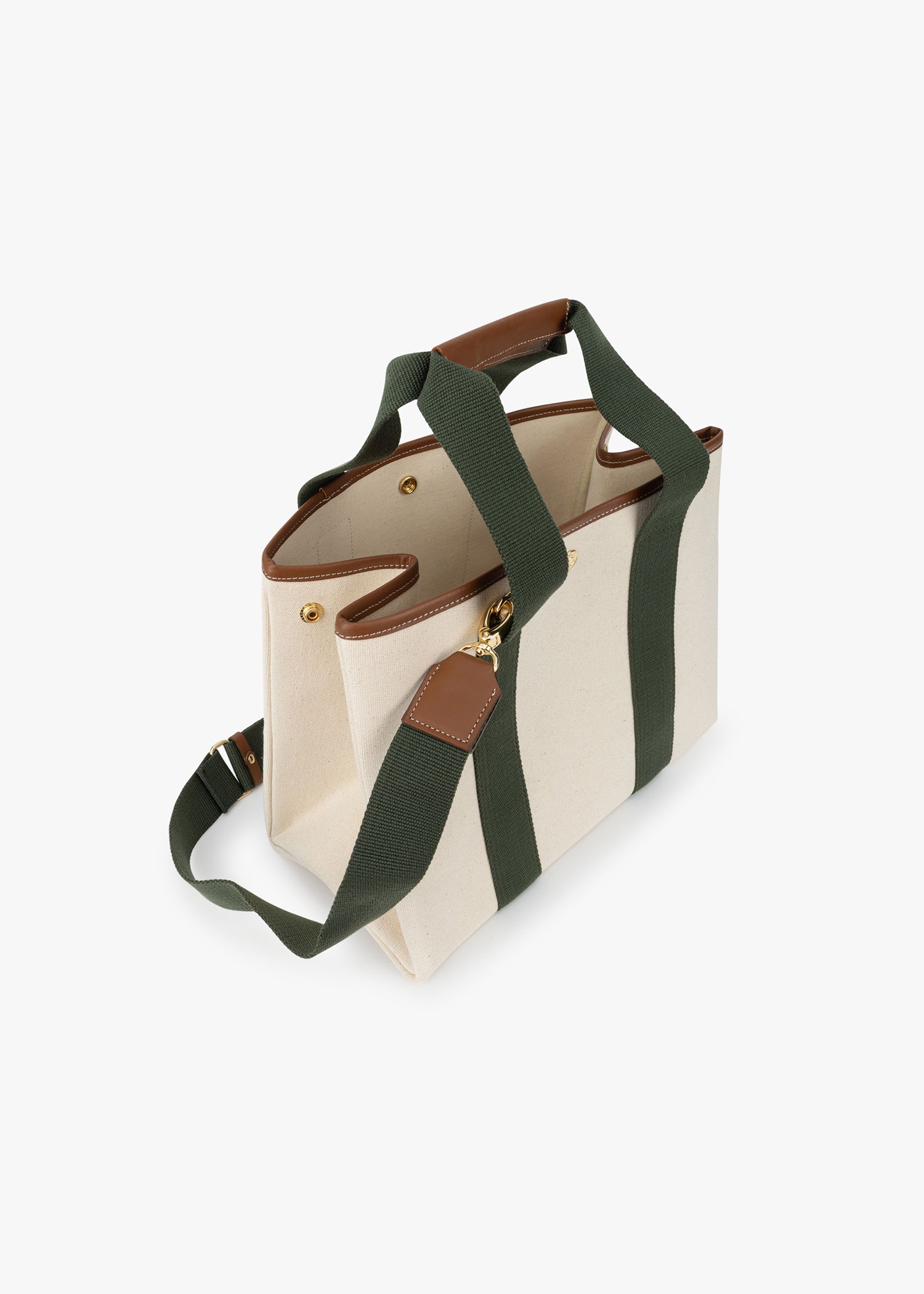 Tote Bag 'Traversée Medium' Rue de Verneuil, adjustable and detachable shoulder strap, handles with leather details, gold-colored fittings, two interior compartments.