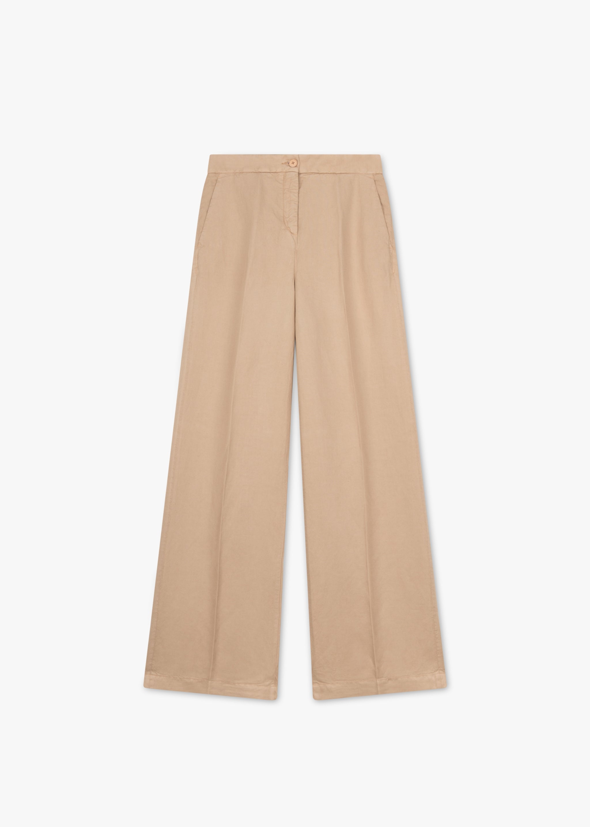 Long trousers 'Panama' by Via Masini 80, button and zipper fastening, pressed creases, darts at the back waistband, side pockets, wide leg, soft feel.